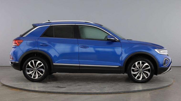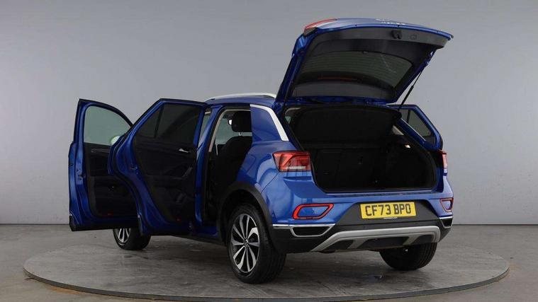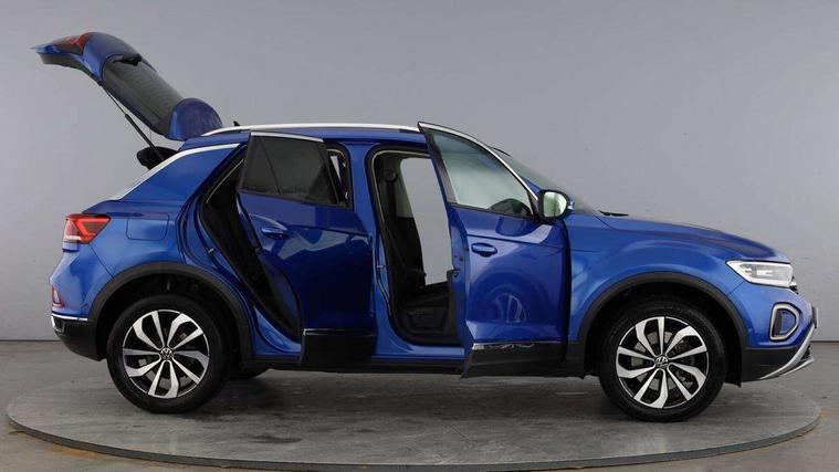 Driver assistance pack without proactive passenger protection - T-Roc, Trims for alloy wheels, Anti-theft alarm system with interior monitoring, backup horn, and towing protection, Remote central locking with SAFELOCK, radio remote control with 2 remote control folding keys, Diversity antenna for FM reception, Music playback - MP3, WMA and AAC files, Premium USB cable in choice of either Apple or Android smartphone compatibility, SD card slot, Simultaneous pairing of 2 compatible mobile devices, Title and cover art display, We Connect and We Connect Plus functionality, 3 point height adj front seatbelts + pretensioners, 3 point seatbelts in outer rear with ECE label, ABS, Child locks on rear doors, Driver and front passenger airbag with front passenger airbag deactivation, Driver and front passenger safety-optimised head restraints, Drivers seatbelt reminder, Electronic parking brake, Electronic Stability Control (ESC) inc EDL (Electronic Differential Lock) and ASR (Traction Control), Front and rear passengers curtain airbag system including front side airbags, Front assist with city emergency braking and pedestrian monitoring, Front seat side impact airbags, Predictive pedestrian protection, Rear disc brakes, Single tone horn, Tyre pressure loss indicator, Volkswagen roadside assistance, 3rd brake light, Auto dimming interior rear view mirror, Automatic hazard lights activation under emergency braking, Automatic headlight control with LED separate daytime running lights with coming/leaving home function, Body colour sports bumpers with silver metallic underbody fascia, Dynamic headlight range control with self adjusting whilst driving, Extended roof spoiler, Exterior mirrors aspherical on driver side, convex on front passenger side, External USB type C socket and charging sockets, Front windscreen wiper with intermittent wipe and 4 position delay, Heated rear window, LED rear combination lamps, LED rear number plate lights, LED tail lamp rear comination lamps, Light mode for poor weather, rain, fog or snow, Power windows with comfort operation and circuit breaker, Rain sensor, Rear exhaust tailpipe, Rear fog light on one side and reversing lights on both sides, Rear side wing doors, Rear wash/wipe with intermittent wipe setting, Remote electrically foldable door mirrors, puddle lights and reverse activated passenger's door mirror, 12V power socket in centre console, 3 rear head restraints, 3 seat bench in 2nd row, 4 load lashing points in luggage compartment, Air care climatronic air conditoning system with active combination filter and 2-zone temperature control, Chrome plated radiator grille inserts, air vent surrounds and light switch surrounds, Door and side trim panel with leatherette insert, Drawer under drivers seat, Front + rear carpet mats, Front centre armrest, Front comfort sports seats, Front cupholders x 2, Front footwell illumination, Instrument lighting, white adjustable panel illumination, Interior ambient lighting and surround lighting, Interior light delay, Isofix child seat preparation, Leather gearshift handle, LED interior light with switch off delay/dimmer and 2 front/rear LED reading lights, Load-through provision with cup holder when folded down ('Unsplit rear seat bench, split folding backrest, with centre armrest), Luggage compartment lighting, Non-folding front passenger seat backrest, Single front passenger seat, Storage compartment in left and right luggage area, Storage compartment in rear doors, Storage compartments in driver and front passenger doors, Sunvisors with illuminated vanity mirrors, Variable boot floor, height adjustable and removable, 10.25" Digital cockpit pro, Bluetooth mobile phone interface, Driver alert system with fatigue detection, Driver tips and journey analysis, Emergency call service, Lane keeping system Lane Assist, Modified key software - reduce switch off time for key status change to Long no motion, Online services, Park assist including front and rear parking sensors, Service interval indicator, Tailgate/trunk lid release from outside, Think blue trainer driver tips and journey analysis, Warning sound and light for front seatbelts unfastened, Wireless app connect, Battery regeneration during braking, Start/stop function with battery regeneration,