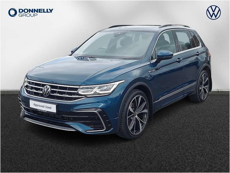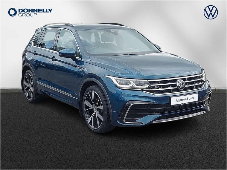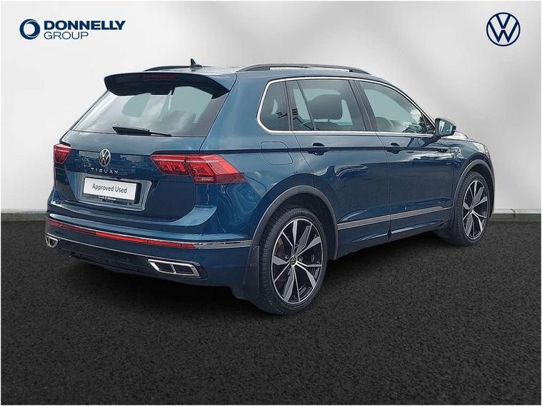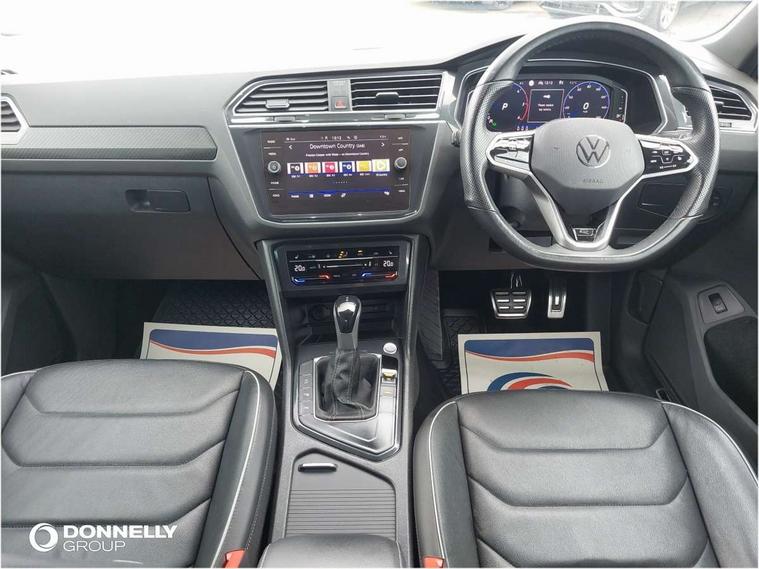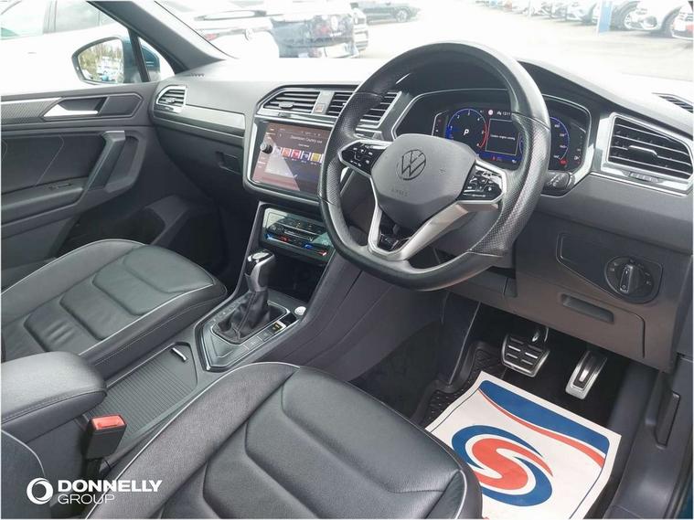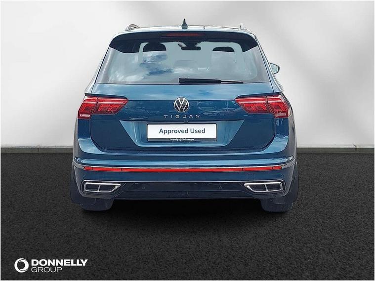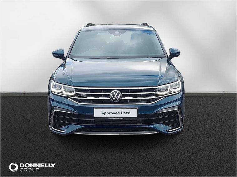 Driver assistance pack plus - Tiguan DSG, Anti theft alarm system with interior monitoring, backup horn and towing protection, Anti theft wheel bolts, Electronic engine immobiliser, 4 X 20 watt output, 8 speakers, Diversity antenna for FM reception, SD card slot, Simultaneous pairing of 2 compatible mobile devices, SMS functionality - read, compose and send SMS messages using touch-screen display, Title and cover art display, USB C ports, 3 point seat belt for centre rear seats, 3 point seat belts with seat belt pretensioners for the outer rear seats, Active bonnet, Curtain airbags for front and rear passengers, Driver/Front Passenger airbags, Drivers knee airbag, Electronic parking brake with auto hold, Electronic Stability Control with driver steering recommendation, ABS, ASR, EDL, EDTC and trailer stabilization, Front assist with autonomous emergency braking (for Adaptive Cruise Control ACC up to 130 mph), Front disc brakes, Front passenger airbag deactivation, Front side airbags, Height adjustable front 3 point seatbelts + pretensioners, Hill hold control, Manual child proof rear door locks, Pedestrian monitoring system, Power assisted brakes, Proactive passenger protection system in combination with front assist, Rear disc brakes, Rigid safety cell with front and rear crumple zones, Two tone horn, Warning sound and light for front seat belts if unfastened, Auto dimming interior rear view mirror, Automatic headlight control system, Body colour door handles, Chrome moldings on the side windows, Coming/leaving home lighting function, Dynamic headlight range control, Front and rear electric windows, Heated rear window, High level 3rd brake light, Laminated safety glass windshield, heat and sound insulating, LED headlamps with LED separate daytime running light and dynamic cornering light, LED rear combination lamps, LED rear number plate lights, License plate carrier in front and rear, Poor weather light and cornering light, R Line body kit, R Line side sills, Rain sensor windscreen wipers, Rear exhaust tailpipe, Rear fog lamp, Rear side wing doors, Rear spoiler in R style, Rear windscreen washer and wiper with interval delay, Side and rear windows in heat insulating glass, Trailer Stability Programme, Unique R Line badging, Windscreen wipers/ intermittent wipe + 4 position delay, 12V outlet in center console rear and in luggage compartment, 12V outlet in front and tray, 2 cup holders in front, 2 LED front reading lights, 2 LED rear reading lights, 3 bench rear seats in 2nd row, 3 rear headrests, 4 load lashing points, 40:20:40 split folding rear seats, Air Care Climatronic 3 zone automatic climate control with enhanced air filter and controls in the rear, Backrest release for left front seat, Black headlining, Brushed stainless steel pedals and footrest, Carpet mats in front and rear with decorative stitching in Gray, Climate control unit rear with touch function, Door and side trim panel in foam film, insert in leatherette, Front centre armrest, Front footwell illumination, Front seats head restraints (x-adjustment), Height adjustable front seats, Height/reach adjust steering wheel, Instrument lighting white adjustable panel illumination, Interior light with delay, Isofix Preparation 2 Rear child seats, Leather gear knob, Lockable cooled glovebox, Luggage compartment lighting, Luggage net, Rear bench seat asymetrically split folding, longitudinally movable and folding with load-through hatch and center armrest, Remote unlocking for rear seat backrest, Removable luggage cover, Removable rear headrests, Safety optimised front head restraints, Single front passenger seat, Sliding/reclining rear seats, Standard rear seat release, Storage compartment in driver's door, Storage compartment in passenger's door, Storage compartment in rear doors, Storage compartments in luggage area left and right, Storage tray on dashboard, Sun visors with illuminated vanity mirrors, Tool kit, Top front comfort seats, Variable boot floor, height adjustable and removable, Adaptive cruise control ACC stop and go including speed limiter, App-Connect incl. App-Connect Wireless for Apple CarPlay and Android Auto, Bluetooth phone integration system, Distance control assist, Driver alert system, Driver profile selection, Dynamic road sign display, eCall emergency call system, Electromechanical speed sensitive power steering, Engine start/stop button, Lane keeping system Lane Assist, Lights on warning, Multifunction front facing camera, Outside temperature display, Premium multifunction display with multi colour display, Remote control boot opening, Rev counter, Revision / skills operating concept travel assistant, Service interval indicator, Speed limit display, Start/stop system with regenerative braking, Trip computer, Warning sound and light for doors and tailgate open, Battery regeneration during braking, Diesel particulate filter, Misfuel prevention device for diesel engine, Selective Catalytic Reduction, XDS electronic differential lock for improved traction and handling,
