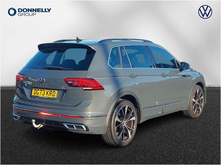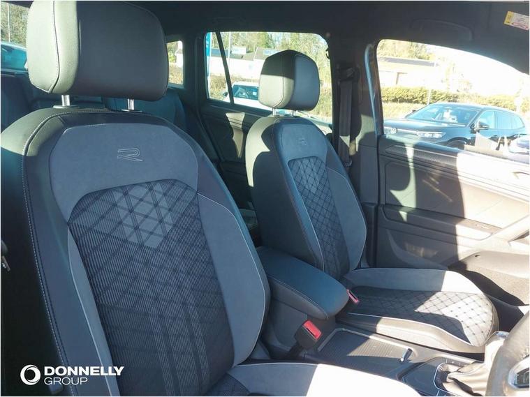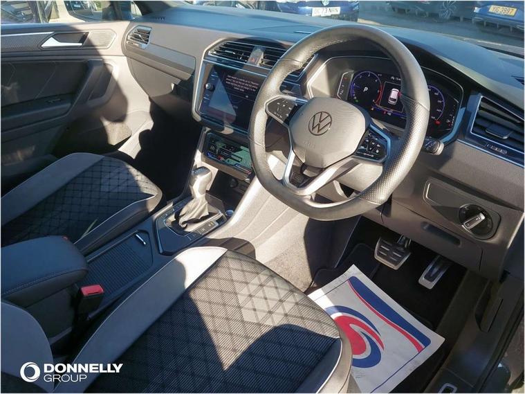 Driver assistance pack plus - Tiguan DSG, Anti theft alarm system with interior monitoring, backup horn and towing protection, Anti theft wheel bolts, Electronic engine immobiliser, 4 X 20 watt output, 8 speakers, Diversity antenna for FM reception, SD card slot, Simultaneous pairing of 2 compatible mobile devices, SMS functionality - read, compose and send SMS messages using touch-screen display, Title and cover art display, USB C ports, 3 point seat belt for centre rear seats, 3 point seat belts with seat belt pretensioners for the outer rear seats, Active bonnet, Curtain airbags for front and rear passengers, Driver/Front Passenger airbags, Drivers knee airbag, Electronic parking brake with auto hold, Electronic Stability Control with driver steering recommendation, ABS, ASR, EDL, EDTC and trailer stabilization, Front assist with autonomous emergency braking (for Adaptive Cruise Control ACC up to 130 mph), Front disc brakes, Front passenger airbag deactivation, Front side airbags, Height adjustable front 3 point seatbelts + pretensioners, Hill hold control, Manual child proof rear door locks, Pedestrian monitoring system, Power assisted brakes, Proactive passenger protection system in combination with front assist, Rear disc brakes, Rigid safety cell with front and rear crumple zones, Two tone horn, Warning sound and light for front seat belts if unfastened, Auto dimming interior rear view mirror, Automatic headlight control system, Body colour door handles, Chrome moldings on the side windows, Coming/leaving home lighting function, Dynamic headlight range control, Front and rear electric windows, Heated rear window, High level 3rd brake light, Laminated safety glass windshield, heat and sound insulating, LED headlamps with LED separate daytime running light and dynamic cornering light, LED rear combination lamps, LED rear number plate lights, License plate carrier in front and rear, Poor weather light and cornering light, R Line body kit, R Line side sills, Rain sensor windscreen wipers, Rear exhaust tailpipe, Rear fog lamp, Rear side wing doors, Rear spoiler in R style, Rear windscreen washer and wiper with interval delay, Side and rear windows in heat insulating glass, Trailer Stability Programme, Unique R Line badging, Windscreen wipers/ intermittent wipe + 4 position delay, 12V outlet in center console rear and in luggage compartment, 12V outlet in front and tray, 2 cup holders in front, 2 LED front reading lights, 2 LED rear reading lights, 3 bench rear seats in 2nd row, 3 rear headrests, 4 load lashing points, 40:20:40 split folding rear seats, Air Care Climatronic 3 zone automatic climate control with enhanced air filter and controls in the rear, Backrest release for left front seat, Black headlining, Brushed stainless steel pedals and footrest, Carpet mats in front and rear with decorative stitching in Gray, Climate control unit rear with touch function, Door and side trim panel in foam film, insert in leatherette, Front centre armrest, Front footwell illumination, Front seats head restraints (x-adjustment), Height adjustable front seats, Height/reach adjust steering wheel, Instrument lighting white adjustable panel illumination, Interior light with delay, Isofix Preparation 2 Rear child seats, Leather gear knob, Lockable cooled glovebox, Luggage compartment lighting, Luggage net, Rear bench seat asymetrically split folding, longitudinally movable and folding with load-through hatch and center armrest, Remote unlocking for rear seat backrest, Removable luggage cover, Removable rear headrests, Safety optimised front head restraints, Single front passenger seat, Sliding/reclining rear seats, Standard rear seat release, Storage compartment in driver's door, Storage compartment in passenger's door, Storage compartment in rear doors, Storage compartments in luggage area left and right, Storage tray on dashboard, Sun visors with illuminated vanity mirrors, Tool kit, Top front comfort seats, Variable boot floor, height adjustable and removable, Adaptive cruise control ACC stop and go including speed limiter, App-Connect incl. App-Connect Wireless for Apple CarPlay and Android Auto, Bluetooth phone integration system, Distance control assist, Driver alert system, Driver profile selection, Dynamic road sign display, eCall emergency call system, Electromechanical speed sensitive power steering, Engine start/stop button, Lane keeping system Lane Assist, Lights on warning, Multifunction front facing camera, Outside temperature display, Premium multifunction display with multi colour display, Remote control boot opening, Rev counter, Revision / skills operating concept travel assistant, Service interval indicator, Speed limit display, Start/stop system with regenerative braking, Trip computer, Warning sound and light for doors and tailgate open, Battery regeneration during braking, Diesel particulate filter, Misfuel prevention device for diesel engine, Selective Catalytic Reduction, XDS electronic differential lock for improved traction and handling,
