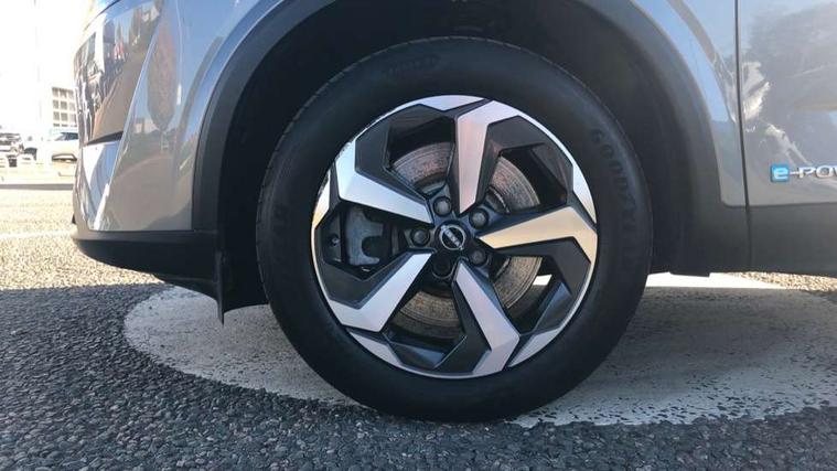 Interior instrumental panel B finisher, 18" Diamond cut alloy wheels, Tyre puncture repair kit, Capless fuel filler, Engine immobiliser, Intelligent Key, Remote central door locking with deadlocking, Thatcham Cat.1 alarm, 6 speakers, AM/FM audio system with DAB, Bluetooth audio streaming, Front USB connections (Type-A and Type-C), Rear USB charging only ports (Type-A and Type-C), 3x3 point rear seatbelt pretensioners + load limiters, ABS with EBD and brake assist, Active brake limited slip, Auto hold function, Child locks on rear doors, Curtain and front side, far side airbags, Driver and passenger airbags, Driver, passenger and 2nd row rear seat belt reminder, Electronic parking brake, Front seatbelt pretensioners + load limiters, Height adjustable front seatbelts, Hill start assist, Intelligent blind spot intervention, Intelligent front emergency braking with pedestrian, cyclist recognition and junction assist, Intelligent rear automatic braking, Tyre pressure monitoring system, Vehicle dynamic control, Auto dimming rear view mirror, Auto rear wiper when reversing, Automatic hazard signal with emergency stop signal, Body colour mirror caps, Body coloured door handles, Bodyside mouldings, Chrome side window finisher, Door handle with button, e-POWER badging, Electric auto folding door mirrors, Electrically adjustable and heated door mirrors with LED turn indicator, Follow me home headlights, High beam assist, Intelligent auto headlights, LED daytime running lights, LED Headlights, LED rear lights, One touch front and rear electric windows with remote opening and closing, Partially body coloured bumpers, Privacy glass, Rear bumper with graphite insert, Rear reversing light (bulb lighting), Rear roof spoiler, Rear side wing doors, Rear styling plate, Shark fin antenna, Splash free rain sensing wipers, Super UV and infrared cut glass, Three blink turn signal, 12v power socket in dashboard and luggage, 2x Rear coat hooks, 3 bench rear seats in 2nd row, 3 rear headrests, 4 folding assist grip, 6-way manually adjustable driver's seat, 60/40 split folding rear seat bench, Ambient lighting around centre console, Centre console storage tray, Chrome interior door handles, Cloth monoform upholstery, Driver and front passenger sunvisors with illuminated vanity mirrors, Driver seat back pocket, Dual zone automatic climate control with pollen filter, e-POWER shifter, Front and rear door storage, Front centre console and armrest, Front cupholders x 2, Front door with bottle holders, Glovebox with light, Hard trunk cover, Height adjustable driver's seat, Height adjustable front headrests, Height adjustable passenger seat, Leather steering wheel, Luggage board system, Luggage space lighting, Manually adjustable passenger (slide recline + lifter), Multifunction steering wheel, Passenger seat back pocket, Rear armrest with 2 cupholders, Rear door bottle holders, Single front passenger seat, Soft PVC kneepad, Steering wheel switches, Sunglasses holder, Tilt/telescopic adjustable steering wheel, Two rear isofix child seat anchorage points with top tether, Welcome light and console tray ambient lighting, Android auto/Apple CarPlay (Wired), Blind spot warning, Drive modes (sport, normal, eco), Electric speed sensitive power steering, Emergency and breakdown call, Front and rear parking sensors, Full Digital 12.3" TFT Digital Combimeter, Google maps services - search, weather, 3D maps and Google street view, Idle stop/start system, Intelligent around view monitor, Intelligent Cruise control (ICC), Intelligent driver alert system, Intelligent forward collision warning, Intelligent lane intervention, Lane departure prevention, Lane departure warning system, Maximum speed limiter, Moving object detection, Nissan connect 12.3 inch touchscreen infotainment system, Nissan connect navigation, Push button starter, Rear cross traffic alert, Rear view camera, Remote control services - door locks, lights, horn and car locator, Telematics - notifications and connectivity services, TomTom live traffic services, Traffic sign recognition with legal speed adjustment, Trip computer, Virtual personal assistant and firmware over the air capability, Wireless apple carplay,