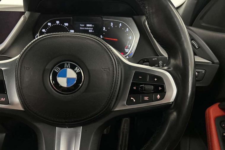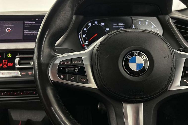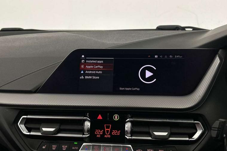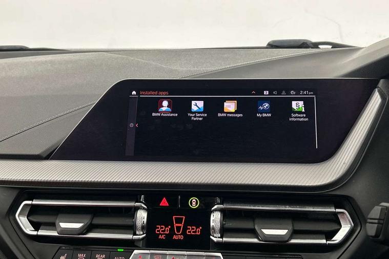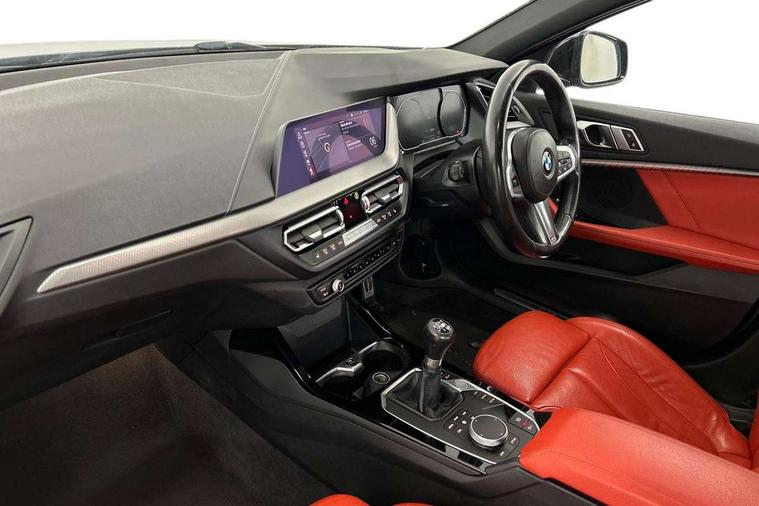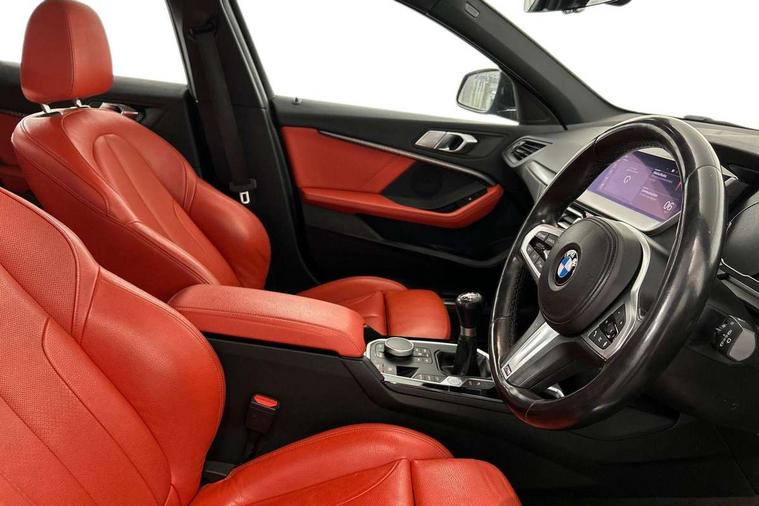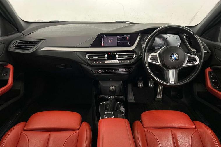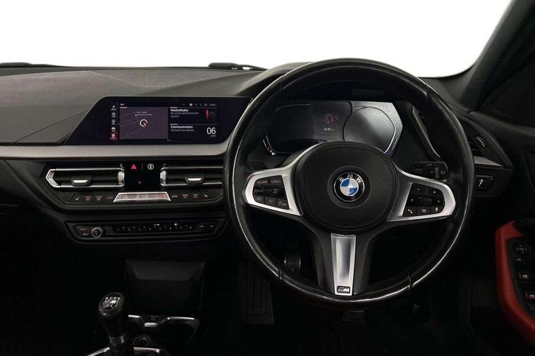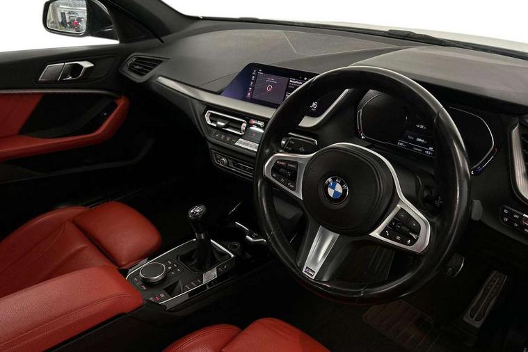 Contrast stitching on instrument panel, Connected pack professional - 1 Series, Extended Lighting pack - 1 Series, Extended storage pack - 1 Series, Interior lights pack - 1 Series, Luggage compartment pack - 1 Series, M Sport exterior styling aerodynamics pack - 1 Series, Reduced rolling resistance tyres, Automatic drive away locking facility, Central locking switch for all doors, fuel filler cap and luggage compartment, Deadlocking function system to all doors, Locking wheel bolts, Remote control with integrated key with High-gloss Black inlay and M designation and 1 button for open/ close lock, window, open luggage compartment, Start/stop button with comfort go keyless engine start and auto start stop deactivation button, Thatcham Cat.1 alarm and immobiliser, Bluetooth audio streaming, DAB Digital radio, 2 tone horn, 3 point seatbelts on all seats, front pyrotechnic belt tensioners, stopper and belt force limiters, rear coded belt buckles, Airbags - Front driver and passenger, front and rear head, front side, curtain head protection, Anti lock braking system (ABS) with brake assist, BMW emergency call, Brake drying, Braking readiness, City braking function, Crash sensor activating central locking release, hazard warning lights, fuel cut off, interior lighting + activation of safety battery terminal clamp, Driver and front passenger seat belt security check, Dynamic stability control + (DSC+), Dynamic Traction Control - DTC, Electrically operated hand brake, Front and rear disc brakes, Front passenger manual airbag deactivation, Rear child proof door locks, Seatbelt warning, Side impact protection, Tyre pressure monitoring system, Warning triangle and first aid kit, Auto dimming rear view mirror, Automatic headlight beam throw control, Body colour door handles, Body colour mirror caps, Chrome 'M' logo side designation, Chrome exhaust tailpipe in single, round (Exhaust tailpipe, stainless steel - single, round), Chrome kidney grille frame with Satin Aluminium struts, Direction indicator side lights in exterior mirrors, Electric folding and anti dazzle exterior mirrors, Fading support, Follow me home headlights, Front and rear electric windows with open and close fingertip control, anti trap facility and comfort closing, Front door sill finishers in black plastic with BMW designation, Green tinted heat protection glazing, Heated, electrically adjustable exterior mirror aspheric on driver side, convex on passenger side, High gloss shadow line exterior trim, High gloss shadowline window frame, Recess cover mirror frames and B/C pillar embelisher trim, High level third brake light, LED daytime running lights, LED eyebrow turn indicators, LED front fog lights, Lightweight engineering, Matt black air guide grilles, Model designation on right side of tailgate, Nearside reverse light in rear light cluster, Preparation for high beam assistant, Rain sensor including auto headlights activation, Rear fog lights, Rear window wiper, Shark fin antenna, Visible VIN plate, Welcome lighting, Windscreen wipers with integrated washing jets, 12V power socket in centre console, 2 cupholders in front centre console, 3 rear seat head restraints, 3 spoke M sports design leather steering wheel finished in nappa leather with specific M badge, Anthracite headlining, Anthracite Velour floor mats, Child seat ISOFIX attachment for two outer rear seats and front passenger seat with anchorage points, Conditioned based service, Dakota leather upholstery with perforation and contrast stitching, Driver and front passenger seat heating, Driver side folding compartment in instrument panel, Folding rear clothes hook, Folding rear seats, Four grab handles integrated in roof lining, Front and rear door pockets, Front and rear side armrest integrated into door trim, Front armrest foldable with integrated storage compartment, Front sports seats with electric side bolster adjustment, Gearshift lever with M designation, Glove compartment, Height adjustable front head restraints, Manual adjust steering wheel, Multi-function controls for steering wheel, Rear seat backrest with manual 60:40 split folding with 3 top tether clips integrated on rear of seat panels, Storage compartment in centre console, Sun visors with vanity mirrors and insert tab, Two zone automatic air conditioning, Active guard plus, Attentiveness assist, BMW Online services, BMW Teleservices, Check Control warning system for monitoring of lights and door/luggage compartment open warning, Connected eDrive Services, Cruise control with brake assist, Eco pro mode, Electric power steering with Servotronic steering optimised at all speed ranges, Integrated owners handbook, Lane departure warning system, Oil sensor for level and grade, On board computer, Optimum shift indicator, Personal Profile, Pull away assistant, Speed limiter, 6 speed manual transmission, Aluminium lightweight construction, Anti roll bar front and rear, Balancer shaft, Double VANOS, Drive Performance Control, Electronic differential lock, High precision injection, M sports suspension + self levelling, Petrol Particulate Filter, VALVETRONIC engine management,