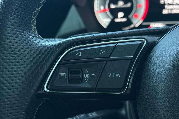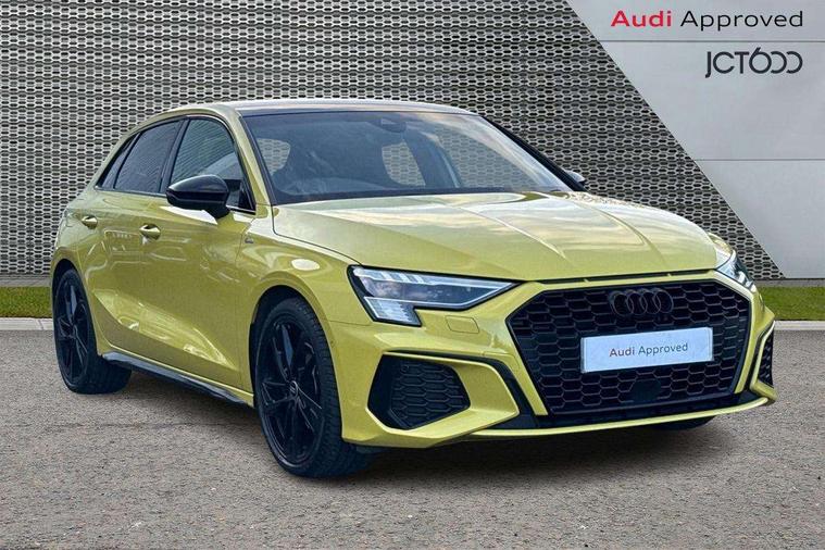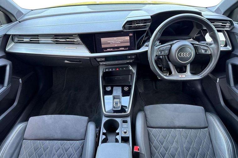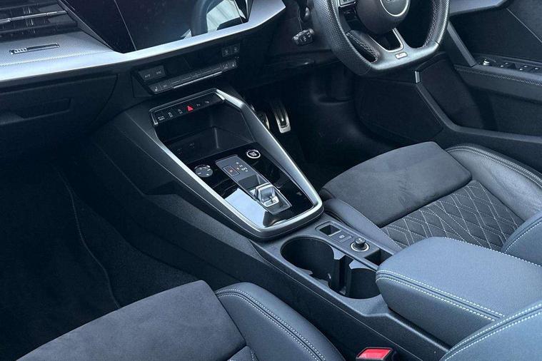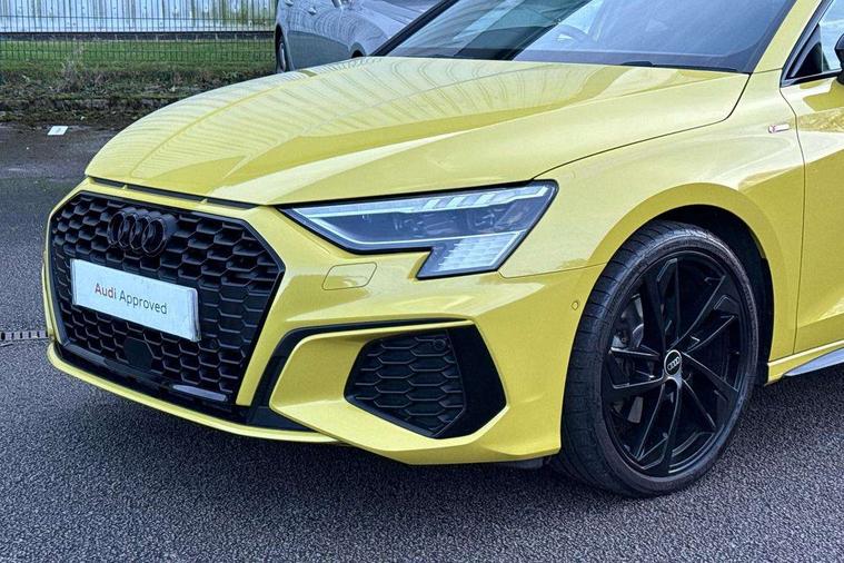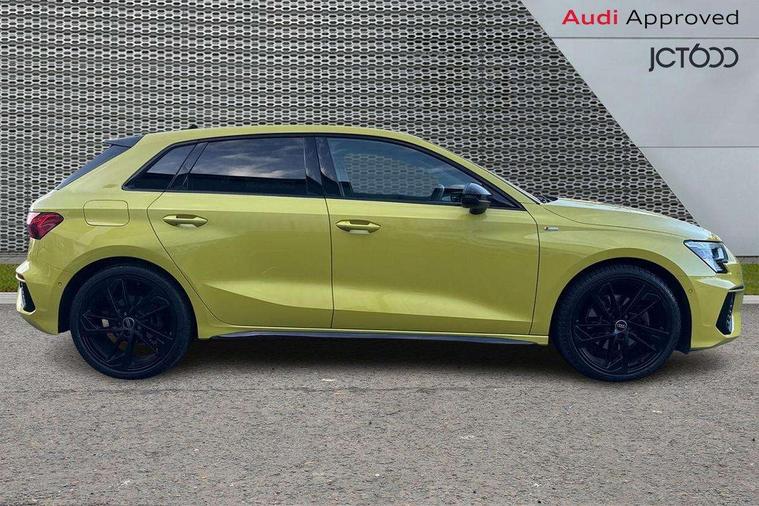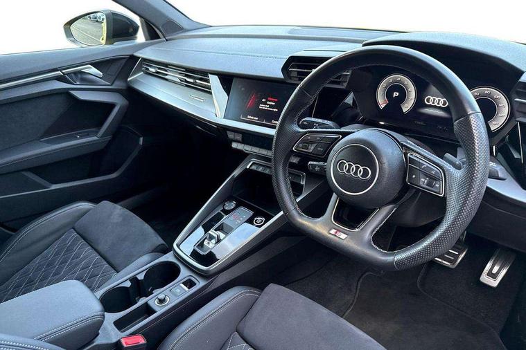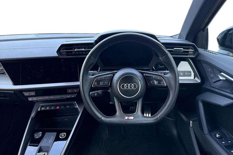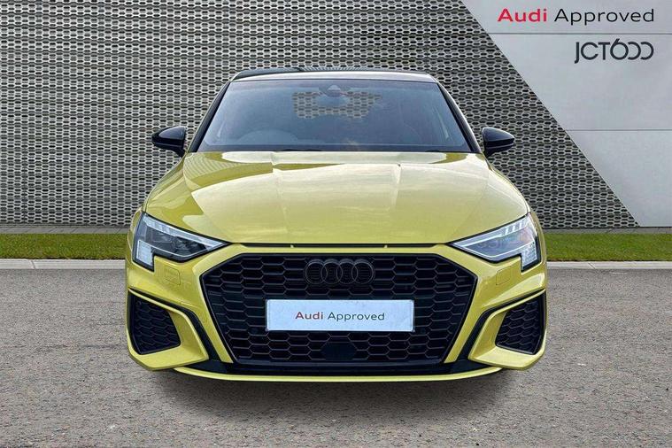 Accent surfaces in the dashboard and centre console in platinum grey silk effect paint finish, Dark spectrum aluminium inlays, Aluminium interior elements pack - A3 Sportback, Black styling pack - A3 Sportback, Dinamica microfibre/mono.pur 550 artificial leather pack - A3 Sportback, Extended ambient lighting pack - A3 Sportback, LED interior lighting pack - A3 Sportback, 19" 5 arm trapezoid design alloy wheels in matt grey with diamond cut finish, Anti theft alarm, Anti-theft wheel bolts, Electronically operated child lock, Immobiliser, Remote control central locking, 2xUSB-C connection with data and charging functions, 6 passive loudspeakers, DAB Digital radio, 3x3 point rear seat belts, Audi pre sense front, Driver and front passenger airbag with passenger airbag deactivation, Electronic Stabilisation Control (ESC) including ABS, ASR and EDL, First aid kit with warning triangle and 2 safety vests, Front side airbags with head airbags and interaction airbag, Pre-sense front with pedestrian and cyclist detection, Seatbelt monitoring, Tyre pressure loss indicator, 3rd brake light, Acoustic glass windscreen, Audi matrix LED headlights, LED rear lights, dynamic front and rear indicators and headlight cleaning system, Auto dimming frameless rear view mirror, Body colour front spoiler blade, Electrically adj heated/folding + automatically dimming exterior mirrors + automatic kerb side function for passenger side exterior mirror, Front electric windows, Illuminated aluminium inserts front door sills with S logo, Integrated LED indicators in door mirrors, LED daytime running lights, Light and rain sensors, Privacy glass - dark tinted rear window, rear door and side windows, Rear diffuser in grained matt black, Rear electric windows, Rear side air outlets in grained matt black, Rear side wing doors, Rear wiper, S roof spoiler, 12V socket and storage compartment in front centre console, 3 seat bench in 2nd row, 4 way electrically adjustable lumbar support for driver and front passenger, 40/20/40 split folding rear seat bench with cupholder, Black cloth headlining, Dual zone electronic climate control, Electrically adjustable front seats for driver's side, Front and rear headrests, Front/rear floor mats, Heated front seats, Height and reach adjustable steering wheel, Illuminated vanity mirror, Interior lighting - glove compartment light and right hand side, Luggage compartment floor covering, Manual boot compartment lid, Seat side bolsters, Single front passenger seat, Stainless steel pedals and front footrest in black, Audi drive select (Auto, Comfort, Dynamic, Efficiency and Individual), Audi smartphone interface, Audi virtual cockpit plus - 12.3" full HD resolution dynamic digital instrument cluster, Automatic start/stop system with recuperation, Bluetooth interface, Collision avoidance assistant, e-Call (emergency call), Electromechanical power speed sensitive steering, Lane departure warning system, MMI Navigation Plus with high resolution 10.1" colour touch screen display, Service indicator, Trip computer, Voice control system with natural language interaction, Sports suspension,