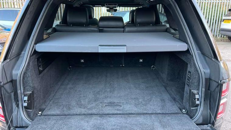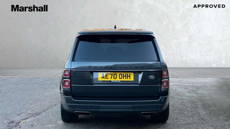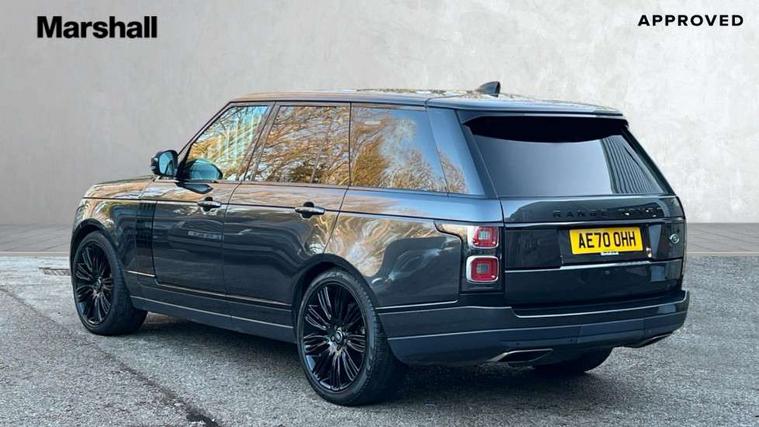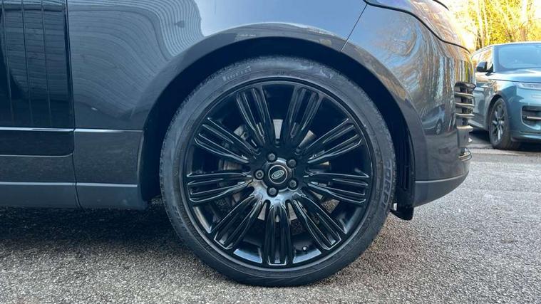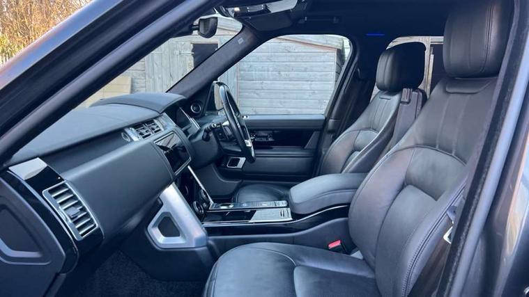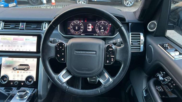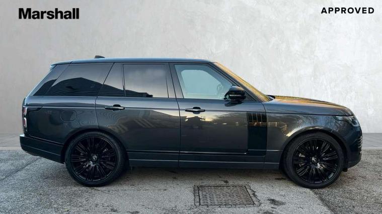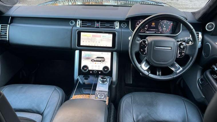Black exterior pack - Range Rover, Immobiliser, Intrusion sensor and alarm, Keyless entry, Locking wheel nuts, Remote central locking, Digital Audio Broadcast radio-DAB, Digital TV, InControl app, USB socket, 3 rear 3 point seatbelts, Anti-lock braking system (ABS), Auto lock system when vehicle in motion, Cornering brake control (CBC), Curtain airbags, Customer configurable autolock, Driver/front passenger head+thorax airbag, Drivers knee airbag, DSC - Dynamic Stability Control, Electronic brake force distribution, Electronic parking brake, Electronic traction control, Emergency braking, ESP, Front airbags with passenger seat occupant detector, Front seatbelt pretensioners with force limiters, Front side airbags, Grey anodised brake calipers, Height adjustable front seatbelts, Hill descent control, Hill launch assist, Low traction launch, Power operated child locks, Roll stability control, Tyre pressure monitoring system (TPMS), Acoustic windscreen, Auto dimming interior rear view mirror, Auto self levelling headlights, Automatic headlights, Body coloured bumpers, Centre high mounted stop light, Door/quarter lights in toughened plate glass, Electric windows with one touch open/close and anti trap, Electrical towing preparation, Follow me home headlights, Front and rear recovery eyes, Front fog lights, Headlamp power wash, Heated rear window, Heated windscreen includes heated washer jets, Illuminated metal tread plates with brand name script, Integrated twin tailpipes, LED rear lamps, LED tail lights, No badges, Power fold, auto-dimming, heated door mirrors with memory and approach lights, Power front/rear windows with global close, Privacy glass, Rain sensing windscreen wipers, Rear fog lights, Rear wash/wipe, Side repeater indicators in mirror, Sliding Panoramic roof includes gesture sunblind and auto sunblind, Trailer stability assist, 12V power point in luggage area, 12V power sockets, 3 rear headrests, Black gearshift paddles, Bright metal pedals, Carpet mats, Centre console with storage and armrest, Configurable Ambient interior lighting, Customer configurable single point entry, Driver and passenger front seat armrests, Easy boot loading, Electrically adjustable steering column, Folding rear seats, Front and rear cupholders, Front and rear grab handles, Front headrests, Front seat back map pockets, Heated steering wheel, Loadspace cover, Loadspace light, Lockable glovebox, Luggage compartment lighting, Luggage tie down in loadspace, Perforated Windsor leather upholstery, Rear centre armrest, Rear ISOFIX, Soft close doors, Suede cloth headlining, Through load facility, Twin blade sunvisors with Illuminated vanity mirrors, Android Auto, Apple car play, Bluetooth mobile phone connection, Dynamic route guidance, Electric power assisted steering (EPAS), Interactive Driver display instrument cluster, Lane departure warning system, Navigation pro system with 10" touch screen, app interface and media storage, Powered gesture tailgate/boot lid, Push button starter, Rear camera wash, Rotary shifter, Service interval indicator, Touch pro duo system, Trip computer, Voice control system, 8 speed automatic transmission, Adaptive dynamics, All Wheel Drive (AWD), Automatic access height, Diesel particulate filter, Electronic air suspension, Twin speed transfer box,