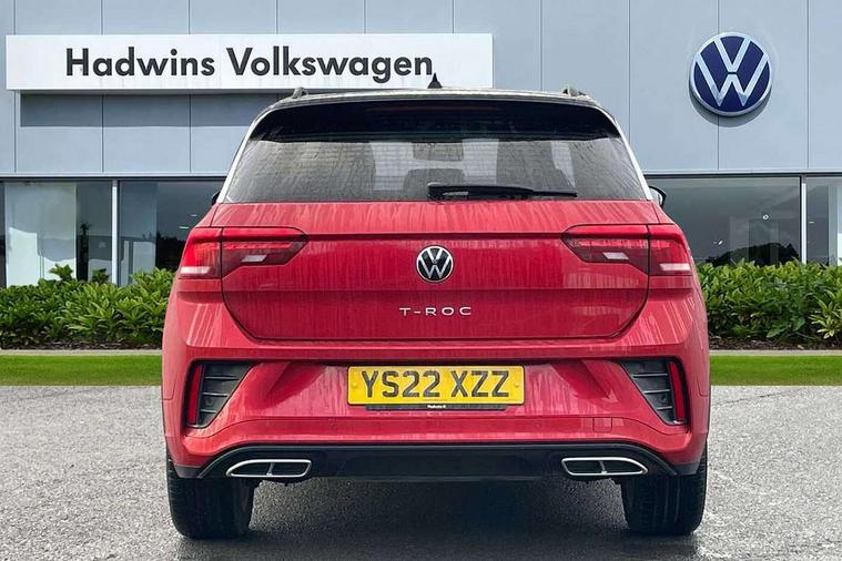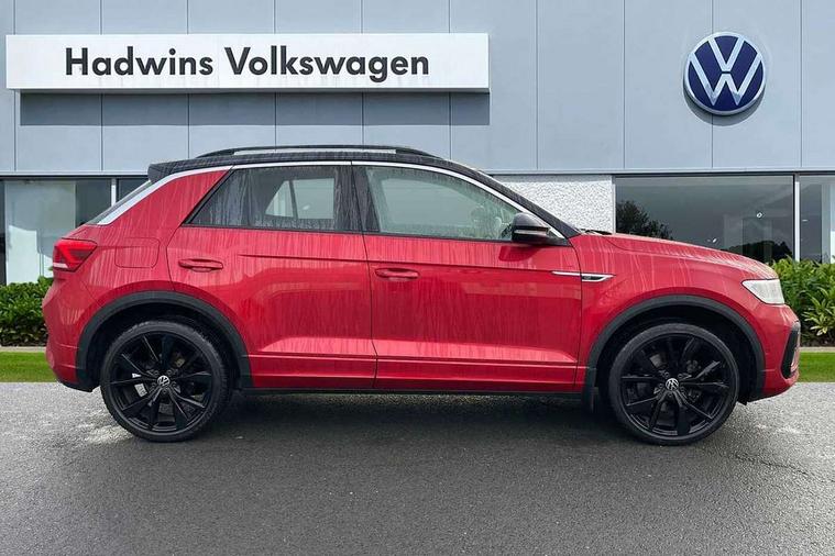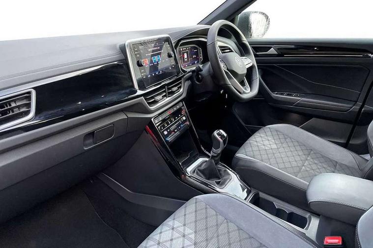 10.25" Digital cockpit pro, Bluetooth mobile phone interface, Driver alert system with fatigue detection, Driver tips and journey analysis, Dynamic road sign display, Emergency call service, Lane keeping system Lane Assist, Modified key software - reduce switch off time for key status change to Long no motion, Online services, Park assist including front and rear parking sensors, Service interval indicator, Tailgate/trunk lid release from outside, Think blue trainer driver tips and journey analysis, Warning sound and light for front seatbelts unfastened, Wireless app connect, Battery regeneration during braking, Start/stop function with battery regeneration, Diversity antenna for FM reception, Front and rear 6 speakers, Music playback - MP3, WMA and AAC files, Premium USB cable in choice of either Apple or Android smartphone compatibility, SD card slot, Simultaneous pairing of 2 compatible mobile devices, Title and cover art display, We Connect and We Connect Plus functionality, 3rd brake light, Auto dimming interior rear view mirror, Automatic hazard lights activation under emergency braking, Automatic headlight control with LED separate daytime running lights with coming/leaving home function, Chrome plated radiator grille inserts, air vent surrounds and light switch surrounds, Extended roof spoiler, Exterior mirrors aspherical on driver side, convex on front passenger side, External USB type C socket and charging sockets, Front windscreen wiper with intermittent wipe and 4 position delay, Heated rear window, LED Plus headlamps, LED rear combination lamps, LED rear number plate lights, LED tail lamp rear comination lamps, Power windows with comfort operation and circuit breaker, R-Line design body coloured bumpers, Rain sensor, Rear exhaust tailpipe, Rear fog light on one side and reversing lights on both sides, Rear side wing doors, Rear wash/wipe with intermittent wipe setting, Remote electrically foldable door mirrors, puddle lights and reverse activated passenger's door mirror, 12V power socket in centre console, 3 rear head restraints, 3 seat bench in 2nd row, 4 load lashing points in luggage compartment, Air care climatronic air conditoning system with active combination filter and 2-zone temperature control, Black roof lining, Door and side trim panel with leatherette insert, Drawer under drivers seat, Front + rear carpet mats, Front centre armrest, Front cupholders x 2, Front footwell illumination, Front reading light, Front scuff plates with R logo, Instrument lighting, white adjustable panel illumination, Interior ambient lighting and surround lighting, Interior light delay, Isofix child seat preparation, Leather gearshift handle, Load-through provision with cup holder when folded down ('Unsplit rear seat bench, split folding backrest, with centre armrest), Luggage compartment lighting, Single front passenger seat, Stainless steel pedals, Storage compartment in left and right luggage area, Storage compartment in rear doors, Storage compartments in driver and front passenger doors, Sunvisors with illuminated vanity mirrors, Variable boot floor, height adjustable and removable, Driver assistance pack without proactive passenger protection - T-Roc, 3 point height adj front seatbelts + pretensioners, 3 point seatbelts in outer rear with ECE label, ABS, Child locks on rear doors, Driver and front passenger airbag with front passenger airbag deactivation, Driver and front passenger safety-optimised head restraints, Drivers seatbelt reminder, Electronic parking brake, Electronic Stability Control (ESC) inc EDL (Electronic Differential Lock) and ASR (Traction Control), Front and rear passengers curtain airbag system including front side airbags, Front assist with city emergency braking and pedestrian monitoring, Front seat side impact airbags, Hill start assist, Predictive pedestrian protection, Rear disc brakes, Single tone horn, Tyre pressure loss indicator, Volkswagen roadside assistance, Alarm with interior protection, Anti-theft alarm system with interior monitoring, backup horn, and towing protection, Remote central locking with SAFELOCK, radio remote control with 2 remote control folding keys, Trims for alloy wheels,