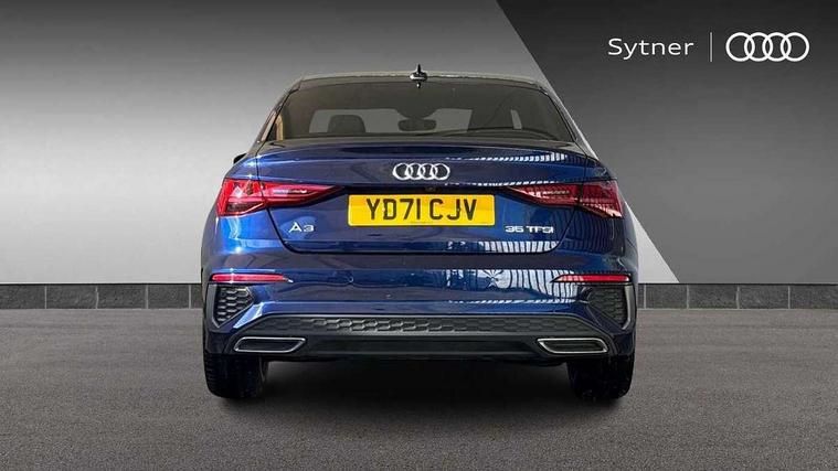 Aluminium air vent surrounds, Aluminium trim elements, Dark spectrum aluminium inlays, accent surfaces in the dashboard and centre console in platinum grey silk effect paint finish, Aluminium interior elements pack - A3 Saloon, S line styling pack - A3 Saloon, Anti theft alarm, Anti-theft wheel bolts, Electronically operated child lock, Immobiliser, Remote control central locking, 2x USB Type C ports (for charging and data transfer), 6 passive loudspeakers, CD player, DAB Digital radio, 3x3 point rear seat belts, Driver and front passenger airbag with passenger airbag deactivation, Electronic Stabilisation Control (ESC) including ABS, ASR and EDL, First aid kit with warning triangle and 2 safety vests, Front side airbags with head airbags and interaction airbag, Hill hold assist, Pre-sense front with pedestrian and cyclist detection, Seatbelt monitoring, Tyre pressure loss indicator, 3rd brake light, Acoustic glass windscreen, Aluminium window trim, Auto dimming frameless rear view mirror, Electrically adjustable/heated/folding/dimming door mirrors with kerb view includes integrated LED indications + kerb view function for passenger side, Front electric windows, Illuminated door sills with aluminium inserts at the front with S logo, LED daytime running lights, LED headlights with LED rear lights and dynamic rear indicators, Light and rain sensors, Model and engine designation badges at rear, Privacy glass - dark tinted rear window, rear door and side windows, Rear electric windows, S line bumpers, S roof spoiler, 12V socket and storage compartment in front centre console, 40/20/40 split folding rear seat bench with cupholder, Black cloth headlining, Dual zone electronic climate control, Front and rear centre armrest in leather, Front and rear headrests, Front/rear floor mats, Height and reach adjustable steering wheel, Interior lighting - glove compartment light and right hand side, Luggage compartment floor covering, Manual boot compartment lid, Manually adjustable front sport seats, Seat side bolsters, Stainless steel pedals and front footrest, Twin leather upholstery with front sports seats S embossed logo, Audi connect emergency call and service, Audi drive select (Auto, Comfort, Dynamic, Efficiency and Individual), Audi smartphone interface, Audi Virtual Cockpit - 10.25" digital and colour instrument cluster, Automatic start/stop system with recuperation, Bluetooth interface, Collision avoidance assistant, Cruise control + speed limiter, Electromechanical power speed sensitive steering, Lane departure warning system, MMI Navigation Plus with high resolution 10.1" colour touch screen display, Rear parking sensors, Service indicator, Voice control system with natural language interaction,