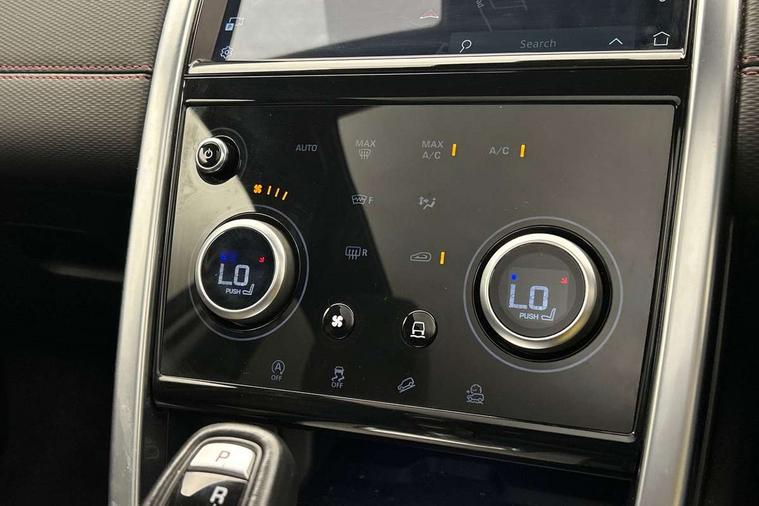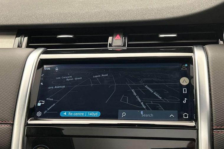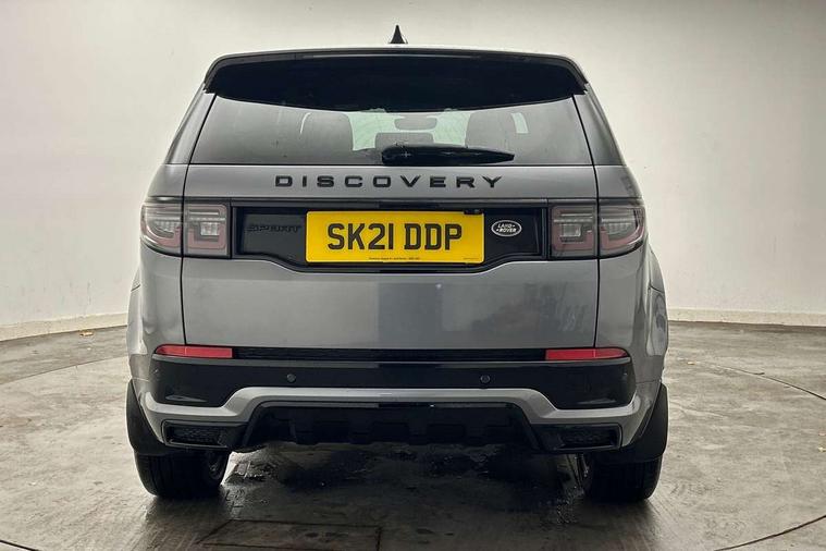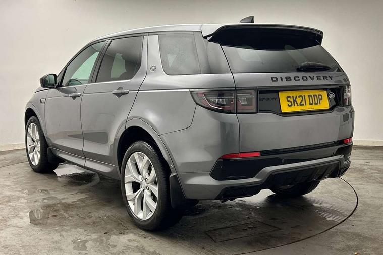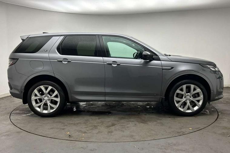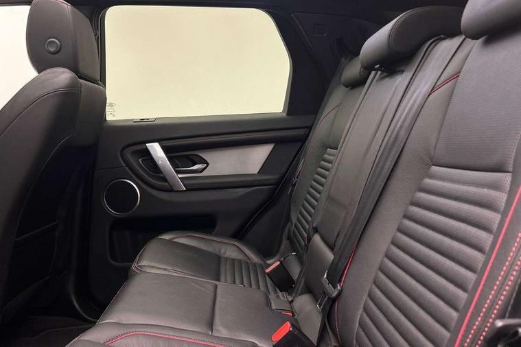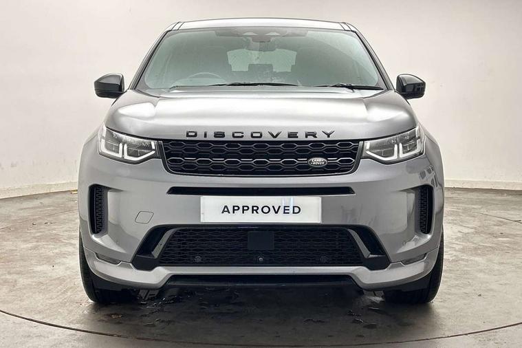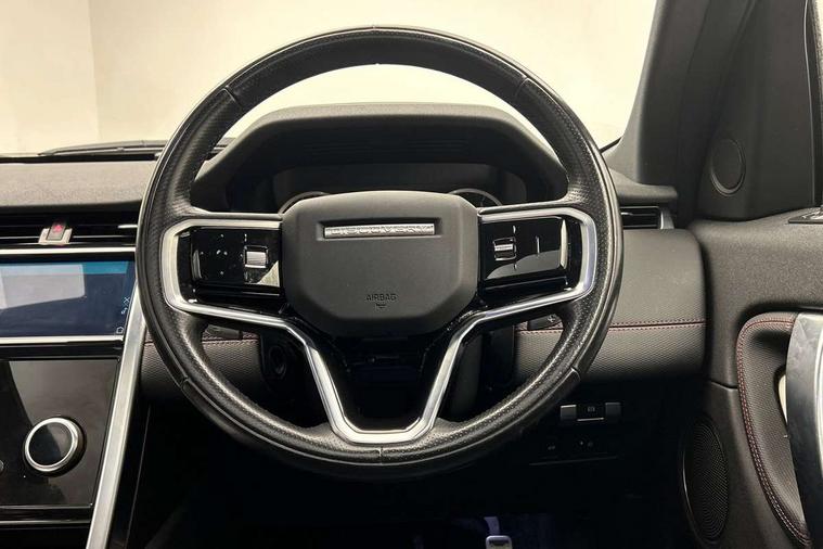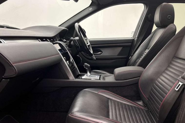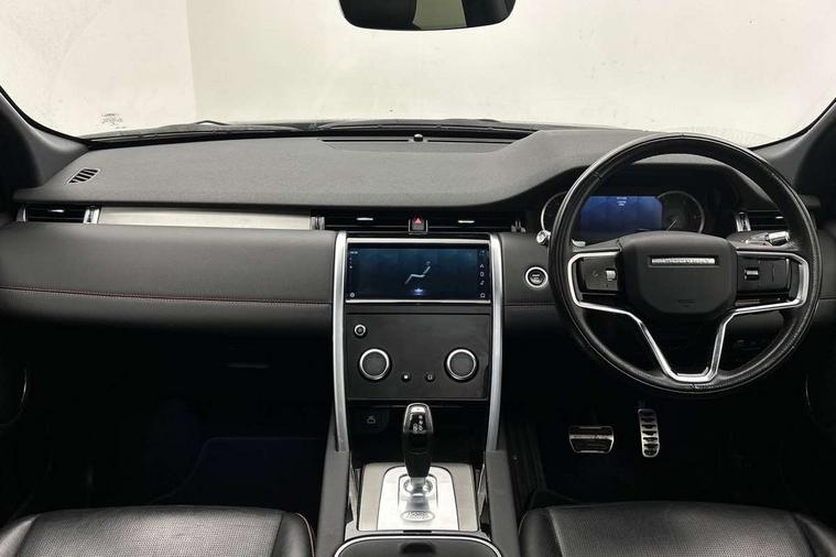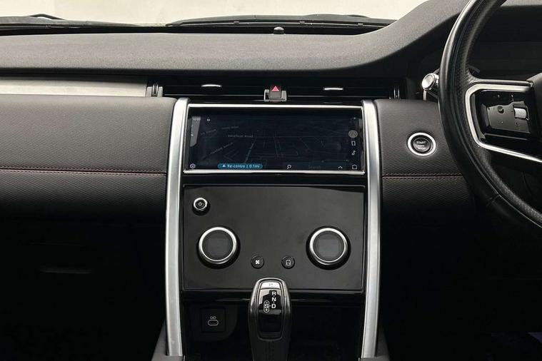 Centre stack rails in noble chrome, Black exterior pack - Discovery sport, Online pack - Discovery sport, Battery Back Up System (BBUS) with tilt sensor, Intrusion sensor, Locking wheel nuts, Bluetooth connectivity including audio streaming, Digital Audio Broadcast radio-DAB, Steering wheel mounted audio controls, 3 point seatbelts on all seats, ABS, Brake hold function, Child locks on rear doors, Collision mitigation braking system, Cornering brake control (CBC), Driver/Front Passenger airbags, Drivers knee airbag, Electronic brake force distribution, Electronic parking brake, Emergency brake assist, ESP + traction control, Hill descent control, Hill launch assist, Pedestrian airbag system, Rear seat ISOFIX, Side and curtain airbags for front and 2nd row seats, Trailer stability control, Tyre pressure monitoring system, 3rd brake light, Automatic headlights, Day time running light, Electric front/rear windows, No badges, Power fold, auto-dimming, heated door mirrors with approach lights, Privacy glass, Rain sensing windscreen wipers, Rear fog lights, Rear side wing doors, Rear wiper, 3 seat bench in 2nd row, Bright metal pedals, Centre console with armrest, Front passenger isofix child seat attachment, Front passenger seat, Rear headrests, Satin chrome gearshift paddles, Sunvisors with illuminated vanity mirrors, Tilt/reach adjustable steering wheel, 10" touch screen, 3D Surround Camera with 360 View, 180 Rear View, Front Traffic Detection, Forward Vehicle Guidance, Tow Hitch Assist and clear sight Ground View, Android Auto, Apple CarPlay, Driver condition monitor, eCall emergency call system, Front and rear parking aid, InControl remote premium, Lane keep assist, PAS, Pivi Pro connected navigation system with upgraded Infotainment, Powered tailgate/boot lid, Rear view camera, Service interval indicator, Traffic sign recognition with adaptive speed limiter, Trip computer, Wade Sensing, All terrain progress control, Coil suspension system, Diesel particulate filter, Terrain Response 2,
