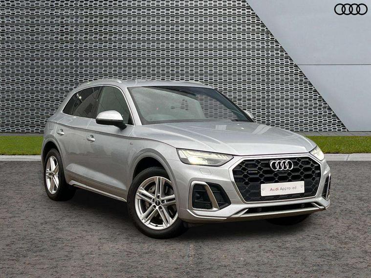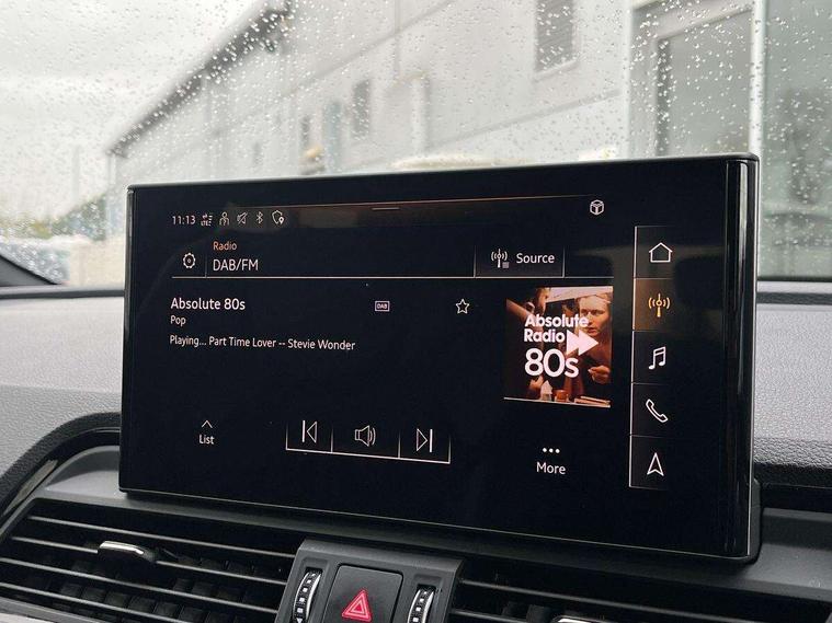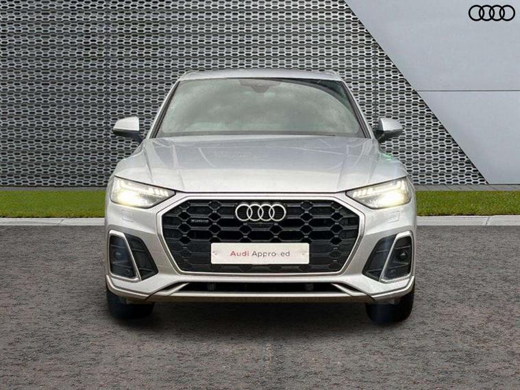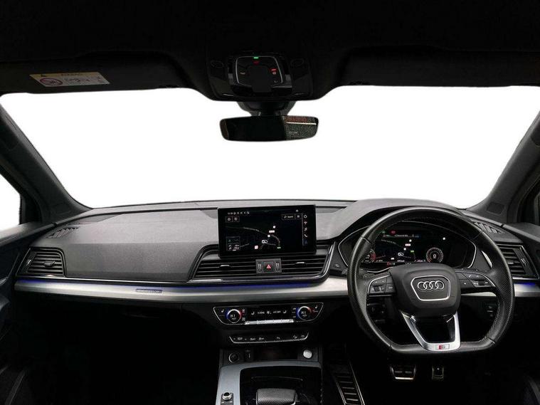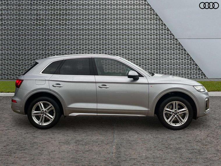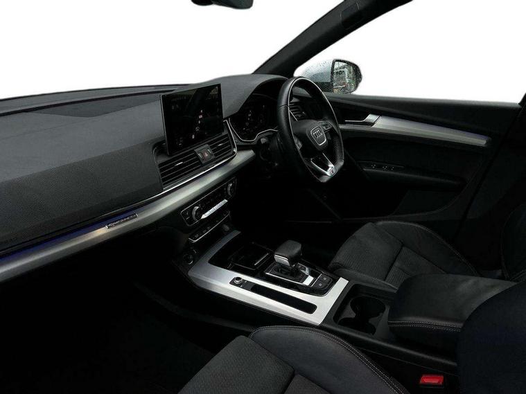 Matt brushed aluminium inlays, High gloss pack - Q5, LED interior light pack - Q5, Anti theft alarm, Anti-theft wheel bolts, Keyless Go access/ignition system, 2 USB charging ports, DAB Digital radio, 3 point seatbelts on all seats, 6 airbags - Driver, front passenger, curtain and side airbags, Electrically operated child locks on rear doors, Electromechanical parking brake, Electronic stabilisation control including ABS, ASR and EDL, Front passenger airbag deactivation, Hill descent control, Hill hold assist, Multi collision brake assist, Pop-up bonnet for pedestrian protection, Pre sense city, Seat belt force limiter, Seatbelt monitoring, Tyre pressure warning, Warning triangle and first aid kit, Acoustic windscreen, Aluminium roof rails, Audi matrix LED headlights with LED rear lights + dynamic front and rear indicators, Auto dimming rear view mirror, Automatic headlight adjustment, Automatic headlights and windscreen wipers, Body colour bumpers, Body colour door mirrors, Body colour rear diffuser with matt aluminium silver surrounds, Body colour underbody protection, Chrome plated exhaust trims, Door sills in Selenite silver, Electric adjustable/heated/folding door mirrors, Front air inlet surrounds in aluminium, Front and rear electric windows, Front radiator grille in honeycomb design, Headlight washers, Lower bumpers painted in contrast Manhattan grey, Rear chrome trim strip below lights, Rear privacy glass and rear side windows, Rear spoiler, Rear wiper, Roof bars, S Line badges on the front wings, S Line front and rear bumpers, S Line side skirts, 3 rear headrests, 40:20:40 split folding rear seat with rear centre armrest, Black cloth headlining, Contrast stitching on seats, steering wheel and gear lever gaiter, Deluxe 3 zone electronic climate control, Front centre armrest, Front/rear floor mats, Gear lever in black leather, Heated front seats, Height adjustable front head restraints, Height/reach adjustable steering column, Illuminated door sill trims with S logo, ISOFIX child seat mounting and top tether, Manual seat adjustment with 4-way electric lumbar support, Removable luggage compartment floor, Stainless steel pedals, Sunvisors with vanity mirrors, Tool kit, Trunk roller cover, Acoustic front and rear parking sensor, Amazon alexa Integration, Audi connect safety and service (e-call), Audi drive select, Audi virtual cockpit plus with 12.3" screen and three different layout designs, Audi wireless smartphone interface, Automatic start-stop system with coasting functionality and efficiency programme, Electro - mechanical power assisted steering, MMI navigation plus with 10.1" touch screen, Mobile telephone preparation - bluetooth interface, Power tailgate, Reversing camera, Service interval indicator, Voice control system with Audi hotword activation "Hey Audi", Diesel particulate filter, Quattro on demand, S line sports suspension,