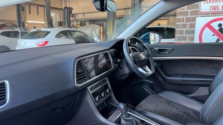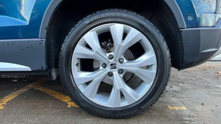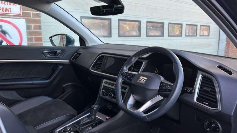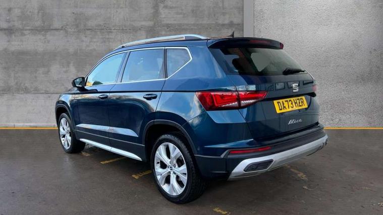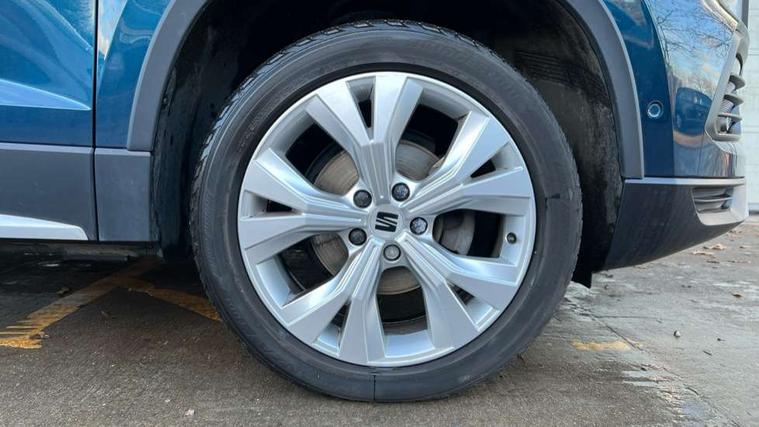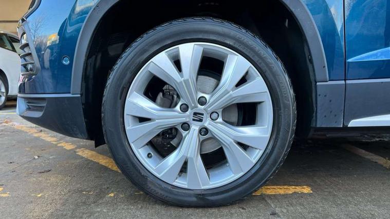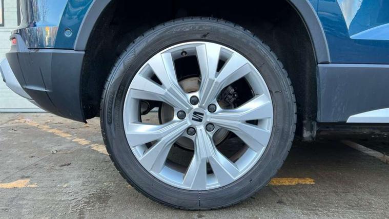 Chrome interior detailing, Convenience pack - Ateca, Interior lighting pack - Ateca, Navigation system pack with DAB - Ateca, Safe and driving pack with lane assist - Ateca, 18" Brillaint silver alloy wheels, Alarm, Keyless entry, Locking wheel bolts, Remote central locking, Steering wheel mounted audio/phone controls, 3x3 point rear seatbelts, ABS, Traction control system (TCS), Electronic stability control (ESC) and Electronic differential lock system (XDS), Airbags - Driver and front passenger airbag with deactivation, front side, two curtain and driver's knee airbags, Electric parking brake with auto hold function, Front and rear seatbelt reminder, Hill hold control, Manual rear child locks, Single tone horn, Tiredness recognition system, Traction control, Tyre pressure monitoring system, Black simulated exhaust pipes, Black wheel arch surrounds, Body colour bumpers, Chrome front grille frame, Chrome roof rails, Chrome side window trim, Dark tinted rear windows, Daytime running lights, Door mirrors with welcome light silhouette, Dynamic headlight range control with self adjusting whilst driving, Electric adjustable/heated/folding door mirrors, Front and rear electric windows, Front grille hot stamping, Full LED headlamps with lens and LED front fog lamps with cornering function, Illuminated aluminium front door sill, LED rear tail lights with dynamic indicators, Rear fog lights, Rear side wing doors, Rear wash/wipe, Reflex silver side mouldings, Third brake light, Variable front intermittent wipers, 12v socket in front, 3 seat bench in 2nd row, 60/40 split folding rear seat, Drawer under right front seat, Dual zone climate control, Front and rear head restraints, Front centre armrest, Front seat back storage pockets, Height adjustable driver and passenger seat with lumbar adjustment, ISOFIX points in outer rear seats with top tether anchorage points, Leather steering wheel and gear knob, Microsuede upholstery with front comfort seats, Rear armrest and easy back seat release mechanism from boot, Single front passenger seat, Steering wheel mounted gearshift paddles, 8" Digital cockpit, Colour multi-function on board computer display, E-call, Outside temperature gauge, Progressive power assisted steering, Rear view camera, SEAT drive profile with driving experience button - Normal, Sport, Eco and Individual mode, gearshift, steering and throttle response, Self parking functionality (includes front and rear parking sensors), Start/stop system, Tailgate, Trip computer, Wireless full link smartphone integration, Wireless phone charger,