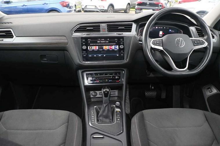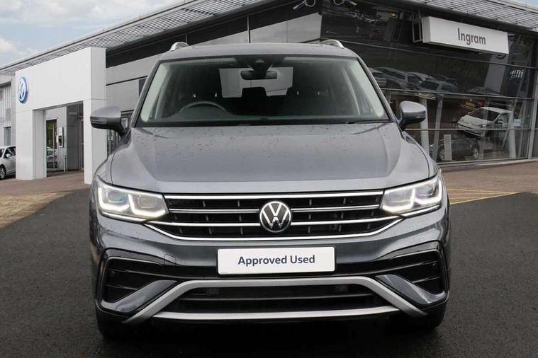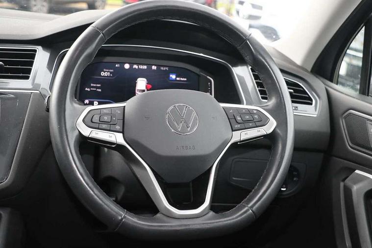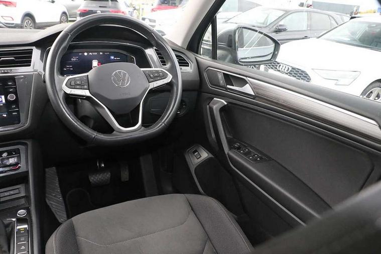 Ambience pack - Tiguan Allspace R Line, Driver assistance plus package - Tiguan Allspace, Anti theft alarm system with interior monitoring, backup horn and towing protection, Anti-theft wheel bolts, Electronic steering lock, Remote central locking with 2 remote folding keys, 2 USB-C ports in the front, 1 USB-C charging socket on the center console in the rear, DAB Digital radio, Diversity antenna for FM reception, 3 point seat belt for centre rear seat, 3 rear three point seatbelts, ABS+EBD+Brake assist, Driver and front passenger safety-optimised head restraints, Driver's and front passenger's airbag with front passenger's airbag deactivation switch, Electronic parking brake, Electronic Stability Control (ESC) inc EDL (Electronic Differential Lock) and ASR (Traction Control), Height adjustable front 3 point seatbelts + pretensioners, Manual rear child locks, Pedestrian monitoring, PreCrash preventive occupant protection Front and rear, Rear disc brakes, Side airbag in front and rear with curtain airbag, Two tone horn, Warning buzzer for seatbelts if unfastened, Auto dimming interior rear view mirror, Automatic headlight control system, Chrome mouldings on side window, Coming/leaving home lighting function, Exterior badge deletion, Exterior mirror housings painted in silver, Heated windscreen washer jets, Rain sensor, Rear fog light, Rear side wing doors, Rear spoiler in R style, Rear wiper, Silver roof rails, Third brake light, 12-volt outlet in centre console rear and luggage compartment, 12V socket in centre console, 3 head restraints in rear, 3 individual folding 2nd row seats, 3rd row 2 individual seats, Air Care Climatronic 3 zone automatic climate control with enhanced air filter and controls in the rear, Black roof lining, Door and side trim panel with leatherette insert, Drawers under front seats, Driver and front passenger seat height adjustment, Foldable front passenger seat backrest, Front + rear carpet mats, Front centre armrest, Front footwell illumination, Heated front seats, Illuminated scuff plates, ISOFIX anchorage points for mounting 2 child seats on rear seats and i-Size child seats, Leather gearshift handle, Leather wrapped multi function sports steering wheel, heated, with touch control and shifting paddles, LED interior light with switch off delay/dimmer and 2 front/rear LED reading lights, Stainless steel pedals, Sun visors with illuminated vanity mirrors, Adaptive cruise control, App-Connect, Digital cockpit pro, Driver alert system, Driver profile selection, Dynamic road sign display, eCall emergency call service, Electric boot lid, Lane change system side assist and rear traffic alert, Lane keeping system Lane Assist, Mobile phone interface comfort with inductive charging feature, Multifunction front facing camera, Progressive steering, Speedo and rev counter, electronic odometer, trip, service interval display and exterior temperature gauge, Front wheel drive, Start-stop system with battery regeneration (recuperation - energy recovery during braking),