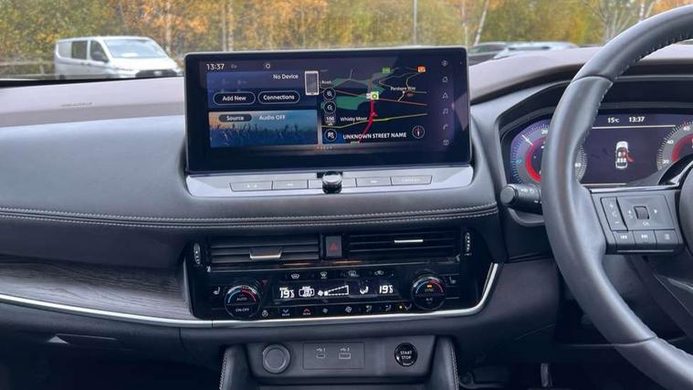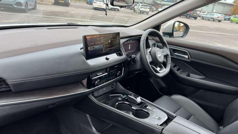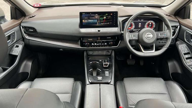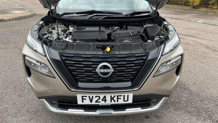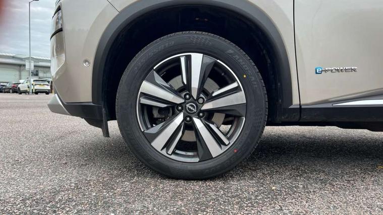 Sky pack - X-Trail, 19" Diamond cut alloy wheels, Tyre puncture repair kit, Engine immobiliser, Intelligent Key, Remote central door locking with deadlocking, Thatcham Cat.1 alarm, 6 speakers, AM/FM audio system with DAB, Bluetooth audio streaming, Front USB connections (Type-A and Type-C), Rear USB charging only ports (Type-A and Type-C), 3x3 point rear seatbelt pretensioners + load limiters, ABS with EBD and brake assist, Active brake limited slip, Auto hold function, Child locks on rear doors, Curtain and front side, far side airbags, Driver and passenger airbags, Driver, passenger and 2nd row rear seat belt reminder, Electronic parking brake, Front seatbelt pretensioners + load limiters, Height adjustable front seatbelts, Hill start assist, Intelligent blind spot intervention, Intelligent front emergency braking with pedestrian, cyclist recognition and junction assist, Intelligent rear automatic braking, Tyre pressure monitoring system, Vehicle dynamic control, 3rd brake light, Auto dimming rear view mirror, Auto rear wiper when reversing, Body colour mirror caps, Body coloured door handles, Bodyside mouldings, Chrome side window finisher, e-POWER badging, Electric auto folding door mirrors, Electrically adjustable and heated door mirrors, Follow me home headlights, Headlights auto levelling system, High beam assist, Intelligent auto headlights, LED daytime running lights, LED headlights with adaptive driving beam, LED rear lights, One touch front and rear electric windows with remote opening and closing, Partially body coloured bumpers, Rain sensing wipers, Rear privacy glass, Rear reversing light (bulb lighting), Rear roof spoiler, Rear side wing doors, Rear styling plate, Shark fin antenna, Splash free wipers, Super UV and infrared cut glass, Thermaclear heated windscreen, Three blink turn signal, 12v power socket in dashboard and luggage, 3 bench rear seats in 2nd row, 3 rear headrests, Butteryfly console, Chrome interior door handles, Driver and front passenger sunvisors with illuminated vanity mirrors, Driver seat back pocket, Electric adjustable 2 way lumbar support for driver, Electric adjustable 2 way lumbar support for passenger seat, Electrically adjustable driver seat, Front and rear heated seats, Front centre console and armrest, Front cupholders, Front door with bottle holders, Heated steering wheel, Height adjustable driver's seat, Height adjustable front headrests, Height adjustable passenger seat, Leather shift knob, Leather steering wheel, Luggage board system, Luggage space lighting, Multifunction steering wheel, Passenger seat back pocket, Rear armrest with 2 cupholders, Rear door bottle holders, Single front passenger seat, Sliding second row seats, Split folding 2nd row - 40/20/40, Steering column mounted gear shift paddles, Synthetic leather monoform upholstery, Tilt/telescopic adjustable steering wheel, Tri zone automatic climate control with pollen filter, Two rear isofix child seat anchorage points with top tether, Advanced 10.8" head up display, Android auto/Apple CarPlay (Wired), Blind spot warning, Drive modes (sport, normal, eco), e-Pedal step, Electric speed sensitive power steering, Emergency and breakdown call, Front and rear parking sensors, Full Digital 12.3" TFT Digital Combimeter, Google maps services - search, weather, 3D maps and Google street view, Hands free power tailgate, Idle stop/start system, Intelligent around view monitor, Intelligent driver alert system, Intelligent forward collision warning, Intelligent lane departure warning, Intelligent lane intervention, Intelligent lane keep assist, Lane departure prevention, Maximum speed limiter, Moving object detection, Nissan connect 12.3 inch touchscreen infotainment system, Nissan connect nav with TomTom traffic, Pro pilot and head up display, ProPilot park, Push button starter, Rear cross traffic alert, Rear view camera, Remote control services - door locks, lights, horn and car locator, Telematics - notifications and connectivity services, TomTom live traffic services, Traffic jam pilot, Traffic sign recognition with legal speed adjustment, Trip computer, Virtual personal assistant and firmware over the air capability, Wireless apple carplay, Wireless charging pad,