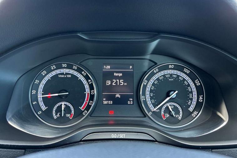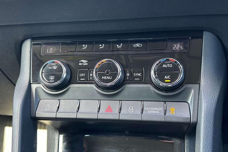 Chrome framed air vents, Storage on wheel cover, Alarm with interior monitoring, back up horn and tilt sensor with safe function, Electronic engine immobiliser, Remote central locking with 2 remote folding keys, DAB radio with Bluetooth, SD card slot, USB connection, Airbags - Front side, head, knee and curtain, Automatic door unlocking in case of crash, Automatic fuel cut off in case of crash, Driver airbag, Electronic parking brake with auto hold function, Emergency rear braking signal, ESC including ABS, MSR, ASR, EDS, HBA, DSR, RBS, MKB and traction control, Front assist radar scanning of the space in front of the car with automatic braking, Hill hold control, Passenger airbag with switch-off function, Pedestrian monitor, Seatbelt reminder signalisation and pretensioner for all seats, Three point seatbelts rear, Two tone horn, Tyre pressure display, Tyre pressure monitor, Acoustic glass, Aero front windscreen wipers with intermittent function, Automatic headlight control system, Body colour door mirrors and handles, Body coloured bumpers, Electric front and rear windows with child proof lock, Electrically adjustable heated folding and auto dimming door mirrors with boarding spots, Heated rear windscreen, LED rear lights with high functionality, Light assistant (coming/leaving home/tunnel light), Privacy glass, Safety reflectors on front doors, Third brake light, 1.5 litre bottle holders in driver and front passenger door panels, 12V socket in boot, 12v socket in front centre armrest with storage compartment and rear air vents, 2 Folding hooks and nets in boot, 2 Front readings lights for driver and passenger, 3 rear height adjustable headrests, 4 foldable roof handles with rear coat hooks, 4 lashing points on luggage floor, Backrest release, Cargo elements in boot, Chrome inner door handles, Driver and passenger seats height adjust, Dual zone climate control, Folding tables on the front seat backrests, Front seat and rear pockets, Height adjustable front three point seats belts with tensioners, Height/reach adjust steering wheel, Ice scraper, Illuminated and cooled glovebox, Illuminated luggage compartment, Isofix child seat preparation outer rear, Manual lumbar support for front seats, Net programme in boot, Pen holder, Pollen filter, Rear boot cover, Rear reading lights, Rear seats fixed folding and divided 60:40, Removable LED torch in the boot, Safety vest holder, Storage box in upper central dashboard closed, Storage net on centre console passenger side, Sunglasses storage compartment, Sunvisors with illuminated vanity mirrors, Umbrella under passenger seat, Driver alert system, Driver fatigue sensor, Driver profile selection, Electro-mechanical PAS, Outside temperature gauge, Service interval indicator, Start/stop system with regenerative braking, Diesel particulate filter,