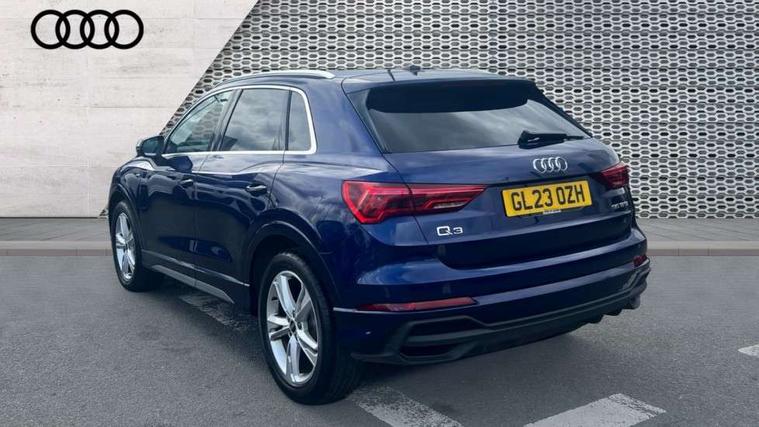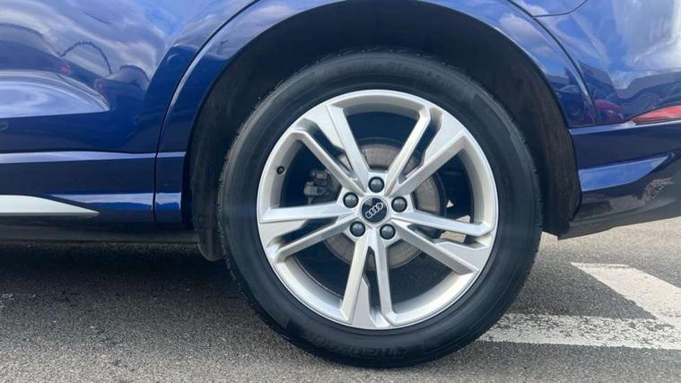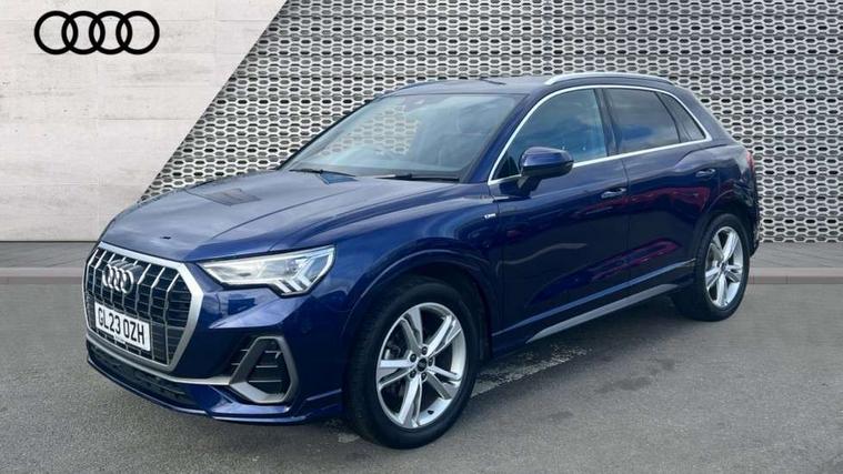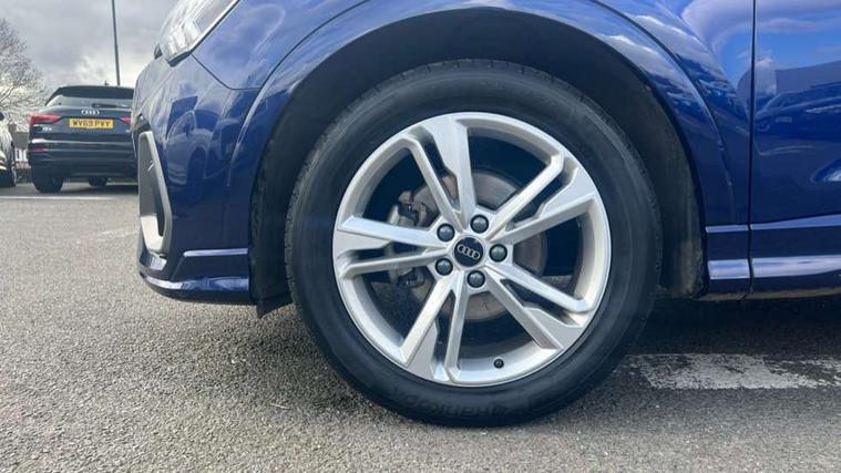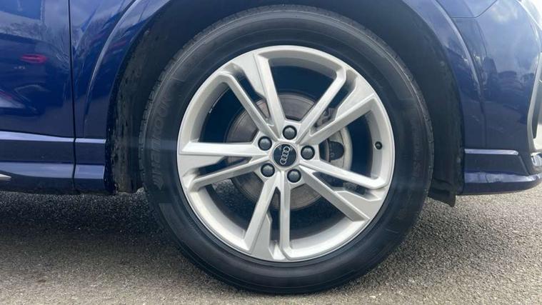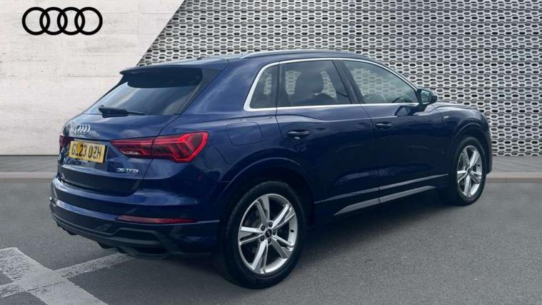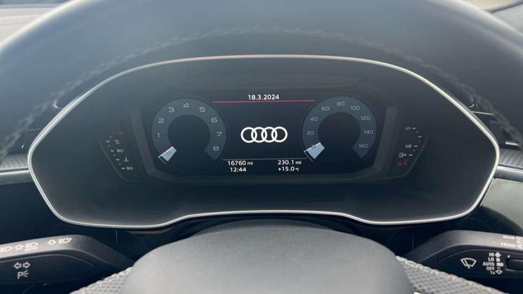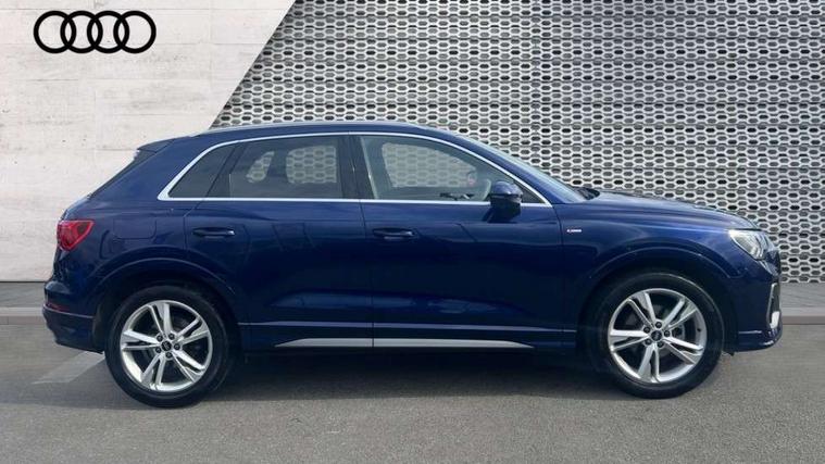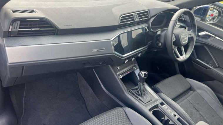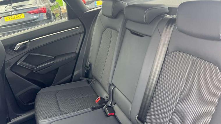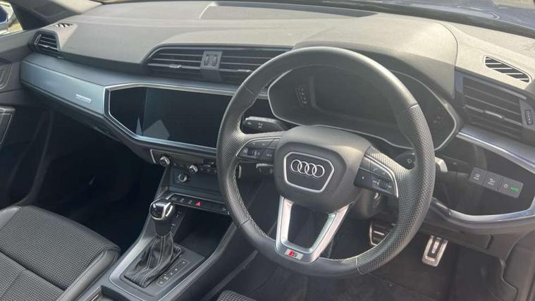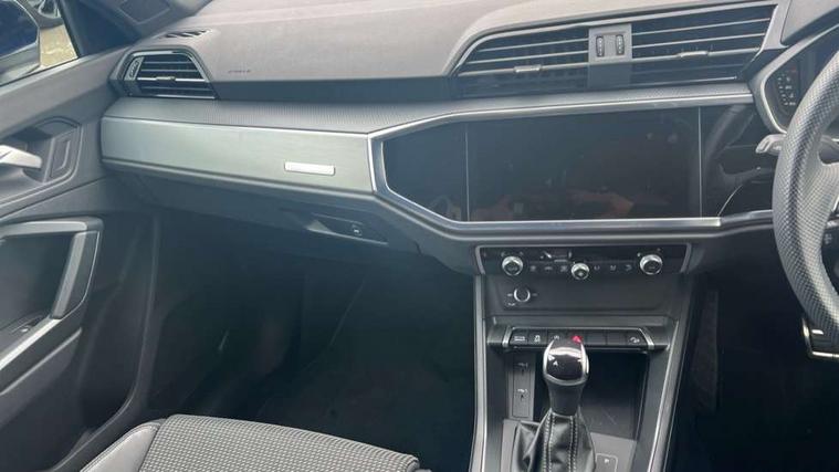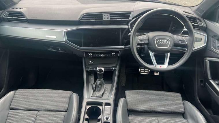 Amazon alexa Integration, Audi drive select, Audi lane departure warning, Audi smartphone interface includes wireless Apple carplay/Android Auto, Audi Virtual Cockpit - 10.25" display, Bluetooth interface, Camera based traffic sign recognition, Legal emergency call, MMI Navigation Plus with high resolution 10.1 inch touchscreen colour display, Power operated tailgate, Progressive steering, Service interval indicator, Start stop system with recuperation, Voice control system with natural language interaction, Sports suspension, 2 USB-C ports with charge and data functions, 6 passive loudspeakers, DAB digital radio module, Acoustic windscreen, Aluminium roof rails, Aluminium window trim, Anthracite black radiator grille, Auto dimming frameless rear view mirror, Body colour front spoiler blade, Body coloured bumpers, Electrically folding, adjustable and heated door mirrors with integrated LED side indicators and kerb view function for passenger side, Front and rear electric windows, Front fog lights, Front side air inlets in matt platinum grey, Grille vertical bars in aluminium silver/Matt, High gloss black finish B and C pillars, LED Dynamic rear indicators, LED headlights with LED daytime running lights, LED rear lights, LED third brake light, Privacy glass dark tinted rear and rear-side windows (from B-pillar backwards), Rain and light sensors, Rear diffuser grille in grained matt black, Rear diffuser strip in matt anthracite black, Rear side wing doors, Rear wiper, S line badges on front wings, S Line front and rear bumpers, Side skirt insert in matt Platinium grey, Variable front intermittent wipers, 12V socket in rear centre console, 3 seat bench in 2nd row, 3 spoke leather multifunction steering wheel features S badging and grips in perforated leather with contrast stitching, 40:20:40 folding with manual adjustment for 60:40 forwards/backwards position and backrest angle, Adjustable rear seat bench/backrest with centre armrest and cupholder, Black cloth headlining, Dual zone electronic climate control, Front and rear black floor mats with contrast stitching in rock grey, Front and rear headrests, Front and rear roof module including reading lights, Front centre armrest, Glove compartment lighting, Height and reach adjustable steering wheel, Illuminated door sill trims with S logo, ISOFIX child seat mounting for front passenger with airbag deactivation and outer rear seat including top tether attachment point for outer rear seats, Luggage compartment light, Manual front seats with height adjustment, Perforated leather gearknob, Single front passenger seat, Stainless steel luggage compartment sill finisher, Stainless steel pedals, Ambient lighting pack - Q3, Non smoking pack - Q3, 3x3 point rear seatbelts, 6 airbags - Driver, front passenger, curtain and side windows, Audi pre-sense front with pedestrain and cyclist recognition, Electrically operated child locks on rear doors, Electromechanical parking brake, Electronic stabilisation control including ABS, ASR and EDL, Front seatbelt reminder, Hill descent control, Hill hold assist, Pre sense basic, Seatbelt monitoring, Tyre pressure warning, Warning triangle and first aid kit, Anti theft alarm, Anti theft wheel bolts, Immobiliser, Remote central locking, Aluminium look interior elements, Dark matt brushed aluminium inlay, Detail dashboard around MMI touch colour display in glass look, black with surround in aluminium look, Leatherette door armrest,
