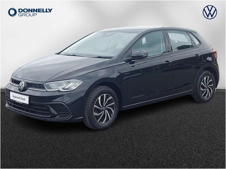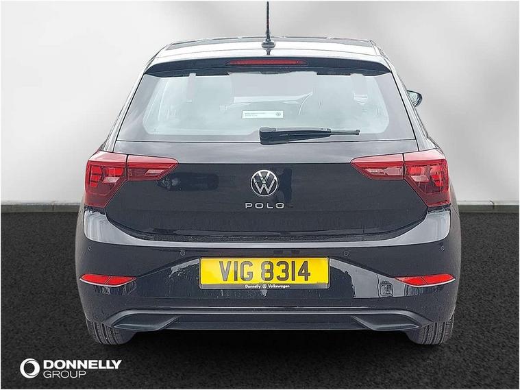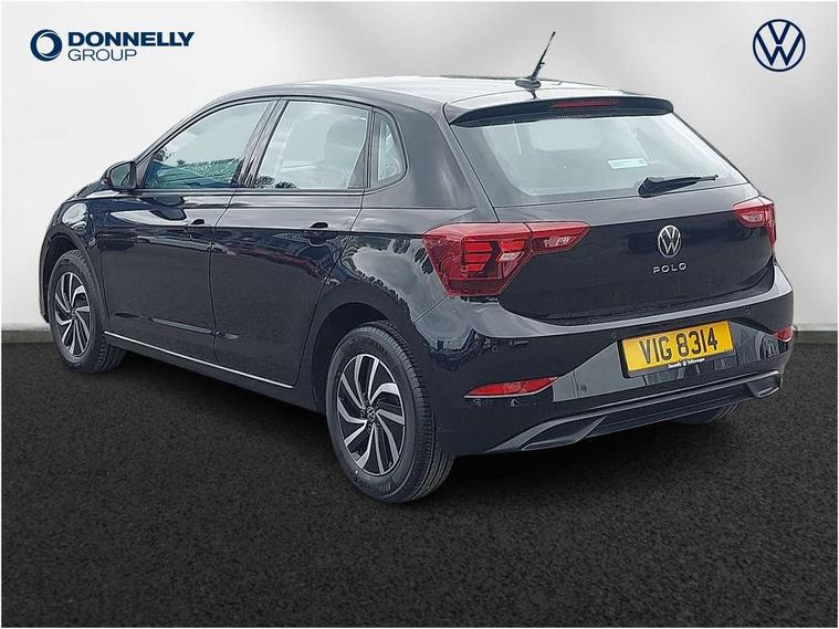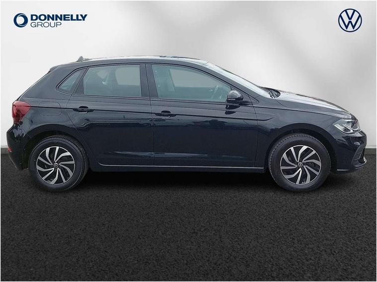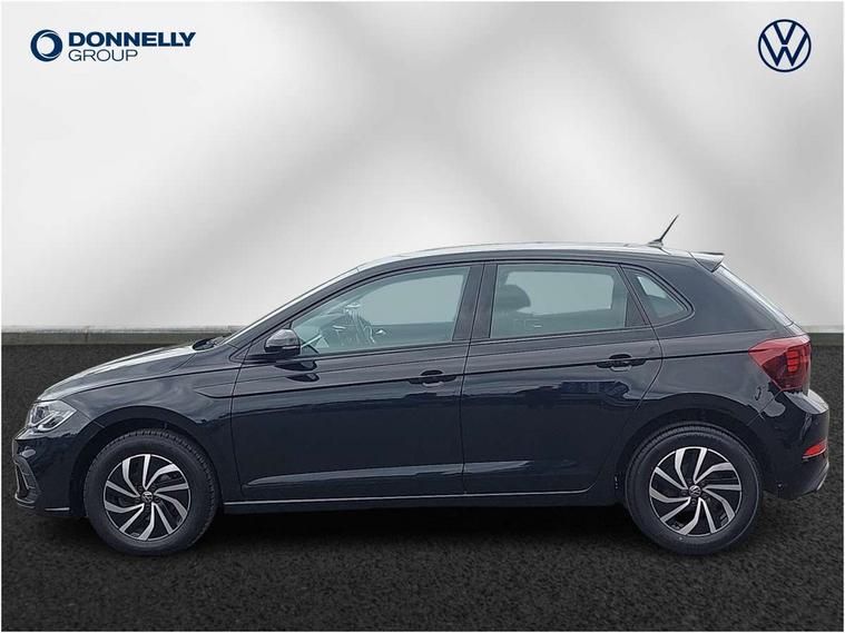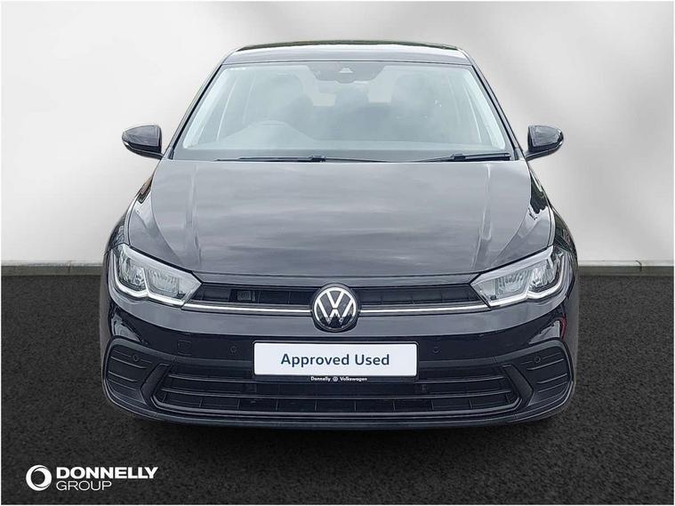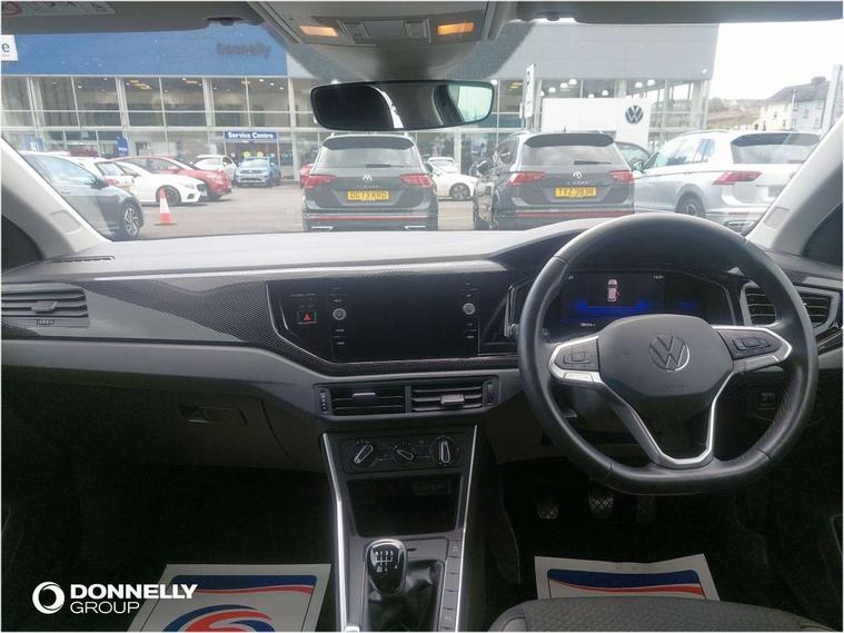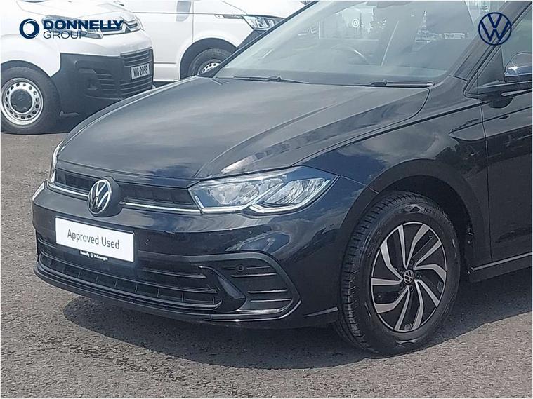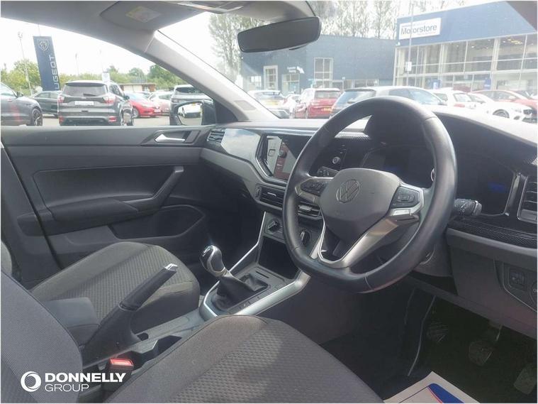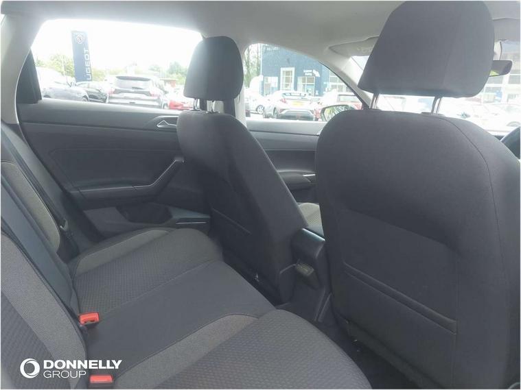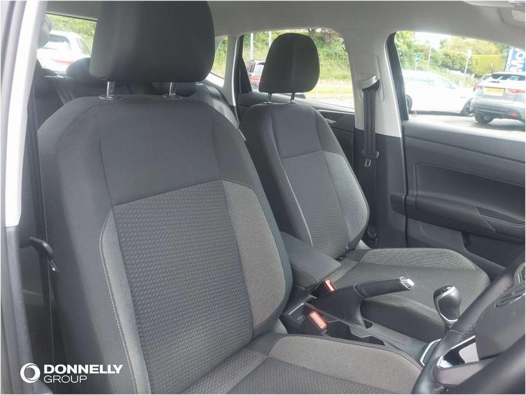 Adaptive cruise control without follow-to-stop and speed limiter, Bluetooth mobile phone interface, Driver alert system, Emergency call service, Front assist system, Power assisted speed sensitive steering, Preparation for We connect and We connect plus, Speedo and rev counter, electronic odometer, trip, service interval display and fuel gauge, Standard rear axle, Travel Assist - Lane keeping system and traffic jam assist, Travel assist including emergency assist, Trip computer, Warning signal and warning light for front and rear seatbelts not fastened, Washer fluid level indicator, Wireless app connect, Front wheel drive, Rear shock absorpion, Start-stop system with battery regeneration (recuperation - energy recovery during braking), DAB Digital radio, Diversity antenna for FM reception, Automatic dimming interior rear view mirror, Body colour bumpers, Body colour door handles, Body colour door mirrors, Electric front windows, Heat insulating darkened glass in side and rear windows, Heat insulating glass windscreen, Power folding adjustable/heated exterior mirrors and front passenger exterior mirror lowering function, Rain sensor, Rear electric windows, Rear fog light, Rear windscreen washer and wiper with interval delay, Third brake light, 12V power socket in centre console, 2 front and 2 rear reading lights, 2 USB-C ports in the front, 2 USB-C charging sockets on the center console in the rear, 3 rear head restraints, 60/40 split folding rear seat and rear seat bench not split, Ceramique headliner, Chrome plated radiator grille inserts, air vent surrounds and light switch surrounds, Door and side trim panel, Driver and front passenger seat height adjustment, Driver/passenger sunvisors with illuminated vanity mirrors, Front centre armrest, Front seat backrest storage pockets, Front standard seats, Handbrake lever handle in leather, Hartley/Thomas cloth upholstery, Isofix child seat preparation easy-fit (for two outer rear seats, and front passenger seat) compatible with I-size, Leather trimmed gear knob, Luggage compartment cover, Luggage compartment floor, Luggage compartment lighting, Multifunction steering wheel, Standard pedal cluster, Light and vision pack - Polo, 3 point height adj front seatbelts + pretensioners, 3x3 point rear seatbelts, ABS, Driver and front passenger airbag with front passenger airbag deactivation, Drivers and front passengers safety optimised head restraints, ESC (Electronic stability control) + EDL (Electronic Differntial lock) and ASR (Traction control), Extended and predictive pedestrian/ cyclist protection, Front curtain and side airbags with center airbag, Front disc brakes, Hill hold control, Rear drum brakes, Single tone horn, Tyre pressure loss indicator, Alarm with interior protection, Anti-theft alarm system with interior monitoring, backup horn, and towing protection, Anti-theft wheel bolts, Electronic engine immobiliser, Lava stone black gloss/matt decorative inserts in dash and front door panels, Low rolling resistance tyres,