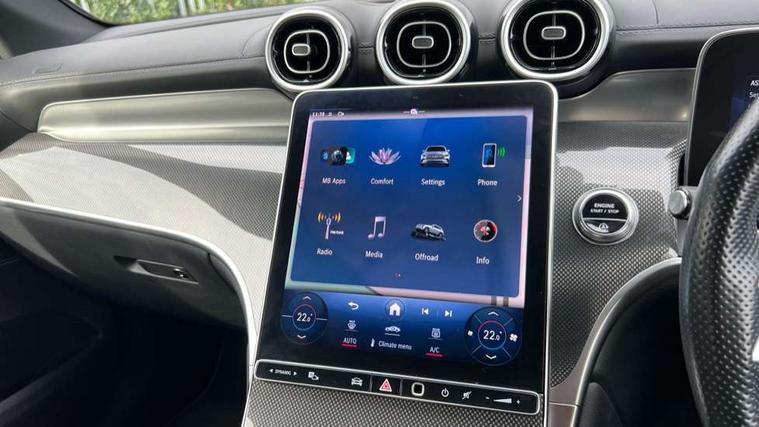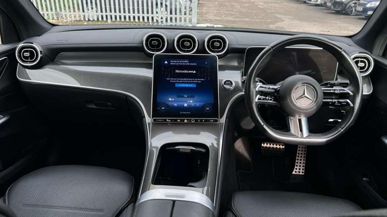 11.9" high resolution multimedia colour display, 12.3" Digital individually configurable instrument display, Acoustic presence indicator, Active lane keeping assist, Attention assist, Blind spot assist, Collision prevention assist plus, Cruise control with speedtronic variable speed limiter, Direct steer speed sensitive steering, DYNAMIC SELECT with a choice of driving modes (ECO, Comfort, Sport, Sport+ and Individual), Easy pack automatic powered tailgate, eCall emergency call system, ECO start/stop function, Fingerprint scanner, Fluorescent jacket for driver, Hard disk navigation, Instrument display in miles with English lettering, MBUX augmented reality for navigation, MBUX navigation premium, MBUX voice control activated by keywords "Hey Mercedes", Mercedes me connect, Outside temperature display, Remote boot release, Remote services, Road sign recognition system, Service indicator (ASSYST), Smartphone integration, Status display for rear seat belts in instrument cluster, Traffic sign assist, Wireless charging, 48V Mild hybrid technology, 4MATIC permanent four wheel drive, 62 litre fuel tank, 9G TRONIC plus automatic transmission, Diesel particulate filter, Sport suspension, DAB digital radio tuner, MBUX extended functions, Mercedes benz sound system, USB ports x 2 USB C ports in centre console, Adaptive high beam assist plus, Aluminium look running boards with rubber studs, Aluminium roof rails, AMG bodystyling front apron, rear apron and side skirts, AMG Line exterior, Auto headlights, Body colour bumpers, Digital light LED headlights, Electrically adjustable door mirrors, Front and rear electric windows, Headlight washers, Heat and noise insulating acoustic glass, Heat insulating dark tinted glass, Heated door mirrors, Heated rear window, Integrated LED daytime running lights, LED indicator lights, LED rear fog lights, LED tail lamp, LED third brake light, Radiator grille with Mercedes Benz pattern and integreated Mercedes star and louvre in dark grey matt with chrome inlay and black frame, Rain sensor windscreen wipers, Rear side wing doors, Rear wiper, Two chrome plated tailpipe trim elements, Welcome and follow-me home light functionality, Wider wheel arch for AMG wheels, 3 seat bench in 2nd row, 40:20:40 split folding rear seats, Ambient light in 64 colour with dynamic multicolour LED interior lightings, AMG line interior, AMG sports seats, Automatic child seat recognition sensor, Black fabric roof lining, Black floor mats with AMG lettering, Double cup holder in centre console, Easy-pack removable load compartment cover, Electrically height/reach adjustable steering column, Front centre armrest with stowage compartment, Front head restraints, Galvanised steering wheel gearshift paddles, Heated front seats, Illuminated door sill panels with Mercedes Benz lettering, Illuminated glove compartment, Instrument panel and beltlines in Artico man made leather in nappa look, Multi function steering wheel with audio and onboard settings control, Multifunction sports steering wheel in nappa leather, Rear centre headrest, Rear head restraints, Rear top tether child seat ISOFIX attachment, Single front passenger seat, Sports pedals with stainless steel surfaces and rubber studs, Steering wheel with audio and onboard settings control, Sun visors, THERMATIC 2 zone automatic climate control, Anti theft protection package - GLC, Boot comfort package - GLC, Exterior chrome package - GLC, Interior chrome package - GLC, Interior lighting pack - GLC, Memory pack - GLC, Mirror pack - GLC, Parking package with 360 degree camera - GLC, Seat comfort package - GLC, Stowage space package - GLC, USB Package - GLC, 3 rear 3 point seatbelts, Active braking assist, Anti-lock braking system (ABS), ASR traction control, Automatic front passenger airbag deactivation, Black seat belts, Brake calipers with Mercedes-Benz lettering + perforated brake discs, Braking system with larger brake discs on the front axle, Child proof door locks, Dual-stage airbags - driver and front passenger, driver knee bag and window bags for driver, front passenger and rear passengers, Electronic parking brake, Electronic stability programme (ESP) with curve dynamic assist and cross wind assist, Front and rear seatbelt reminder, Front seatbelt pretensioners, Hill start assist, Transparent Bonnet, Tyre pressure monitoring system, 360 degree guard vehicle protection plus, Anti theft alarm system with preinstallation for collision detection, Dashcam, Immobiliser, Keyless Go entry and starting function, Centre console in metal structure finish, Metal structure trim, 20" AMG 5 spoke aerodynamically optimised light alloy wheels in painted black with high sheen finish, Summer tyres, TIREFIT with tyre inflation compressor,
