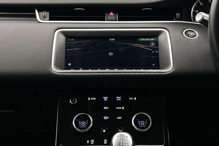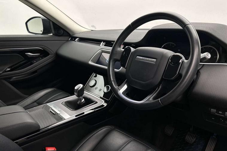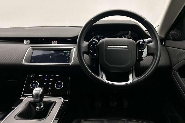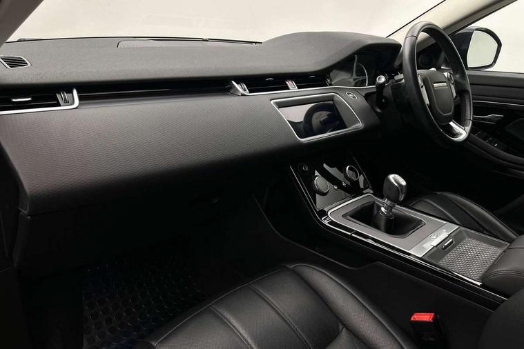 10" touch screen pro, Android Auto, Apple car play, Bluetooth connectivity, Brake pad wear indicator warning light, Cruise control + speed limiter, Driver condition monitor, Electronic power assisted steering (EPAS), InControl remote, Land Rover InControl apps, Lane keep assist, Navigation pro system, Pro services and wifi hotspot, Push button starter, Smart settings, Traffic sign recognition with adaptive speed limiter, Voice control system, Passive suspension, Digital Audio Broadcast radio-DAB, Steering wheel mounted controls, Electric windows with one touch open/close and anti trap, Evoque badge, Flush deployable exterior door handles, Heated rear window with timer, Heated washer jets, Heated windscreen, Rain sensing windscreen wipers, Rear fog lights, Tailgate spoiler, 40:20:40 split folding rear seats, Isofix system on outer rear seats, Overhead lighting console, Overhead stowage for sunglasses, Passive front head restraints, Rear air vents, Rear centre headrest, Sunvisors with illuminated vanity mirrors, Twin front cupholders with cover, Twin sliding front centre armrest, 3 rear 3 point seatbelts, Anti-lock braking system (ABS), Customer configurable autolock, DSC - Dynamic Stability Control, Electronic brake force distribution, Electronic parking brake, Electronic traction control, Emergency braking, Front and rear seatbelt reminder, Hill launch assist, Power operated child locks, Roll stability control, Six airbags - Driver and passenger airbags/driver knee airbag/front side airbag and curtain airbags, Tyre pressure monitoring system, Alarm, Immobiliser, Intrusion sensor, Locking wheel nuts,