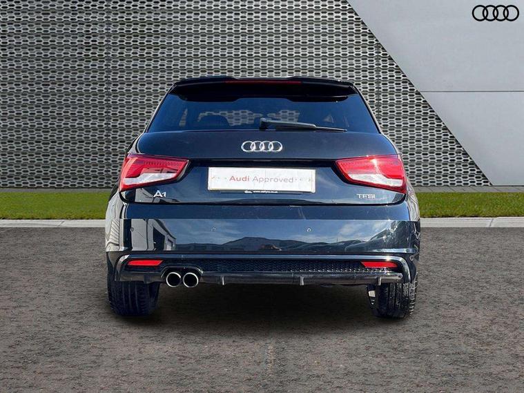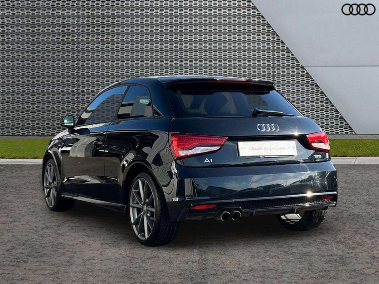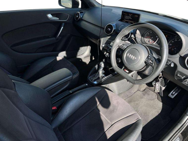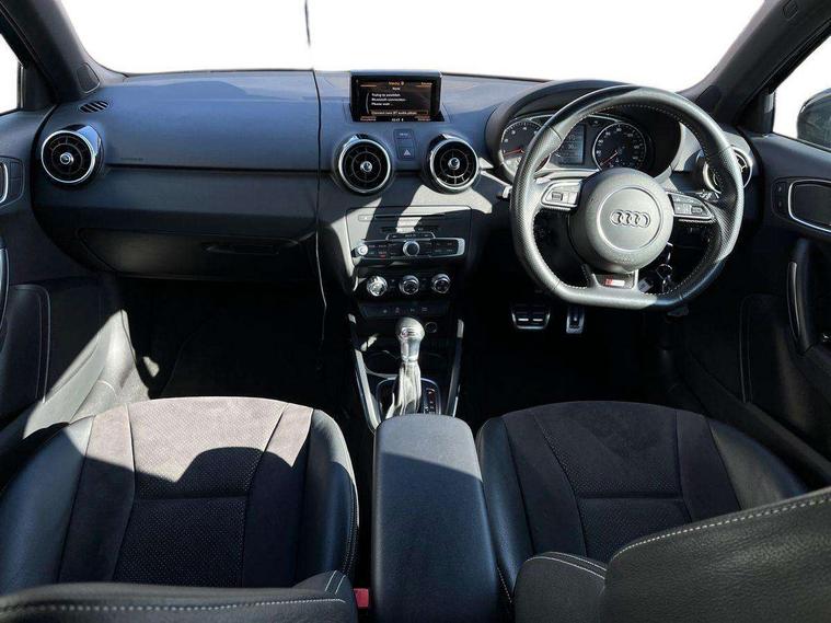 Aluminium trim, High gloss black air vent sleeves, High gloss black centre console, High-gloss black styling pack - A1, Tyre repair kit, Locking wheel bolts, Remote central locking with 2 remote folding keys, Thatcham category 1 alarm + immobiliser, Additional SD card reader, Audi music interface, Bluetooth audio streaming, DAB Digital radio, ABS/EBD, Brake assist function, Driver and passenger side airbags, Driver/Front Passenger airbags, EDL, ESP with ASR, First aid kit, Front and rear seatbelt reminder, Front passenger airbag deactivation, Head airbags, Height adjustable front seatbelts, Rear three point seatbelts x 2, Tyre pressure monitor, Warning triangle, Adaptive brake lights, Body coloured bumpers, Body coloured door mirrors, Electric adjustable door mirrors, Electric front windows, Front fog lights, Heat insulating glass, Heated door mirrors, Heated rear windscreen, Privacy glass, Rain and light sensors, Rear diffuser, Rear wiper, Roof spoiler, S Line body styling, Twin oval high gloss black exhaust tail pipes, Xenon plus headlights including automatic headlights, LED daytime running lights, LED rear lights, dynamic range control and headlight washers, 12V Accessory socket in centre console, 3 spoke flat bottom multi-function leather steering wheel including paddle shift, Adjustable rear head restraints, Alcantara/leather upholstery, Black cloth headlining, Cupholders in centre console, Door sills trims with aluminium inlays, Electronic climate control (ECC), Front floor mats, Front head restraints, Front seats - 'Easy Entry', Front sports seats, Height adjustable front seats, Isofix attachments on rear seats, Jack and tool kit, Leather gear knob, Leather handbrake, Lumbar adjustment for front seats, Rake/reach adjustable steering wheel, Split folding rear seats, Stainless steel pedals, Audi drive select, Cruise control, Driver's information system, Electro-mechanical PAS, Low washer fluid indicator, Service interval indicator, Voice control system,