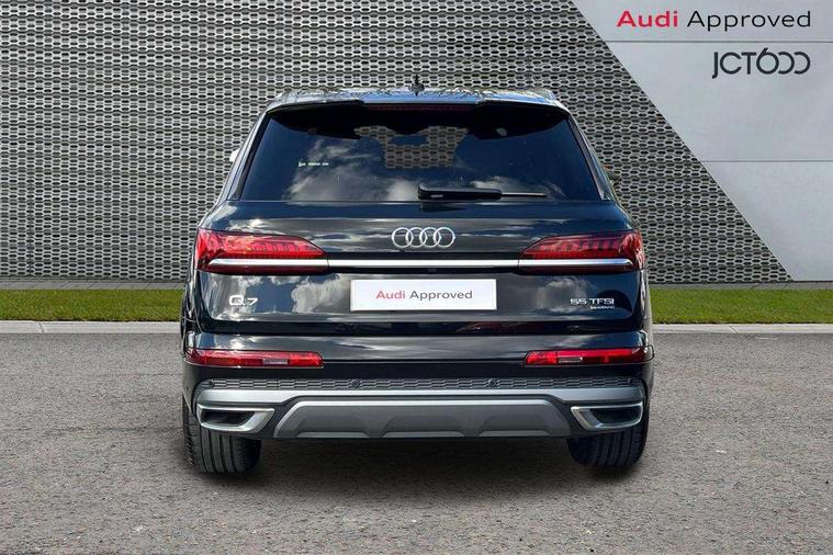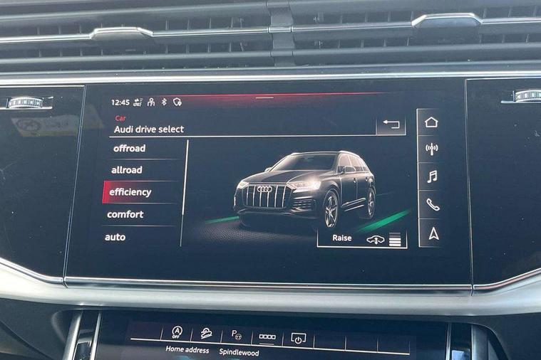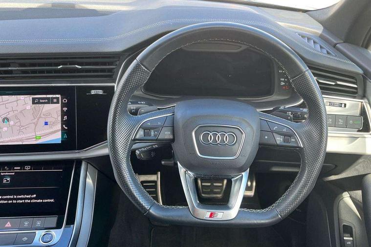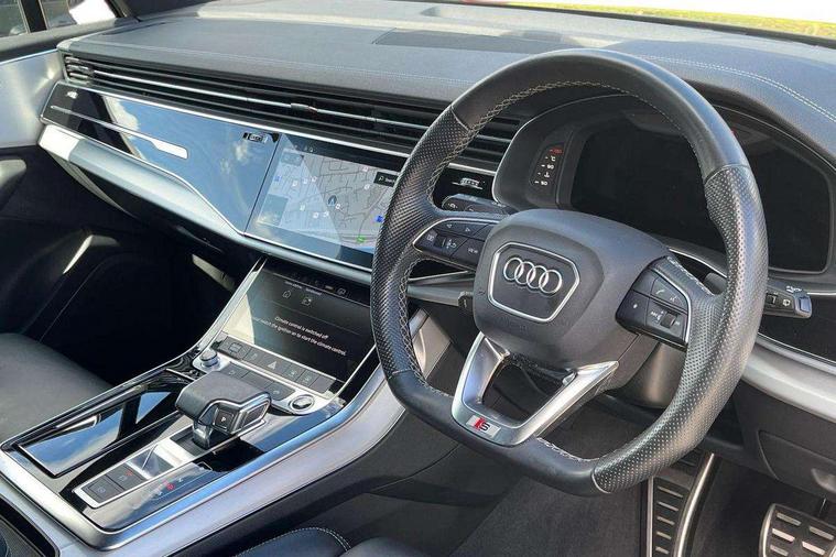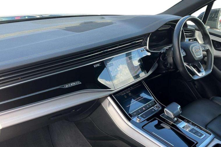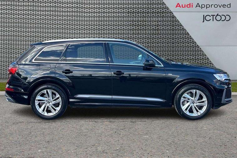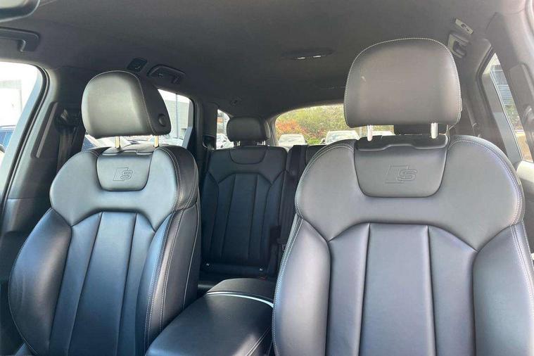 Audi connect safety and service (e-call), Audi connect with Amazon Alexa Integration, Audi drive select (Auto, Comfort, Dynamic, Efficiency, Individual, Off-road and All road), Audi smartphone interface includes wireless Apple carplay/Android Auto, Bluetooth interface, Camera based traffic sign recognition, Electromechanical steering, MMI navigation plus with MMI touch screens includes 10.1" and 8.6" screens with haptic feedback, Natural voice recognition, Parking system plus with 360 degree display (front, rear and side sensors) - acoustic and visual park assist system, Power operated tailgate, Rear view camera, Start/stop system, 48V Mild hybrid technology, 85 litre fuel tank, Adaptive air suspension, Quattro all wheel drive with self locking centre differential, Audi music interface - front 2 USB-C ports with charger and data functions, Audi sound system with 6 channel amplifier, 180 watt amplifying capacity and 10 loudspeakers including subwoofer, DAB digital radio module, 3rd brake light, Aluminium roof rails, Aluminium window trim, Audi matrix LED headlights with dynamic front and rear indicators, Auto dimming frameless rear view mirror, Body coloured door mirrors, Electrically adj heated/folding + automatically dimming exterior mirrors with memory + automatic kerb side function for passenger side exterior mirror, Heat insulating glass in windshield, Integrated LED indications in door mirrors, LED daytime running lights, LED rear tail lights, Privacy glass - dark tinted rear and rear side windows from B-pillar backwards, Rear side wing doors, Rear wiper, S Line badge on wings, S line bumpers in full body colour paint finish, S line roof spoiler, S line styling side ventilation grilles and side skirts, 2 seat bench in 3rd row, 2 zone automatic climate control, 3 seat bench in 2nd row, 7 seat layout with ISOFIX points for the front passenger seat and rear passenger seat, Black cloth headlining, Comfort front centre armrest, Electric adjustable front seat with 4 way lumbar support, driver memory functionality, Folding rear seats, Front head restraints, Front/rear floor mats, Heated front seats, Illuminated door sill trims with S logo, LED interior ambient lighting, Luggage compartment cover, Luggage compartment sill protection in stainless steel, Rear head restraints, Single front passenger seat, Stainless steel pedals, Sunvisors with illuminated vanity mirrors, Tool kit, 3 point seatbelts on all rear seats, Audi pre sense front, Child locks on rear doors, Driver and front passenger, front side and curtain airbags, Electromechanical parking brake, Electronic Stabilisation Control (ESC) including ABS, ASR and EDL, Extended pedestrian protection measures, Hill hold assist, Seatbelt monitoring, Tyre pressure loss indicator, Warning triangle and first aid kit, Anti theft alarm, Anti-theft wheel bolts and wheel loosening detection, Keyless Go, Remote central locking, Darkened matt brushed aluminium inlays, Tyre repair kit,