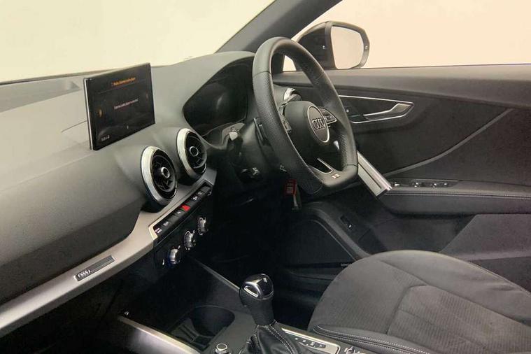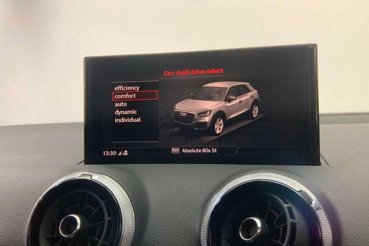 Audi connect navigation and infotainment includes innovative services, Audi connect remote and control connects your vehicle to your smartphone, Audi drive select - Power steering assistance + engine + gearshift, Audi drive select with efficiency, Audi smartphone interface, Audi virtual cockpit, Automatic start/stop system with recuperation, Bluetooth interface includes bluetooth audio streaming, Cruise control, E-call, MMI navigation plus with MMI touch, Power operated tailgate, Progressive steering, Rear parking sensors, 2 x SDXC card reader, 6 passive loudspeakers, DAB Digital radio, DVD Drive, Auto dimming rear view mirror, Black window trims, Bumper in full body colour paint finish, Electrically adjustable, folding, auto dimming and heated door mirrors with integrated LED side indicators, Front windscreen with grey tinted sunband, LED daytime running lights, LED headlights with LED rear lights, LED third brake light, Privacy glass - dark tinted rear and rear side windows from B-pillar backwards, Rear side wing doors, Rear wiper, Variable front intermittent wipers, Wheel arch trims in manhattan grey, 12v socket in front, 3 seat bench in 2nd row, 3 spoke flat bottomed multi-function leather sport steering wheel with gear shift paddles, 4-way electric lumbar support for front seats including seat height adjustment for both front seat, 60/40 split folding rear seat bench, Black cloth headlining, Front and rear head restraints, Front centre armrest, Front/rear floor mats, Height/reach adjust steering wheel, Illuminated door sill trims with S logo, ISOFIX child seat mounting in front passenger and rear outer seats, Single front passenger seat, Stainless steel pedals, Tool kit, Black styling pack - Q2, 3x3 point rear seatbelts, 6 airbags - Front, curtain and front side airbags, Electromechanical parking brake, Electronic stabilisation control including ABS, ASR and EDL, Front passenger airbag deactivation, Hill hold assist, Pre-sense front with pedestrian recognition, Seatbelt monitoring, Tyre pressure warning light, Warning triangle and first aid kit, Anti theft alarm, Anti theft wheel bolts, Electronically operated child locks, Remote central door locking, Aluminium interior element, Matt brushed aluminium trim inlays,