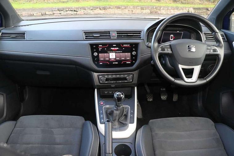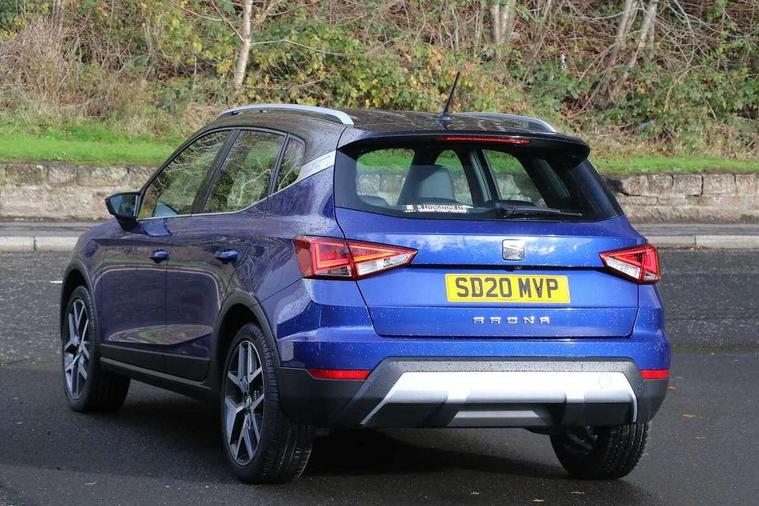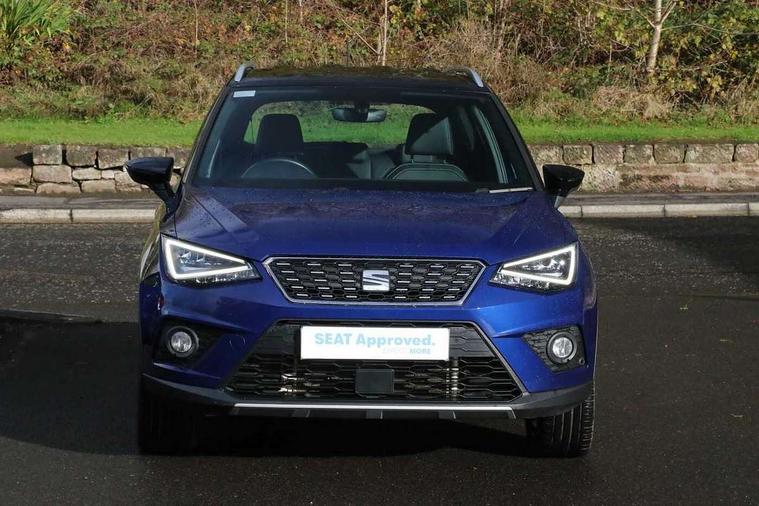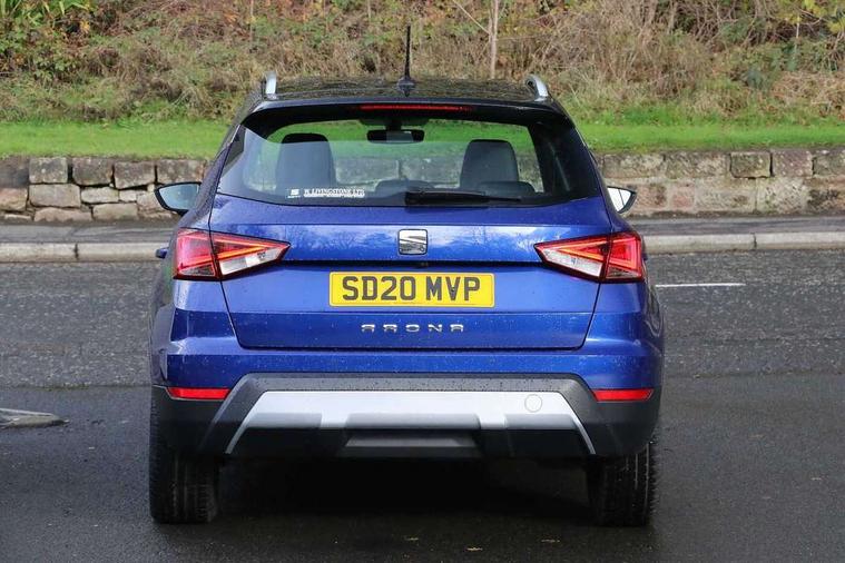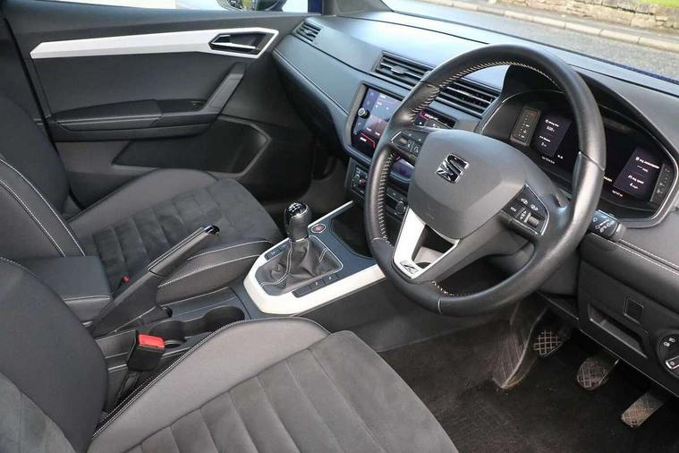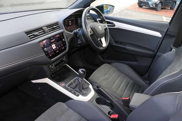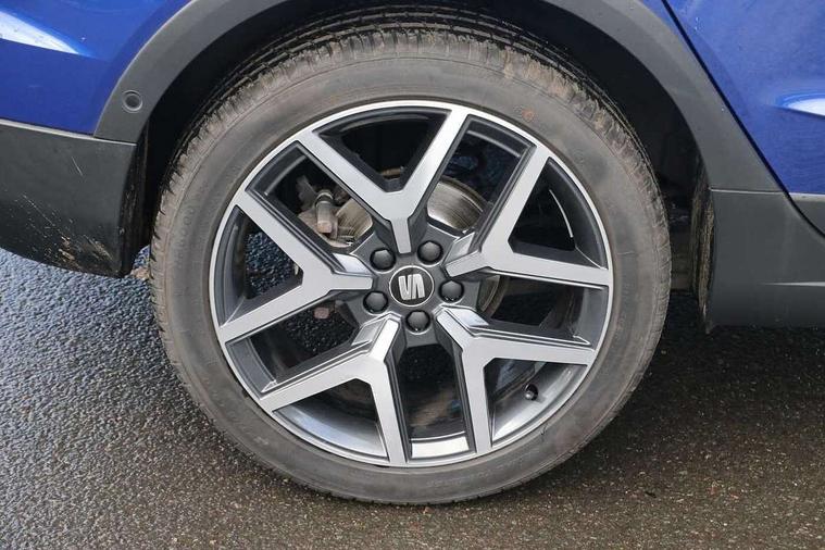 'Lights On' Reminder warning buzzer, Adaptive cruise control, Blind spot detection and rear cross traffic alert, Digital clock, Digital cockpit, Electric speed sensitive power steering, Front parking sensor, Full Link Smartphone Integration with Mirror Link, Apple Car Play, Google Android Auto with USB Type C cable for Apple and Android compatibility, Low fuel warning light, Outside temperature display, Park assist system, Rear cross traffic alert, Rear parking sensor, Rear view camera, RPM counter, SEAT Drive profile, Trip computer, Comfort suspension, 6 speakers, Bluetooth interface for hands free and audio streaming, DAB digital radio and AM/FM radio, Steering wheel mounted audio controls, Anti theft roof antenna, Auto dimming interior rear view mirror, Automatic activation of hazard warning lights, Automatic headlights, Body coloured bumpers, Body coloured door handle inserts, Chrome grille bars, Chrome grille surround, Chrome roof rails, Chrome window trim, Coming/leaving home lighting function, Electric front/rear windows with one touch/auto up/down, Electrically adjustable, heated and folding door mirrors, Front grille hot stamping, Full LED headlights dipped and mainbeam + front and rear fog lights, Hidden exhaust pipe, Ice metal door side panels, LED daytime running lights, LED rear tail lights and licence plate lights, Rain sensing wipers, Rear window wash/wipe, Roof colour door mirrors, Visible VIN plate, Windshield wiper with intermittent control and potentiometer, 2 cupholders, 60/40 split folding rear seat, Black interior roof, Double boot floor, Driver sunvisor with covered mirror + card holder, Dual zone climate control, Dust/pollen filter, Front courtesy light with front reading lights, Front seat back storage pockets, Gear shift indicator, Height adjustable front seats, Height/reach adjustable steering column, Illuminated boot, Instrument lighting with brightness control, Interior footwell lighting, ISOFIX points in outer rear seats with top tether anchorage points, Leather steering wheel/gear knob/handbrake, Microsuede cloth upholstery, Multi-colour ambient interior lighting, Passenger sunvisor with vanity mirror, Storage net on centre console, Two front and three rear height adjustable headrests, Connectivity pack plus - Arona, Interior chrome pack - Arona, Storage pack - Arona, Winter pack - Arona, 3 point seatbelts on all rear seats, ABS, Active front headrests, Child locks on rear doors, Driver and front passenger airbags with front passenger airbag de activation, front side and curtain airbags, Electronic stability control, Emergency Brake Assist (EBA) and front assist, Front and rear seatbelt reminder, Hill hold control, Multi-Collision braking, Tiredness recognition system, Traction control, Tyre pressure monitoring system, 2 folding remote keys with window open/close function, Alarm with back-up horn, Electronic engine immobiliser, KESSY Keyless entry and go, Locking wheel bolts, Remote central locking + deadlocks, Tow away protection, Interior chrome line trim, Leatherette dashboard, 18" Performance alloy wheels,