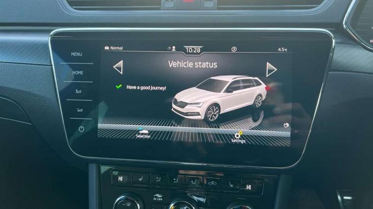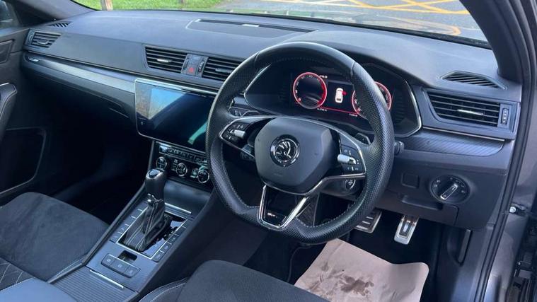 Bluetooth system, CareConnect and Emergency Call, Columbus HDD satellite 3D map navigation with 9.2" colour touch screen, web radio, integrated Wi-Fi, Driver fatigue sensor, Front assist with pedestrian protection, Progressive dynamic steering, Stop/start engine system and energy recovery, Virtual cockpit, Voice control system, Wireless smartlink apple carplay, SmartLink+ android auto, XDS+, 2 USB ports, Bolero radio with 8" touchscreen display, DAB Digital radio, 3rd brake light, Aero front windscreen wipers with intermittent function, Auto dimming rear view mirror, Black rear badge, Body colour door handles, Cornering front fog lights, Electrically adjustable heated and folding door mirrors with memory function, Front and rear electric windows, Full matrix LED headlights with AFS LED DRL integrated with headlight washer LED rear lights(High function), dynamic indicators and lighting animation, Gloss black exterior door mirrors with sports styling including front grill, side strip and window surrounds, Gloss black grille surround with gloss black rib elements, Gloss black roof rails, Gloss black strip between rear lights, Light assistant (coming/leaving home/tunnel light), Privacy glass, Rain sensor, Rear exhaust diffuser styling elements, Rear side wing doors, Rear windscreen wiper, Sport Line badging, 12v power point in centre console, 3 seat bench in 2nd row, Black roof headlining, Black textile floor mats, Carbon optic interior elements, Electric auxiliary air heater, Front and rear footwell illumination, Front armrest with storage box, Height adjustable front and rear head restraints, Ice scraper, Illuminated and cooled glovebox, Interior lights with control switches, Isofix child seat fittings on outer rear seats, LED front and rear reading lights, Microsuede/leather upholstery with silver diamond stitching sports seats, One umbrella compartments in driver door with one umbrella in drivers door, Overhead glasses storage compartment, Rear centre armrest with cupholders, Single front passenger seat, Split folding rear seats, Storage compartment with cover in luggage compartment side panels, Ticket holder on A Pillar, LED package plus - Superb, 3 rear seatbelts, 7 airbags - Front, front side, curtain, driver's knee airbag with front passenger deactivation switch, Driver and passenger seatbelts with warning light, Electronic parking brake, ESC including ABS, EBV, MSR, ASR, EDS, HBA, DSR, RBS, CBC, multi-collision brake (MKB) and Auto hold, Hill start assist, Power operated child lock in rear doors, Tyre pressure monitor, Alarm with interior monitoring tilt sensor and back up horn, Electronic engine immobiliser, Keyless entry and start/stop, Remote central locking with SAFE system, Third remote key,
