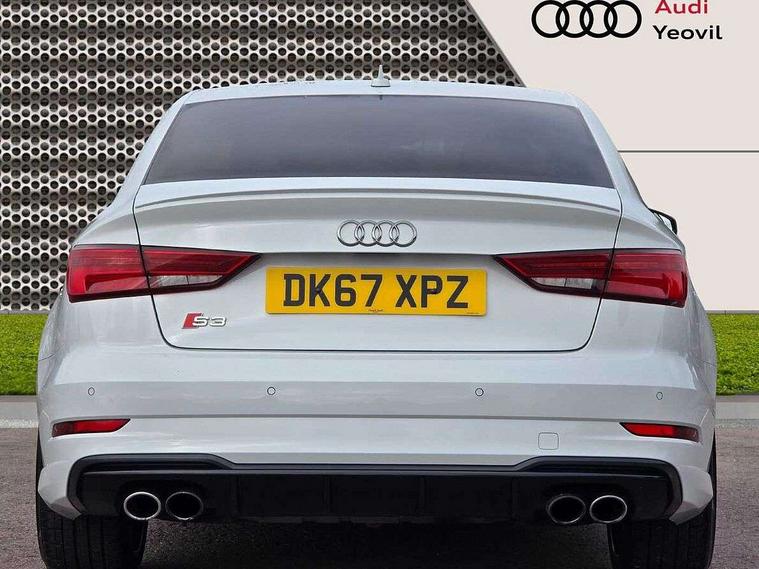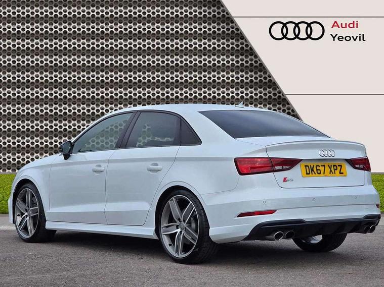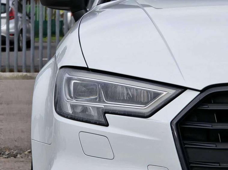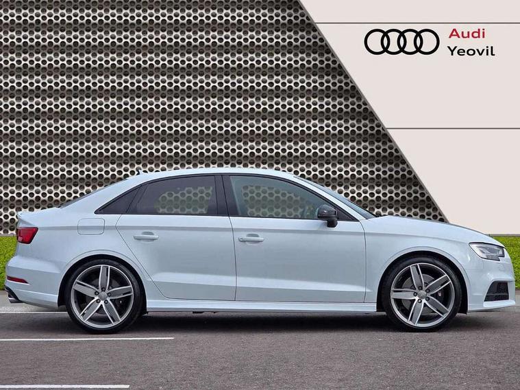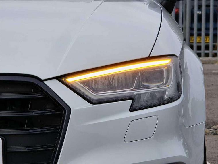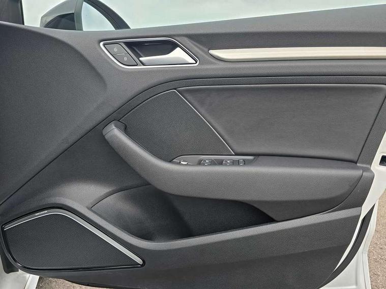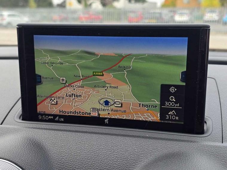 Audi connect, Audi smartphone interface, Bluetooth interface, Colour driver's information system display, Progressive power assisted steering, SD card based satellite navigation system, Service interval indicator, Voice control system, Audi magnetic ride, S sports suspension, 2 USB ports, Audi music interface, Aux-in socket, Bang + Olufsen advanced sound system, CD player, DAB Digital radio, MMI radio plus with 7" colour MMI screen and MMI controller, Automatic lights and wipers, Black door mirrors, Black rear diffuser, Body colour roof spoiler, Electric operated/heated door mirrors, Front and rear electric windows, Headlight washers, Heated rear window, Heated windscreen washer jets, LED daytime running lights, Privacy glass, Twin oval exhaust tailpipes with chrome finish, 3 adjustable rear headrests, 3 spoke flat bottom multi-function leather steering wheel including paddle shift, 4 lashing points to secure luggage, Adjustable front armrest, Cloth headlining, Driver/passenger sunvisors, Dual zone electronic climate control, Front and rear interior lights with delay, Front/rear floor mats, Heated front seats, Height/depth adjustable steering column, Illuminated door sills, Illuminated glovebox, ISOFIX child seat preparation+airbag deactivation, Jack and tool kit, Stainless steel pedals, Storage compartment in centre console, Storage compartments in doors, Storage under driver's seat, Black styling pack - A3/S3, LED interior light pack - A3/RS3, Non smoking pack - A3, Storage and luggage pack - A3/RS3, 3 point seatbelts on all seats, ABS/EBD, ASR, Curtain airbags, Driver and passenger side airbags, Driver/Front Passenger airbags, Drivers knee airbag, EDL, Electromechanical parking brake, ESC - Electronic Stability Control + traction control, Front passenger airbag deactivation, Seatbelt warning, Tyre pressure warning, Warning triangle and first aid kit, Anti theft alarm, Anti-theft wheel bolts, Immobiliser, Remote control central locking, Aluminium air vent surrounds, Aluminium trim elements,