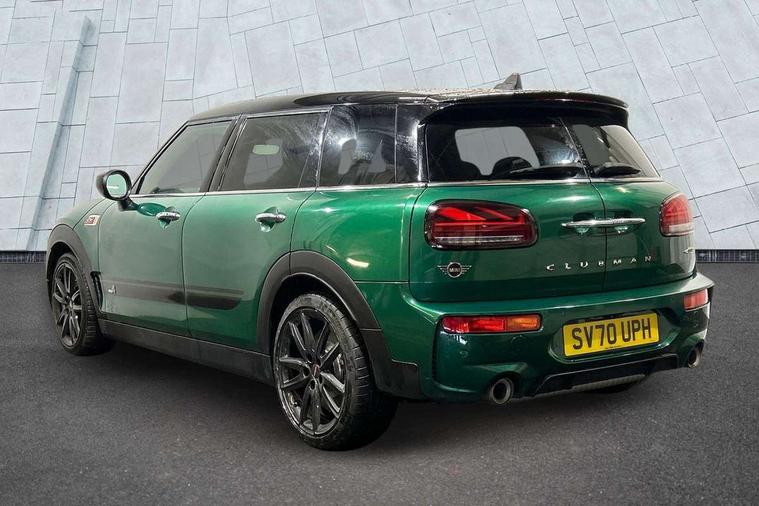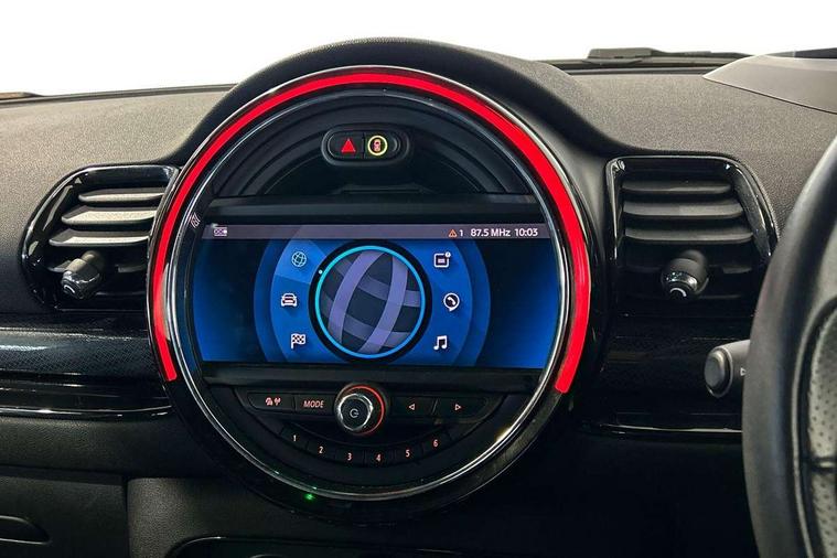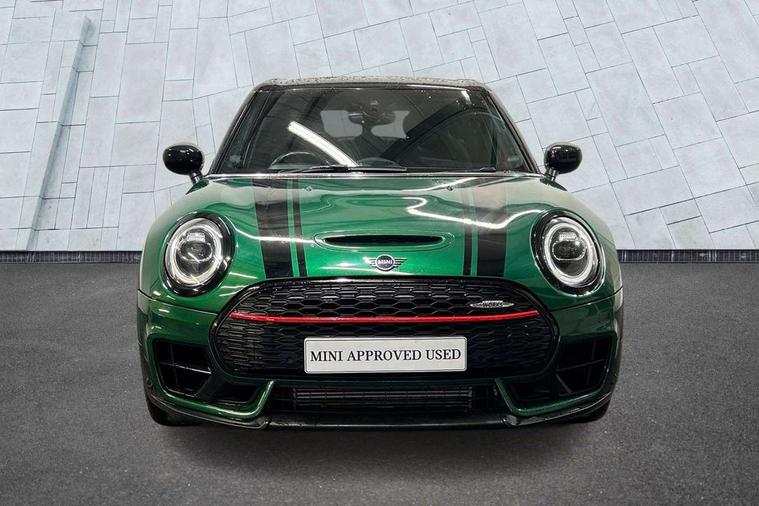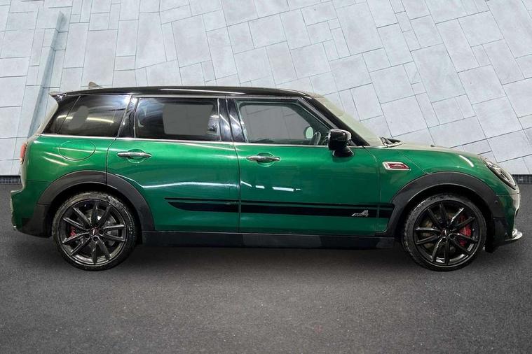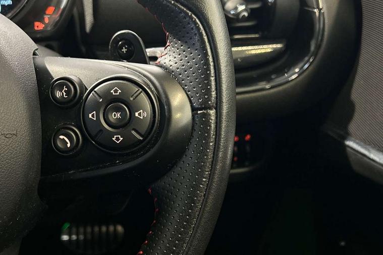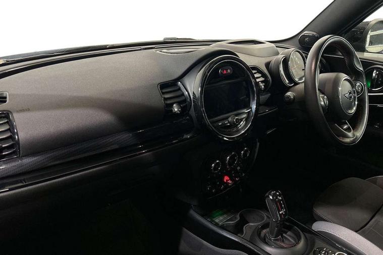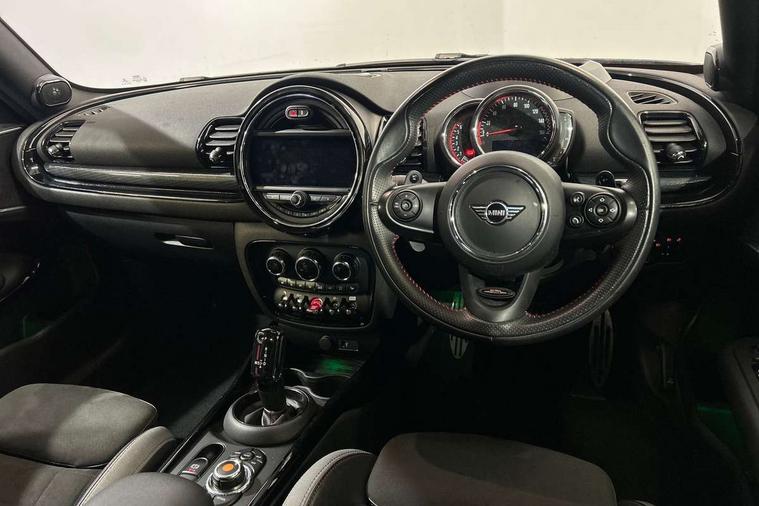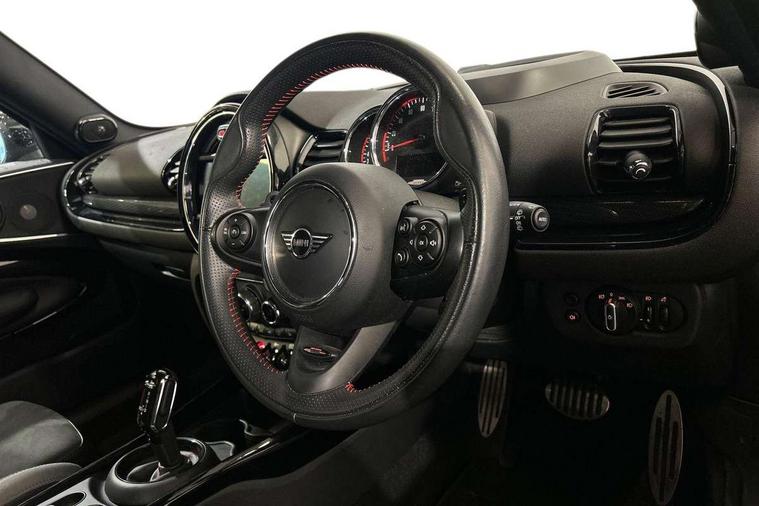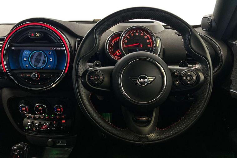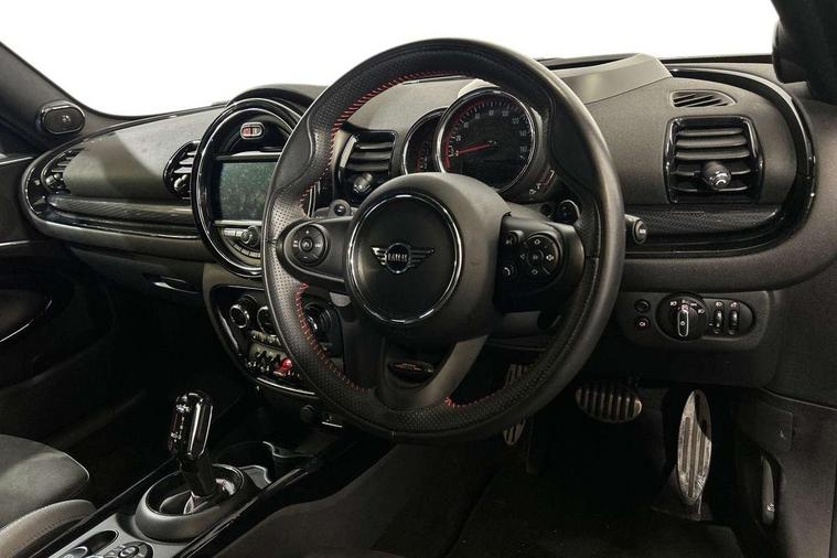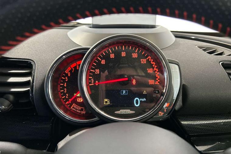 Active Guard incl speed limiting and lane departure functions with auto steering, and front collision warning with brake intervention, Automatic start/stop function with brake energy recuperation, Compatible mobile phone bluetooth with audio streaming, Digital cockpit, Electro-mechanical speed dependant steering assistance, Instrument cluster, Mini E-call, MINI TeleServices, On board computer, 8 Speed steptronic sport transmission including steering wheel paddles, All Wheel Drive (AWD), Double Vanos system, Fully variable valve control, High precision injection, Performance Control, FM tuner and DAB digital radio, Bonnet scoop, Chrome fuel filler cap, Dynamic brake lights, Electric windows, Heated rear window, Heated windscreen washer jets, John Cooper Works - aerodynamic kit (front and rear apron, spoiler), front and rear sport bumpers and part-painted side sills with door sill finishers, John Cooper Works rear spoiler, LED rear light with union jack design, Metal door sill strips with Cooper S imprint, Model logo, Model logo on rear doors, Piano black exterior, Radiator grille piano black border with honeycomb structure in matt black with John Cooper Works logo above an individual grille struct in chilli red, Rain sensor with auto headlights, Rear fog lights, Rear window wiper, Side scuttle with MINI John Cooper Works logo in high gloss black with red border, Split rear doors, Sun/heat protection glass, Twin exhaust tailpipe, White indicator lenses, 12V Accessory socket in centre console, 360L luggage compartment capacity, 4 lashing eyes in luggage compartment, 60/40 split folding rear seat, Anthracite headlining with grab handles and clothes hooks, Chrome interior highlights, Cupholders, English handbook, Glove compartment, Height and length steering column adjustment, Interior lighting with 12 basic colours selectable via toggle switch in roof, Isofix rear child seat preparation, John Cooper Works perforated leather steering wheel with contrast stitching in chilli red and John Cooper Works logo, John Cooper Works sports seat with integrated headrest, adjustable thigh support and John Cooper Works logo, Leather gearshift lever and handbrake gaiters, LED reading lights, vanity mirror lights, front foot well light and spotlight on front seats, Multifunction steering wheel, Rubberised stainless steel pedals, Storage compartments in doors, Sunvisors with vanity mirrors, Toolkit, Comfort plus pack - Mini Clubman, Excitement pack - Clubman, Navigation pack - Clubman, 17" front sport brake with 4 piston fixed calliper, 2 tone horn, 3 point seatbelts on all seats, 6 Airbags - front, side, head and seat belt tensioners, Anti-lock braking system (ABS), DSC - Dynamic Stability Control, Electronic handbrake, Front and rear disc brakes, Red brake callipers with John Cooper Works logo, Torsen mechanical limited slip differential, Tyre pressure monitoring system, Alarm system with tilt sensor, monitoring doors, bonnet interior and tailgate, Auto drive away locking, Comfort access system, Deadlocking function, Electronic vehicle immobiliser, Locking wheel bolts, Start/stop toggle with keyless go,