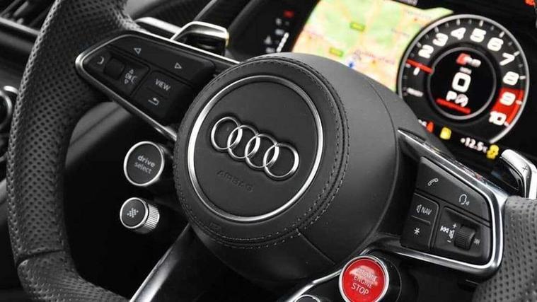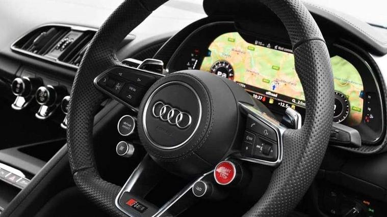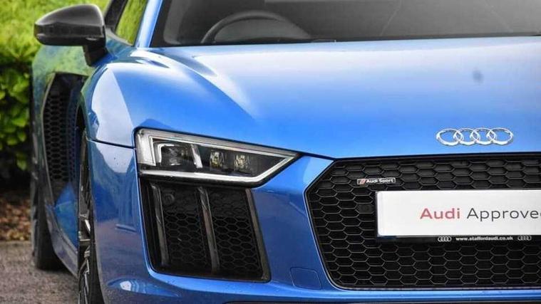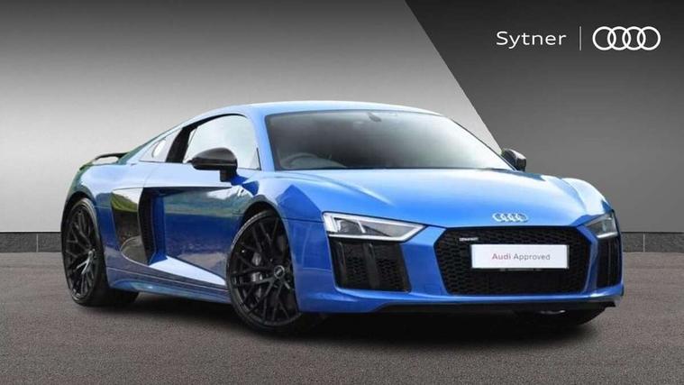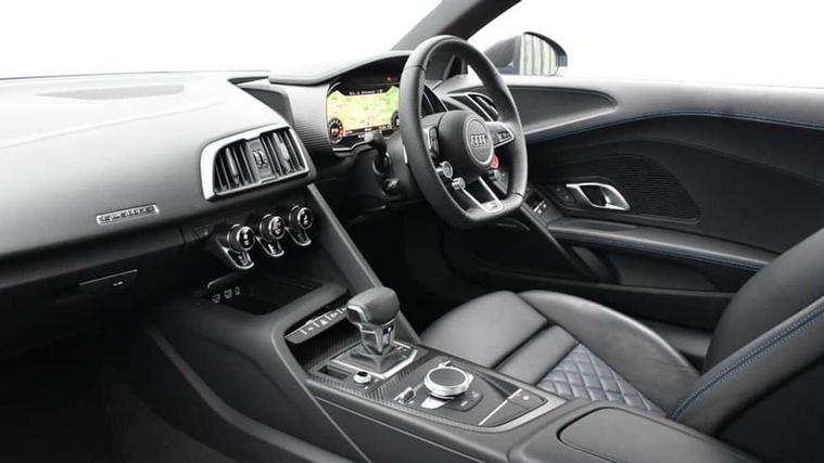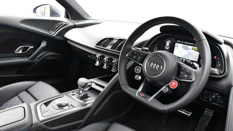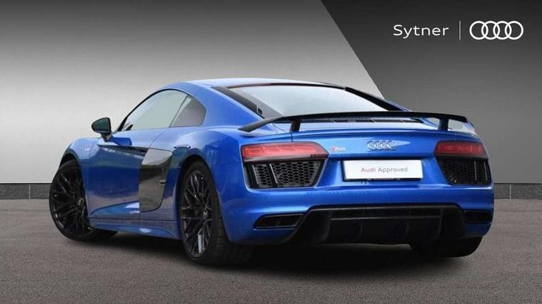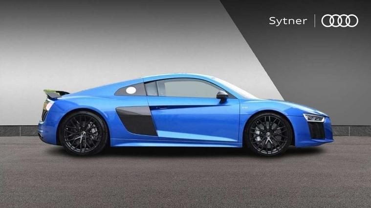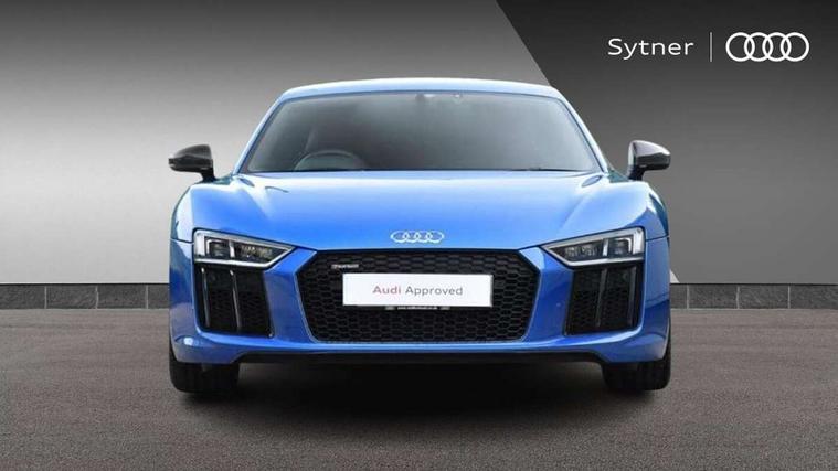 Audi connect, Audi drive select with performance mode, Audi parking system plus with front and rear sensors, Audi virtual cockpit - 12.3" high-resolution LCD display with fully customisable instrument cluster, Bluetooth connectivity with voice control, Cruise control + speed limiter, Driver's information system, MMI navigation plus with DVD, SD card reader, 10GB music storage, MMI touch panel, Service interval indicator, V10 Plus sports suspension, 2 USB ports, Audi music interface, Auxiliary input socket, DAB Digital radio, Air inlet in Anthracite gloss black, Aluminium fuel cap, Audi Beam uses LEDs to project the Audi Sport logo, Auto dimming rear view mirror with light and rain sensors, Body colour bumpers, Electric front windows, Electrically adjustable and heated door mirrors, Folding door mirrors, Gloss anthracite black air outlets, Gloss Carbon rear spoiler, Green tinted glass, Heat insulating glass, Heated rear window, Laminated windscreen, LED daytime running lights, 3 spoke flat bottomed multifunction performance leather steering wheel with 4 operating satellites, Adjustable steering column, Aluminium gear selector, Aluminium gear shift paddles, Ambient lighting, Deluxe climate control, Driver and passenger footwell lighting, Electric front seat height adjustment, Engine Compartment Light, Illuminated door pockets, Illuminated glovebox, Integrated front head restraints, Interior light with delay, Luggage compartment lighting, Reading lights, Stainless steel pedals and foot rest, ABS/EBD, ASR, Ceramic brakes, Curtain Airbag, Driver/front passenger airbag, EDL traction control, ESP, Front passenger airbag deactivation, Front side airbags, Gloss anthracite brake calipers, Hill hold control, Tyre pressure monitoring system, Warning triangle and first aid kit, Advanced key, Anti theft system, Electronic immobiliser, Locking wheel bolts, Preparation for tracking system, Remote central locking, Valet parking key, Extended inlays in matt Carbon surrounded for Audi virtual cockpit and air vents, Matt carbon inlay, Tyre repair kit,