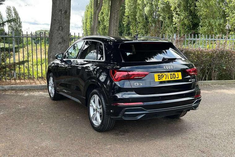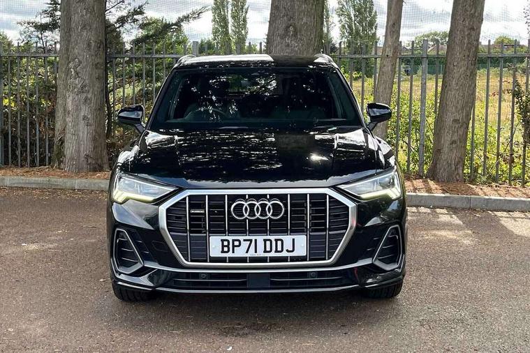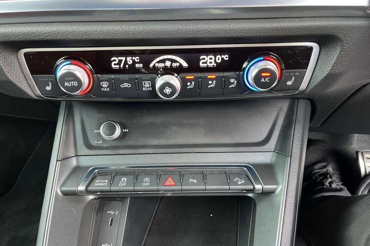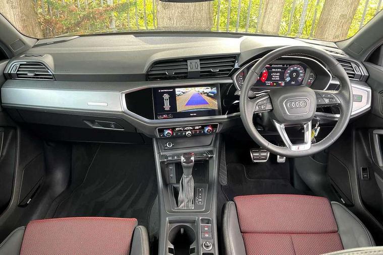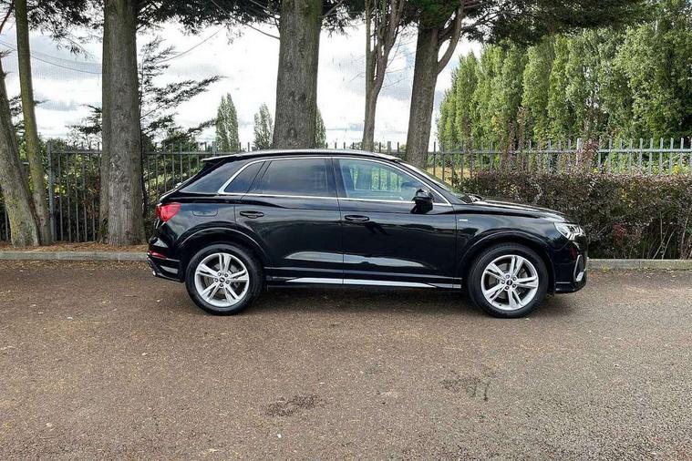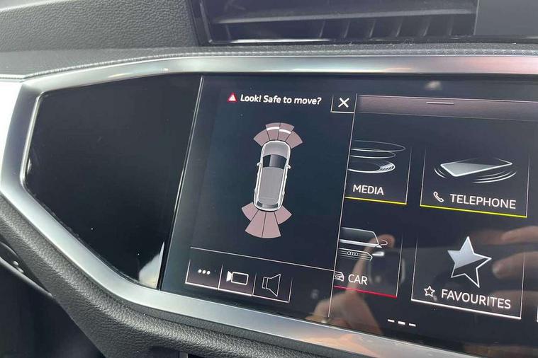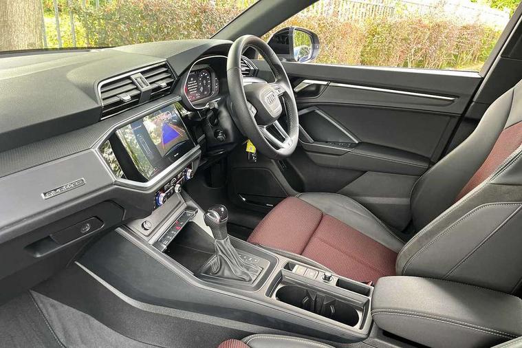 Amazon alexa Integration, Audi connect safety and service (e-call), Audi drive select, Audi lane departure warning, Audi smartphone interface includes wireless Apple carplay/Android Auto, Audi Virtual Cockpit - 10.25" display, Bluetooth interface, Camera based traffic sign recognition, MMI Navigation Plus with high resolution 10.1 inch touchscreen colour display, Power operated tailgate, Progressive steering, Service interval indicator, Start stop system with recuperation, Voice control system with natural language interaction, Sports suspension, 2 USB-C ports with charge and data functions, 6 passive loudspeakers, DAB digital radio module, Acoustic windscreen, Aluminium roof rails, Aluminium window trim, Auto dimming frameless rear view mirror, Body coloured bumpers, Electrically folding, adjustable and heated door mirrors with integrated LED side indicators and kerb view function for passenger side, Front and rear electric windows, Front fog lights, Front side air inlets in matt platinum grey, Front spoiler blade in matt platinum grey, Grille vertical bars in aluminium silver/Matt, High gloss black finish B and C pillars, LED headlights with LED daytime running lights and dynamic rear indicator, LED rear lights, Privacy glass dark tinted rear and rear-side windows (from B-pillar backwards), Rain and light sensors, Rear diffuser strip in matt titanium black, Rear side wing doors, Rear wiper, S line badges on front wings, S Line front and rear bumpers, Side skirt insert in matt Platinium grey, Silver chrome grille surround, Third brake light, Tinted rear windows, Titanium black radiator grille, Variable front intermittent wipers, 12V socket in rear centre console, 3 seat bench in 2nd row, 40:20:40 folding with manual adjustment for 60:40 forwards/backwards position and backrest angle, Adjustable rear seat bench/backrest with centre armrest and cupholder, Black cloth headlining, Dual zone electronic climate control, Front and rear black floor mats with contrast stitching in rock grey, Front and rear headrests, Front and rear roof module including reading lights, Front centre armrest, Glove compartment lighting, Height and reach adjustable steering wheel, Illuminated door sill trims with S logo, ISOFIX child seat mounting for front passenger with airbag deactivation and outer rear seat including top tether attachment point for outer rear seats, Luggage compartment light, Manual front seats with height adjustment, Perforated leather gearknob, Single front passenger seat, Stainless steel luggage compartment sill finisher, Stainless steel pedals, Non smoking pack - Q3, 3x3 point rear seatbelts, 6 airbags - Driver, front passenger, curtain and side windows, Audi pre-sense front with pedestrain and cyclist recognition, Electrically operated child locks on rear doors, Electromechanical parking brake, Electronic stabilisation control including ABS, ASR and EDL, Front seatbelt reminder, Hill descent control, Hill hold assist, Pre sense basic, Seatbelt monitoring, Tyre pressure warning, Warning triangle and first aid kit, Anti theft alarm, Anti theft wheel bolts, Immobiliser, Remote central locking, Dark matt brushed aluminium inlay, Detail dashboard around MMI touch colour display in glass look, black with surround in aluminium look, Leatherette door armrest,
