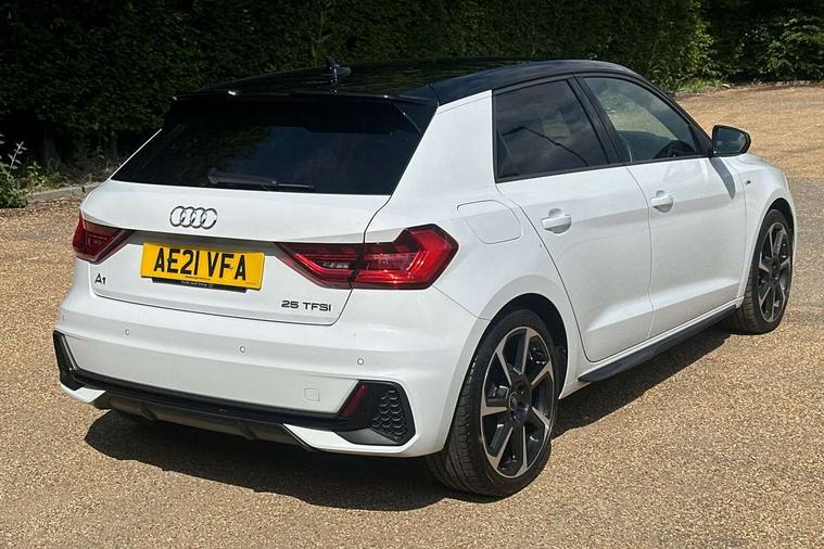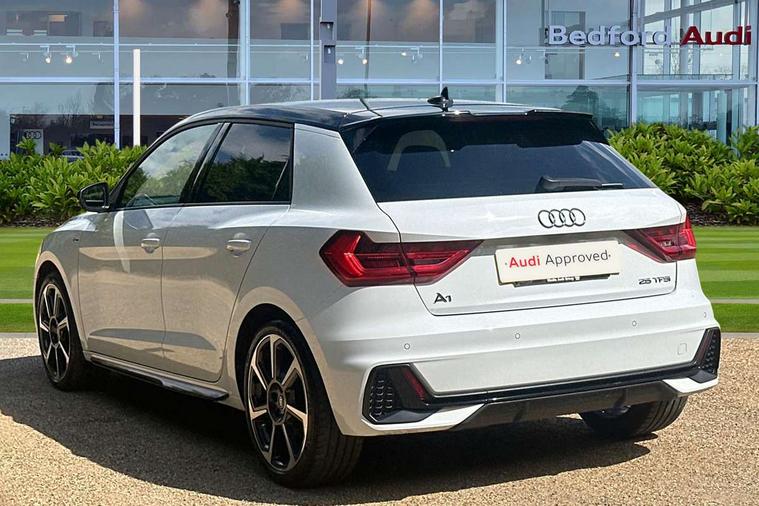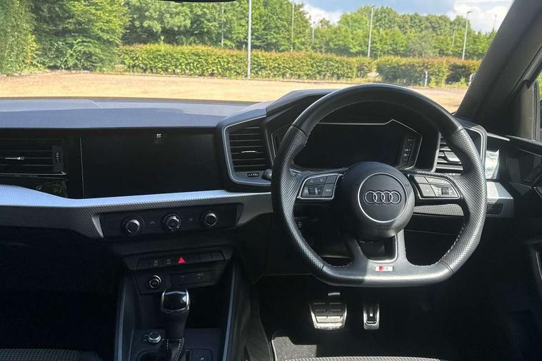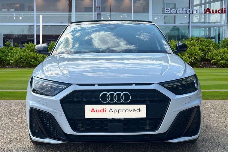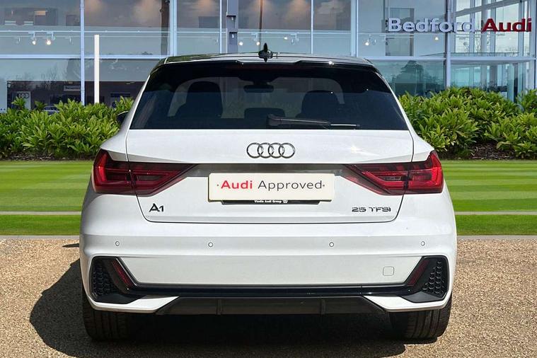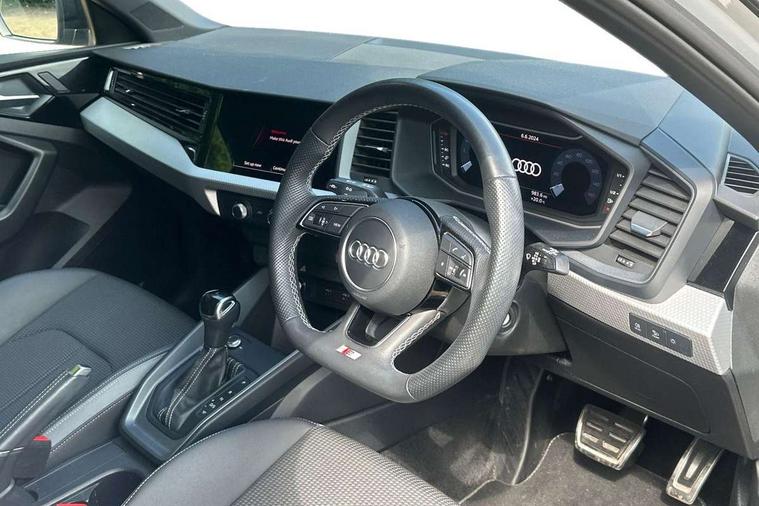 10.25" Digital instrument cluster display classis style instrument dials + speed, odometer, time, outside temperature, telephone menu + fuel level warning, Audi connect safety emergency and service including E-call, Audi smartphone interface with connect compatible smartphone via USB directly MMI display + Nav, music, third party apps controlled via MMI controller, Automatic start/stop system, Bluetooth interface, Cruise control, Driver's information system, Electromechanical power steering, Lane departure warning system, Service interval indicator, Speed limiter, Voice control system, Washer fluid level indicator, Sports suspension, 1 x SDXC card reader, 2 x USB type C connection points, DAB Digital radio, MMI radio plus with 8.8" colour MMI display screen and MMI touch, Auto dimming rear view mirror, Black door mirrors, Black side skirts, Door sills with aluminium inlays and S Line logo, Electric front and rear windows, Electrically adjustable, heated, folding door mirrors with integrated LED side indicator, Front side air inlets in grained matt black and C frame in titanium black, Heat insulating glass windscreen and side windows, Heated rear windscreen, LED headlights with LED rear lights + dynamic rear indicators + headlight adjustment and high beam, turning light + LED daytime running lights, Radiator protective grille frame in matt aluminium silver, Rain and light sensors, Rear fog lights, Rear wiper, Side front spoiler lips in grained matt black, 12V socket in centre console with two cup holders, 3 rear seats with headrests, 3 spoke flat bottomed multi-function plus leather steering wheel with S badging, grips in preforated leather, contrast stitching and paddle shift, 40:60 Split folding rear seat or folded fully, Black cloth headlining, Driver and passenger seat with manual height adjust with forward and backwards adjustment, Front and rear black floor mats with contrast stitching in fine silver, Front head restraints, Height and reach adjustable steering wheel, ISOFIX child seat mounting for front passenger and outer rear seats including top tether attachment point of outer rear seats, Leather gear knob with aluminium trim, Luggage compartment light with front and rear reading lights, Manually adjustable lumbar support in front seats, Stainless steel pedals, Black styling pack - A1 Sportback Black Edition, LED interior lighting pack - A1, Luggage compartment pack - A1, 3x3 point rear seatbelts, Audi pre-sense front with pedestrain and cyclist recognition, Brake assist function, Driver and front passenger airbag with front side and head airbags, Electronic Stability Control including ABS, EBD, ASR and EDL, Front and rear seatbelt reminder, Front passenger airbag deactivation switch, Hill hold assist, Seatbelt height adjustment for front seats, Seatbelt monitoring, Tyre pressure warning light, Warning triangle and first aid kit, Anti theft alarm, Anti theft wheel bolts and loose wheel warning, Immobiliser, Remote central locking with 2 foldaway keys, Aluminium trim for control switches, air vents and digital instrument cluster, Silver grey inlays polygon structure in diamond paint finish, Structured grey accent areas including air vents, door handle recesses and centre console in quartz paint finish, 18" 7 spoke rotor design alloy wheels in gloss anthracite black, diamond cut finish,