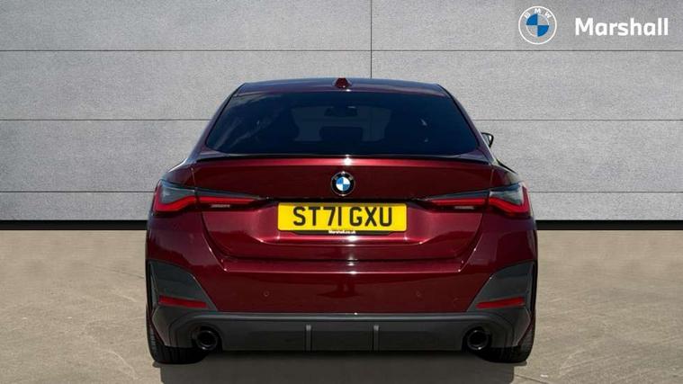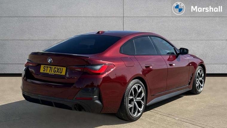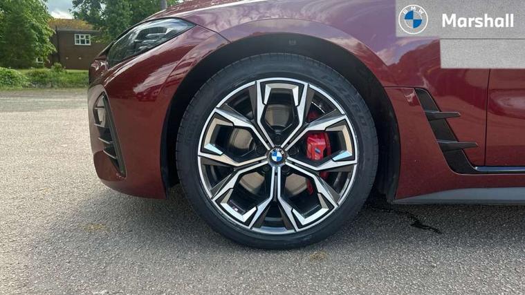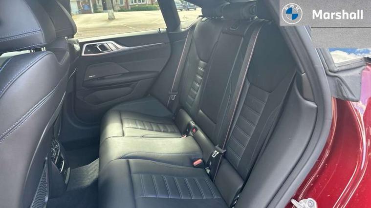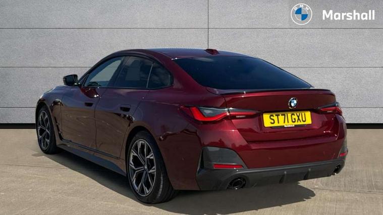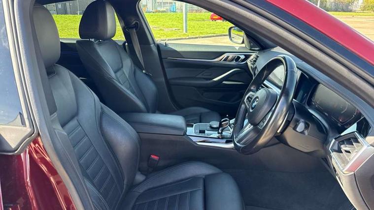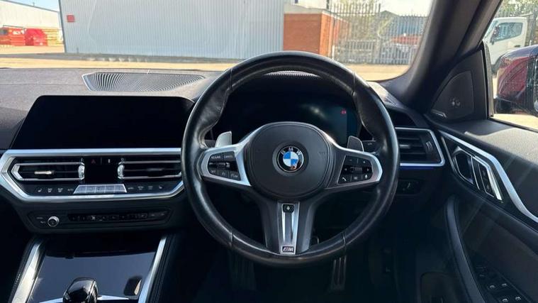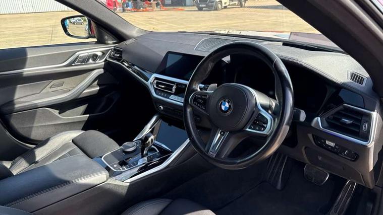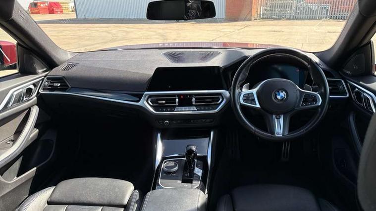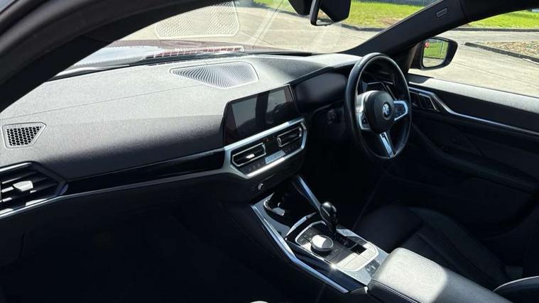 Active guard plus, Attentiveness assist, Auto start-stop, Bluetooth hands free facility with USB audio interface with audio streaming, BMW ConnectedDrive online services, BMW Live Cockpit Professional Nav with 12.3" instrument display + 10.25" display, Intelligent Voice Assist, BMW OS 7, HDD, 2USB, 4G LTE connect, BMW service history, BMW Teleservices, Brake pad wear indicator in front and rear, Check Control warning system for monitoring of lights and door/luggage compartment open warning, Condition based service, Electric bootlid, Electric power steering with Servotronic steering optimised at all speed ranges, Gearshift time display in manual mode, iDrive controller on centre console, Instrument cluster with speedometer with mph readout, tachometer, fuel gauge and oil temperature gauge, Integrated owners handbook, Oil sensor for level and grade, warning by check control system, On board computer - average speed, fuel consumption, outside temp display with acoustic warning, clock/date, service interval, odometer/trip meter, Optimum shift indicator, Variable sport steering, 8 speed automatic steptronic transmission with gearshift paddles, Active sound design, Adaptive M suspension, Double VANOS, Drive performance control - ECO PRO, comfort and sport modes, High precision injection, Low centre of gravity, Petrol Particulate Filter, Sprint mode, Stroke dependent dampers, VALVETRONIC engine management, DAB tuner, Electronic service booklet, Acoustic glazing, Automatic headlight beam throw control with load dependent regulating reaction, dynamic compensation of braking dive and acceleration squat, Automatic windscreen wipers and automatic headlight, Automatically dimming electrochromatic rear view mirror, Black mirror caps, BMW emblem on engine compartment lid and tailgate, BMW Individual high gloss shadow line with extended contents, BMW individual lights shadow line, BMW Individual metallic paint work, BMW kidney grille with mesh grille front side of the nuggets in matt aluminium and frame in chrome high gloss, Body colour fuel filler flap, Body colour roof fin, Brushed aluminium inserts in the front door sill finishers with BMW designation, Dynamic brake lights, Electric windows - front and rear, with open/close fingertip control, anti trap facility and comfort closing function all round, Exhaust tailpipe - split left and right, Exterior mirrors - electrically folding with anti-dazzle, Fading support, Front and rear bumper system, Front apron plastic in body colour, Green tinted heat protection glazing, Illuminated bow type door handles in body colour drivers side with door lock, Interior rear view electrochromatic mirror with automatic anti dazzle function, LED front fog lights, Licence plate panel integrated into front bumper and tailgate, Lightweight engineering, M designation on front side panels, left and right, M rear spoiler in high gloss black, Model designation on right side of tailgate, One piece front bumper cover including towing eye cover in body colour, Preparation for high beam assistant, Side frame decorative moulding black matt, Sun protection glass, Two part LED tailights in L-shape with components in smoked glass, brake light, LED turn indicator and rear fog light, Visible VIN plate, Welcome lights in interior and door handle area, Widened track and increased camber values for max transverse dynamics, agility and steering precision, Window recess cover black high gloss, Windscreen wipers with integrated washing jets, 12V power socket in front centre console, 2 front cupholder in centre console with clamping elements and matt black inlay, 3 rear headrests, 3 spoke M sport leather multifunction steering wheel, 3 zone automatic air conditioning, 4 pieces lashing eyelets in luggage compartment, 40:20:40 split folding rear seat and rear centre armrest with two cupholders, Ambient lighting with welcome carpet light, Anthracite headlining, Armrest integrated in front and rear door trim + front centre console armrest, Four grab handles integrated in roof lining, Front and rear door exit lighting (left / right), Front and rear door pockets, Front and rear footwell lights, Front and rear reading lights, Front headrests, Front seat backrest width adjustment, Front sport seats, Heated driver and front passenger seats, Height adjustable mechanically and infinitely variable steering column, Illuminated armrest storage compartment, Illuminated glove compartment with separate small compartment, Luggage compartment light, Make-up mirror lights, Storage compartment in rear centre console, Sunvisors with vanity mirrors and ticket pocket, Toolkit located in luggage compartment, Velour front floor mats, Vernasca leather upholstery, Connected professional package - 4 Series, M sport exterior styling pack - 4 Series, 3 point seatbelts on all seats, Battery safety cut-off, BMW emergency call, Brake energy regeneration, Braking pre-tensioning, Child proof locking system in rear door, Child seat ISOFIX attachment for the two outer rear seats, Coasting in idle in ECO PRO mode, Cornering brake control (CBC), Crash sensor activating of airbags, Unlocking doors, hazard warning lights, fuel cut off, interior lighting+activation of safety battery terminal clamp, Driver and front passenger side airbags, integrated in the door side seat backrest bolsters for all seat variants, Driver/Front Passenger airbags, Dry braking, Dynamic brake control, Dynamic stability control + (DSC+) - Anti-lock Braking System (ABS) with brake assist and cornering brake control + Automatic Stability Control (ASC), Dynamic Traction Control - DTC, Electromechanical parking brake including automatic hold function and automatic release of the parking brake when pulling away, Electronic differential lock control (EDLC), Front and rear ventilated brake disc, Front passenger manual airbag deactivation, Head airbags for all 4 outer seats, Hill start assistant, M Sport seatbelts, Seat belt security check for driver and front passenger