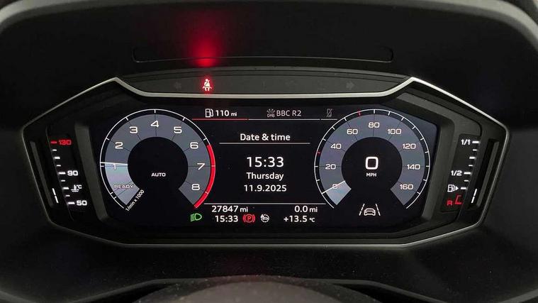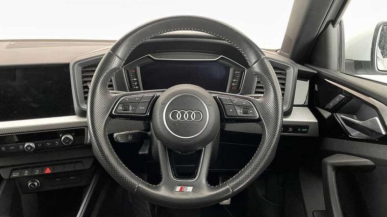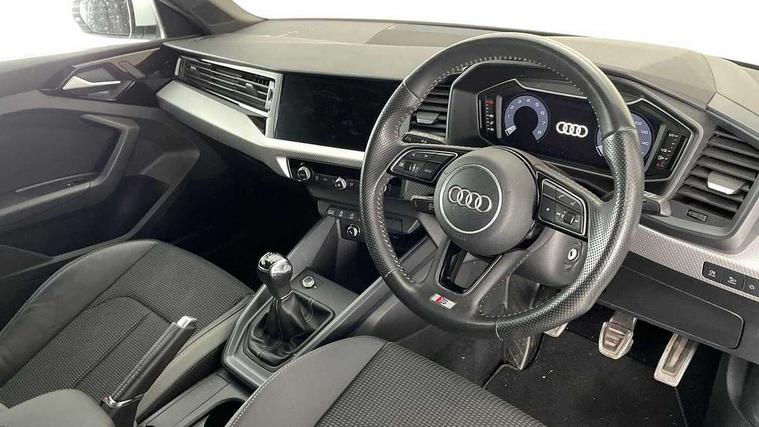 10.25" Digital instrument cluster display classis style instrument dials + speed, odometer, time, outside temperature, telephone menu + fuel level warning, Audi connect safety emergency and service including E-call, Audi drive select - power steering assistance + engine, Audi smartphone interface with connect compatible smartphone via USB directly MMI display + Nav, music, third party apps controlled via MMI controller, Automatic start/stop system, Bluetooth interface, Cruise control, Driver's information system, Electromechanical power steering, Lane departure warning system, Rear parking sensor, Service interval indicator, Speed limiter, Voice control system, Washer fluid level indicator, Sports suspension, 1 x SDXC card reader, 1 x USB type C and 1 USB type A charging points, DAB Digital radio, MMI radio plus with 8.8" colour MMI display screen and MMI touch, Auto dimming rear view mirror, Body coloured door mirrors, Door sills with aluminium inlays and S Line logo, Electric front and rear windows, Electrically adjustable, heated, folding door mirrors with integrated LED side indicator, Front side air inlets in grained matt black and C frame in titanium black, Heat insulating glass windscreen and side windows, Heated rear windscreen, LED headlights with LED rear lights + dynamic rear indicators + headlight adjustment and high beam, turning light + LED daytime running lights, Radiator grille and rear diffuser in matt titanium black, Radiator protective grille frame in matt aluminium silver, Rain and light sensors, Rear fog lights, Rear wiper, S line badges on front wings, Side front spoiler lips in grained matt black, 12V socket in centre console with two cup holders, 3 rear seats with headrests, 40:60 Split folding rear seat or folded fully, Black cloth headlining, Driver and passenger seat with manual height adjust with forward and backwards adjustment, Front and rear black floor mats with contrast stitching in fine silver, Front head restraints, Height and reach adjustable steering wheel, ISOFIX child seat mounting for front passenger and outer rear seats including top tether attachment point of outer rear seats, Leather gear knob with aluminium trim, Luggage compartment light with front and rear reading lights, Manually adjustable lumbar support in front seats, Stainless steel pedals, LED interior lighting pack - A1, Luggage compartment pack - A1, S line exterior styling pack - A1 Sportback, 3x3 point rear seatbelts, Audi pre-sense front with pedestrain and cyclist recognition, Brake assist function, Driver and front passenger airbag with front side and head airbags, Electronic Stability Control including ABS, EBD, ASR and EDL, Front and rear seatbelt reminder, Front passenger airbag deactivation switch, Hill hold assist, Seatbelt height adjustment for front seats, Seatbelt monitoring, Tyre pressure warning light, Warning triangle and first aid kit, Anti theft alarm, Anti theft wheel bolts and loose wheel warning, Immobiliser, Remote central locking with 2 foldaway keys, Aluminium trim for control switches, air vents and digital instrument cluster, Silver grey inlays polygon structure in diamond paint finish, Structured grey accent areas including air vents, door handle recesses and centre console in quartz paint finish,