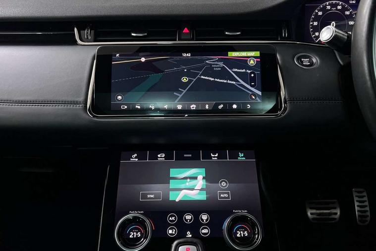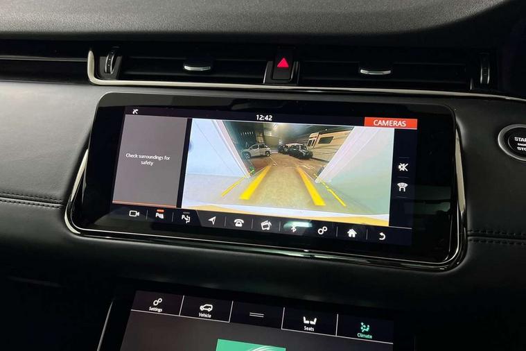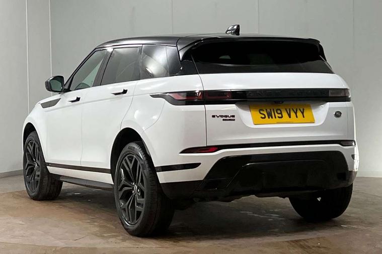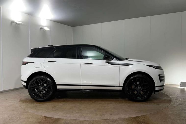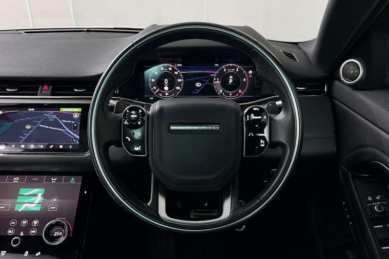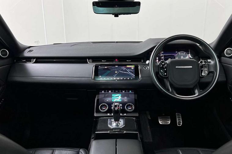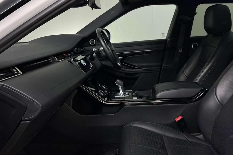 360 degree parking aid, Adaptive cruise control, Android Auto, Apple car play, Blind spot assist, Bluetooth connectivity, Brake pad wear indicator warning light, Clear exit monitor, Driver condition monitor, Duo touch pro, Electronic power assisted steering (EPAS), InControl remote, Interactive Driver display instrument cluster, Land Rover InControl apps, Lane keep assist, Navigation pro system, Park assist - Parallel, perpendicular and parking exit, Powered gesture tailgate/boot lid, Pro services and wifi hotspot, Push button starter, Rear traffic monitor, Smart settings, Traffic sign recognition with adaptive speed limiter, Voice control system, All terrain progress control, Efficient Driveline, Passive suspension, Terrain Response 2 Auto, Digital Audio Broadcast radio-DAB, Steering wheel mounted controls, Automatic headlight levelling, ClearSight interior rear view mirror, Electric windows with one touch open/close and anti trap, Evoque and R-Dynamic badge, Flush deployable exterior door handles, Heated rear window with timer, Heated washer jets, Heated windscreen, Power fold, auto-dimming, heated door mirrors with memory and approach lights, Rain sensing windscreen wipers, Rear fog lights, Shadow atlas bonnet and tailgate script, Tailgate spoiler, 40:20:40 split folding rear seats, Black gearshift paddles, Bright metal pedals, Isofix system on outer rear seats, Overhead lighting console, Overhead stowage for sunglasses, Passive front head restraints, Rear air vents, Rear centre headrest, Sunvisors with illuminated vanity mirrors, Twin front cupholders with cover, Twin sliding front centre armrest, Two zone climate control, Anti-lock braking system (ABS), Customer configurable autolock, DSC - Dynamic Stability Control, Electronic brake force distribution, Electronic parking brake, Electronic traction control, Front and rear seatbelt reminder, High speed emergency braking, Hill descent control, Hill launch assist, Low traction launch, Power operated child locks, Roll stability control, Six airbags - Driver and passenger airbags/driver knee airbag/front side airbag and curtain airbags, Torque vectoring brake, Tyre pressure monitoring system, Alarm, Immobiliser, Intrusion sensor, Keyless entry, Locking wheel nuts,