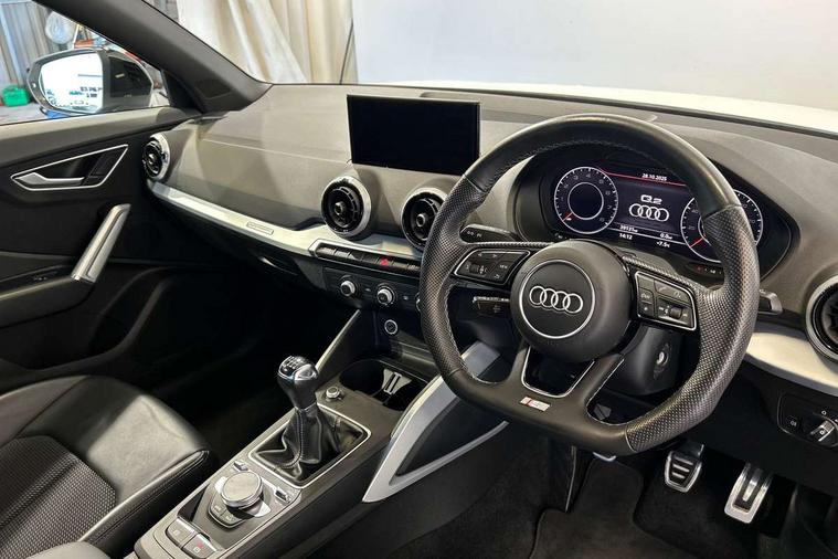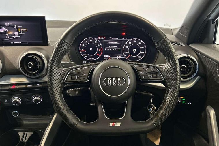 Audi connect navigation and infotainment includes innovative services, Audi connect remote and control connects your vehicle to your smartphone, Audi drive select, Audi drive select with efficiency, Audi smartphone interface, Audi virtual cockpit, Automatic start/stop system with recuperation, Bluetooth interface includes bluetooth audio streaming, Cruise control, E-call, MMI navigation plus with MMI touch, Power operated tailgate, Progressive steering, Rear parking sensors, 2 x SDXC card reader, 6 passive loudspeakers, DAB Digital radio, DVD Drive, Auto dimming rear view mirror, Black window trims, Bumper in full body colour paint finish, Electrically adjustable, folding, auto dimming and heated door mirrors with integrated LED side indicators, Front windscreen with grey tinted sunband, LED daytime running lights, LED headlights with LED rear lights, LED third brake light, Privacy glass - dark tinted rear and rear side windows from B-pillar backwards, Rear side wing doors, Rear wiper, Variable front intermittent wipers, Wheel arch trims in manhattan grey, 12v socket in front, 3 seat bench in 2nd row, 3 spoke flat bottomed multi-function leather sport steering wheel, 4-way electric lumbar support for front seats including seat height adjustment for both front seat, 60/40 split folding rear seat bench, Black cloth headlining, Front and rear head restraints, Front centre armrest, Front/rear floor mats, Height/reach adjust steering wheel, Illuminated door sill trims with S logo, Single front passenger seat, Stainless steel pedals, Tool kit, Black styling pack - Q2, 3x3 point rear seatbelts, 6 airbags - Front, curtain and front side airbags, Electromechanical parking brake, Electronic stabilisation control including ABS, ASR and EDL, Front passenger airbag deactivation, Hill hold assist, Pre-sense front with pedestrian recognition, Seatbelt monitoring, Tyre pressure warning light, Warning triangle and first aid kit, Anti theft alarm, Anti theft wheel bolts, Manual child locks, Remote central door locking, Aluminium interior element, Matt brushed aluminium trim inlays,