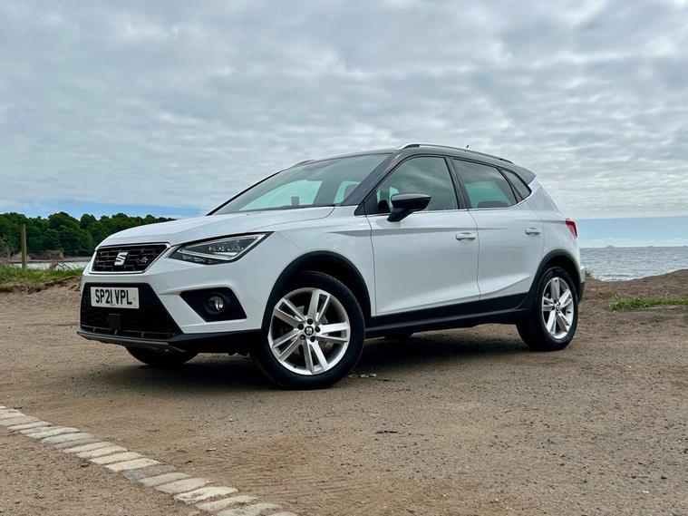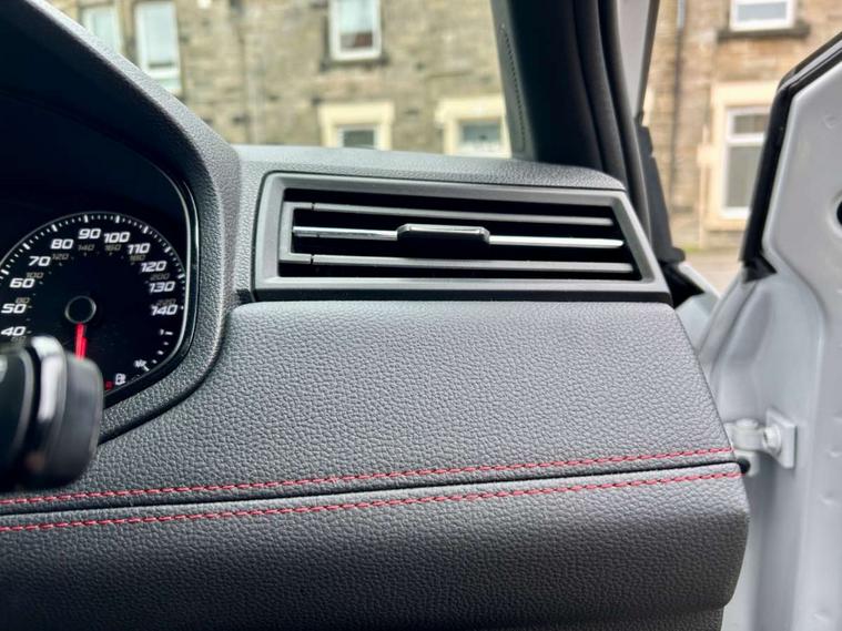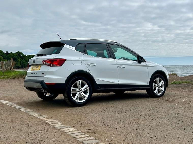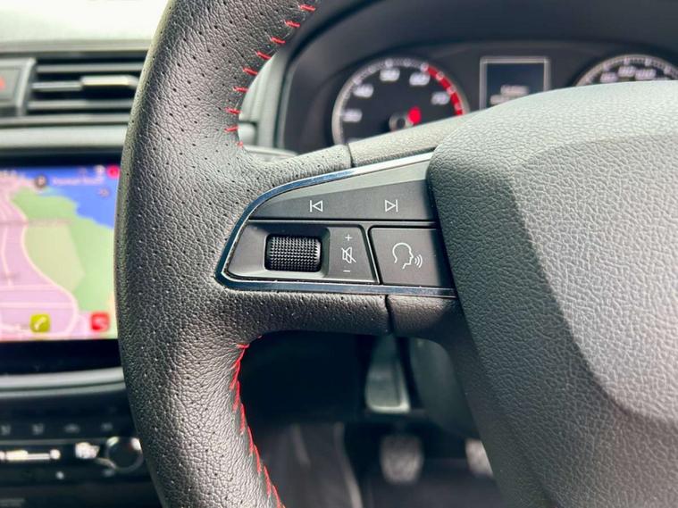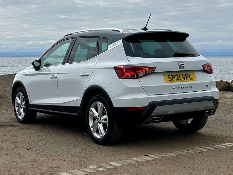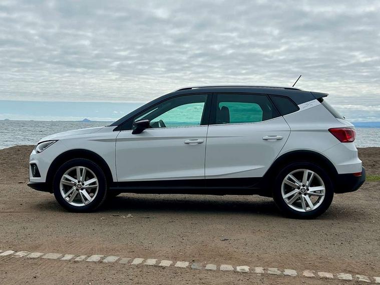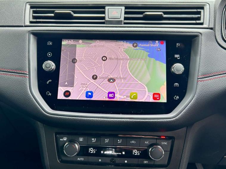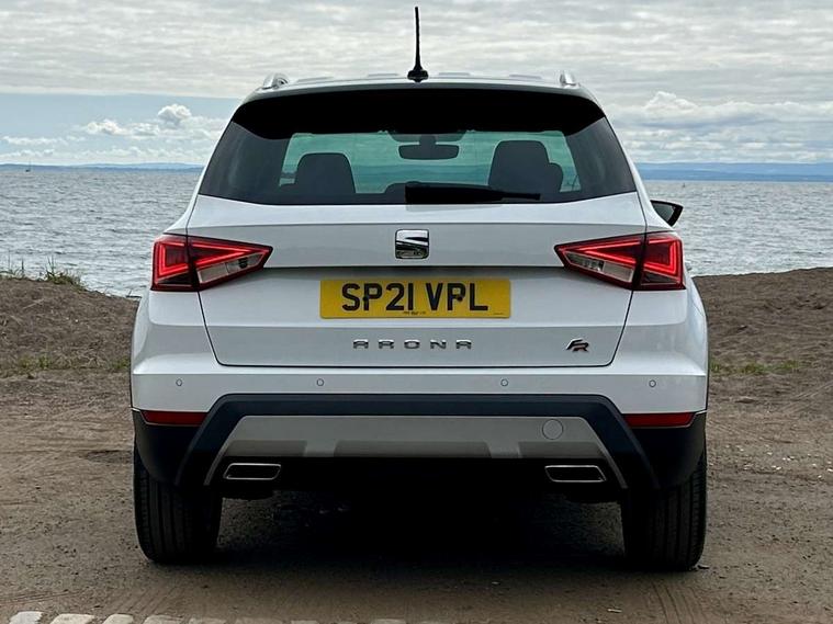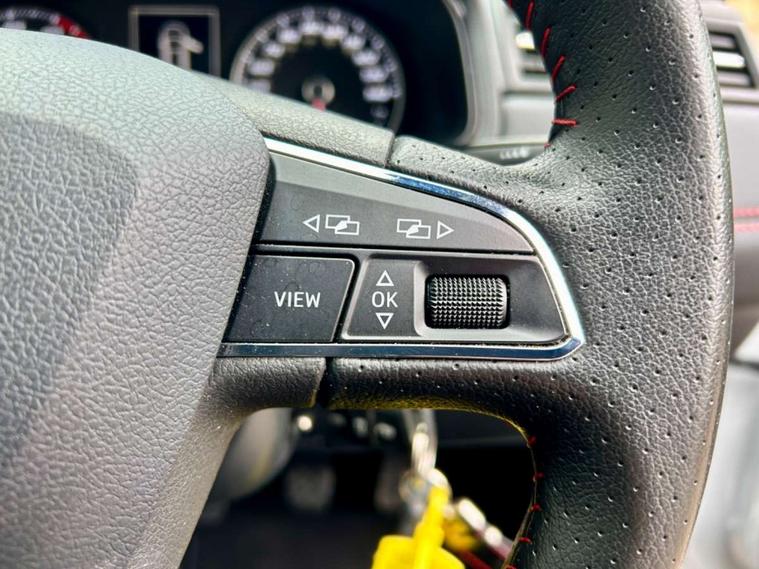 'Lights On' Reminder warning buzzer, Cruise control and speed limiter, Digital clock, Electric speed sensitive power steering, Full Link Smartphone Integration with Mirror Link, Apple Car Play, Google Android Auto with USB Type C cable for Apple and Android compatibility, Low fuel warning light, Outside temperature display, Rear parking sensor, RPM counter, Seat connect with safety, service, remote and online, SEAT Drive profile - Four different models normal-sport-eco-individual, steering response, throttle response, Trip computer, Sports suspension, 6 speakers, Bluetooth interface for hands free and audio streaming, DAB digital radio and AM/FM radio, Steering wheel mounted audio controls, Anti theft roof antenna, Auto dimming interior rear view mirror, Automatic activation of hazard warning lights, Automatic headlights, Body coloured bumpers, Body coloured door handle inserts, Chrome front grille frame, Chrome roof rails, Chrome window trim, Coming/leaving home lighting function, Dark tinted rear windows, Electric front/rear windows with one touch/auto up/down, Electrically adjustable, heated and folding door mirrors, Full LED headlights dipped and mainbeam + front and rear fog lights, LED daytime running lights, LED rear tail lights and licence plate lights, Protective side mouldings, Rain sensing wipers, Rear window wash/wipe, Roof colour door mirrors, Twin exhaust pipe styling hidden exhaust pipe, Visible VIN plate, Windshield wiper with intermittent control and potentiometer, 2 cupholders, 60/40 split folding rear seat, Aircare filter, Black interior roof, Double boot floor, Driver sunvisor with covered mirror + card holder, Dual zone climate control, Front courtesy light with front reading lights, Front sport seats, Gear shift indicator, Height adjustable front seats, Height/reach adjustable steering column, Illuminated boot, Instrument lighting with brightness control, Interior light in footwell, central console and door panel, ISOFIX points in outer rear seats with top tether anchorage points, Multi-colour ambient interior lighting, Nora cloth upholstery, Passenger sunvisor with vanity mirror, Perforated flat bottomed leather steering wheel/gear knob/handbrake with red stitching and FR logo, Two front and three rear height adjustable headrests, Connectivity pack plus - Arona, Interior chrome pack - Arona, 3 point seatbelts on all rear seats, ABS, Active front headrests, Child locks on rear doors, Driver and front passenger airbags with front passenger airbag de activation, front side and curtain airbags, Electronic stability control, Emergency Brake Assist (EBA) and front assist, Front and rear seatbelt reminder, Hill hold control, Multi-Collision braking, Tiredness recognition system, Traction control, Tyre pressure monitoring system, 2 folding remote keys with window open/close function, Alarm with back-up horn, Electronic engine immobiliser, Locking wheel bolts, Remote central locking + deadlocks, Tow away protection, Interior chrome line trim, Leatherette dashboard, 17" Dynamic alloy wheels,