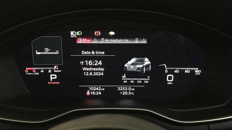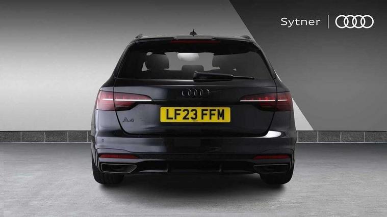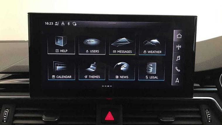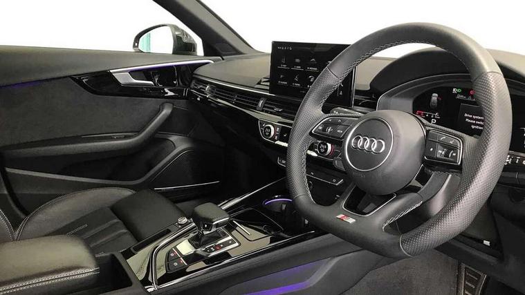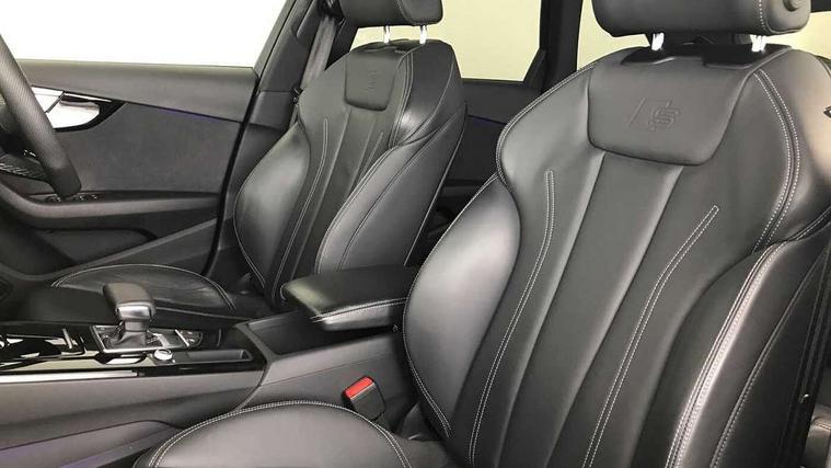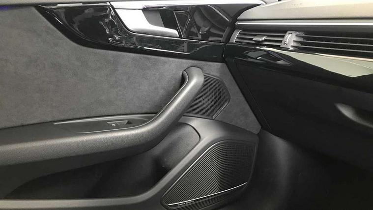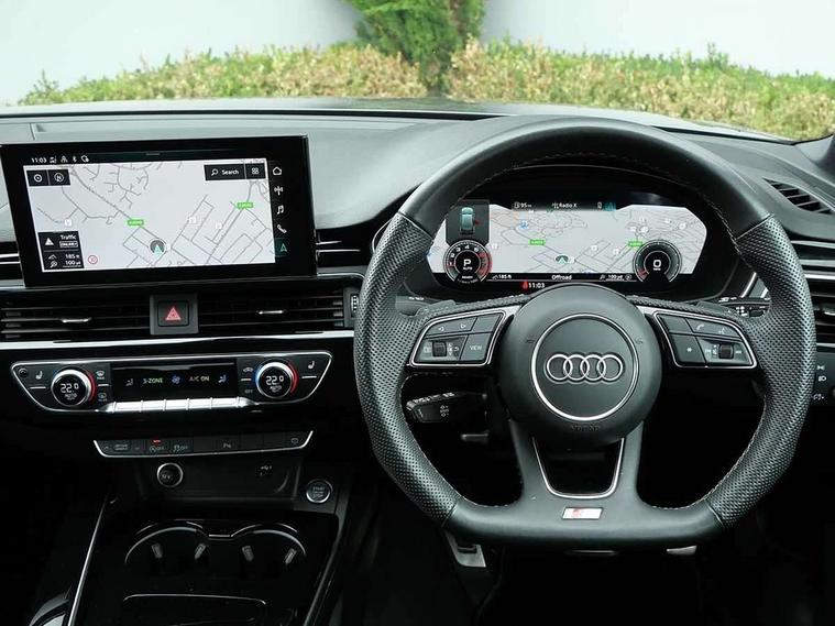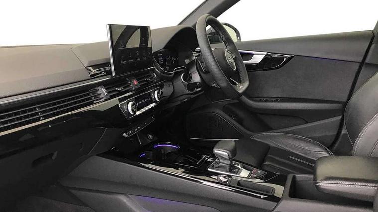 Audi connect safety and service (e-call), Audi connect with Amazon Alexa Integration, Audi drive select, Audi smartphone interface, Audi virtual cockpit, Automatic start-stop system with coasting functionality and efficiency programme, Bluetooth interface, Electromechanical power steering, Email, calendar and text messages displayed via MMI, MMI Navigation plus with MMI touch includes 10.1" high resolution colour MMI display, 3D map, Power operated tailgate, Voice control system, 54 litre fuel tank, Sports suspension lowered by 23mm, 2 USB charging ports, 8 passive loudspeakers, DAB digital radio reception, Audi beam uses LEDs to project the audi logo onto the ground as you exit your A4, Auto dimming rear view mirror, Black Audi rings and black badging (model name in black badging, no engine badging), Body colour door handles, Body colour front spoiler lip, Body colour side sill trim, Electrically folding auto dimming/adjustable/heated door mirrors with LED side indicators and kerb view function for passenger side, Exhaust tailpipes in high dark chrome, Front and rear bumpers with side skirts, Grained matt black side air inlets with matt aluminium silver inlay, High beam assistant, High gloss black B pillar trims and triangular rear door trim, LED headlights with LED rear lights + dynamic rear indicators + headlight adjustment and high beam, turning light + LED daytime running lights, LED third brake light, Privacy glass, Rain and light sensors, Rear diffuser in matt black with trim strip in matt aluminium silver, Rear side wing doors, Rear wiper, RS4 rear spoiler in body colour, S Line badges on the front wings, S Line roof edge spoiler, Variable intermittent front wash/wipe, Windscreen with acoustic glazing, 4 way electric lumbar support for driver and front passenger, 40/20/40 split folding 3 rear seat bench in 3 parts with rear centre armrest, Black cloth headlining, Black perforated leather gearknob, Contrast stitching on seats, steering wheel and gear lever gaiter, Deluxe 3 zone electronic climate control, Door sill trims with aluminium inlay, Electric load area cover, Front and rear head restraints, Front centre armrest, Heated front seats, Illuminated door sill trims with S logo, ISOFIX child seat mounting and top tether, Manual seat adjustment, Single front passenger seat, Stainless steel pedals and foot rest, Tool kit, Black styling pack - A4 Avant, LED Interior light pack - A4/S4, 3 rear seatbelts, 6 airbags - Driver, front passenger, curtain and side windows, Electronic Stabilisation Control (ESC) including ABS, ASR and EDL, Hill hold assist, Multi collision brake assist, Pop-up bonnet for pedestrian protection, Pre sense city, Rear door child safety locks, Seatbelt monitoring, Warning triangle and first aid kit, Anti theft alarm, Anti theft wheel bolts, Central locking, Keyless Go, Piano black finish inlay, 19" 5 arm flag design Audi sport diamond cut alloy wheels in gloss anthracite black, Tyre repair kit,