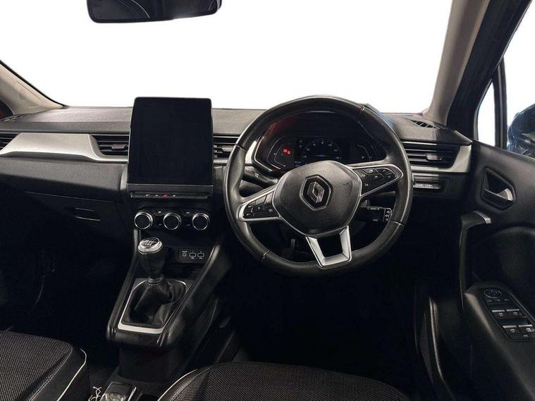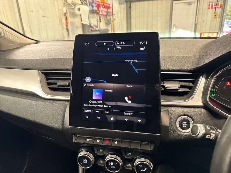 Blind spot warning, Cruise control + speed limiter, eCall emergency call system, Eco mode, Front and rear parking sensors with rear view camera, Gear change indicator, Lane departure warning system, Lane keep assist, Multisense system - Ambient lighting and Driving mode selector, Renault automatic emergency assist, Traffic sign recognition, Trip computer, Variable assistance power steering, Wireless Mobile Phone Charger, EasyLink Nav 9.3" touchscreen, 4x20W amp, FM DAB, sound auditorium, 2xUSB, 1xJack, Bluetooth, smartphone integration plus, Apple carplay/Android auto, Auto dimming rear view mirror, Automatic front wipers with rain sensors, Automatic headlights, Automatic high beam - AHB, Body colour door handles, Body coloured bumpers, Body coloured door mirrors, Electric adjustable/heated/folding door mirrors, Electric front windows + one touch + anti-pinch, Electric rear windows, Extra tinted glass in rear windows and tailgate, Full C-shape LED front and rear signature lighting with daytime running lights at the front and at the rear, Gloss black side door protection with chrome effect, LED front fog lights, Rear fog lights, Rear wiper, Roof bars, Shark fin antenna, Variable speed on front windscreen wipers, 12V Accessory socket, 3 rear headrests, 5.2L front glovebox, 60/40 split folding rear seat bench, Automatic climate control with one touch demist function, Centre console storage tray, Front head restraints, Heating system with pollen filter, Height adjustable driver's seat, Height/reach adjust steering wheel, ISOFIX child seat fixing points on rear outermost seats, Leather steering wheel, Middle console with armrest and storage, Rear air vents, 3 rear seatbelts, ABS+EBA, AEBS, Distance warning alert, Driver and front passenger, side, head and curtain airbags, Driver height adjustable seat belt, Electric parking brake with auto hold function, Electronic stability control, Front and rear no seatbelt warning sound, Front dash warning indicator in case of heavy braking, Front driver and passenger side airbag deactivation, Hill start assist, Rear door and window child locking function for rear door, Tyre pressure warning light, Anti drill door locks and locking fuel cap, Deadlocking system, Hands free keycard with push button and start/stop function, RAID (Renault Anti-Intruder Device) automatic door locking, Remote central locking with thatcham approved immobiliser, Black soft touch dashboard with black gloss air vent surrounds,