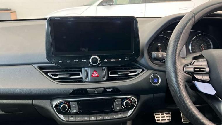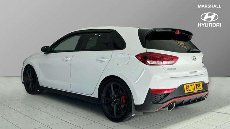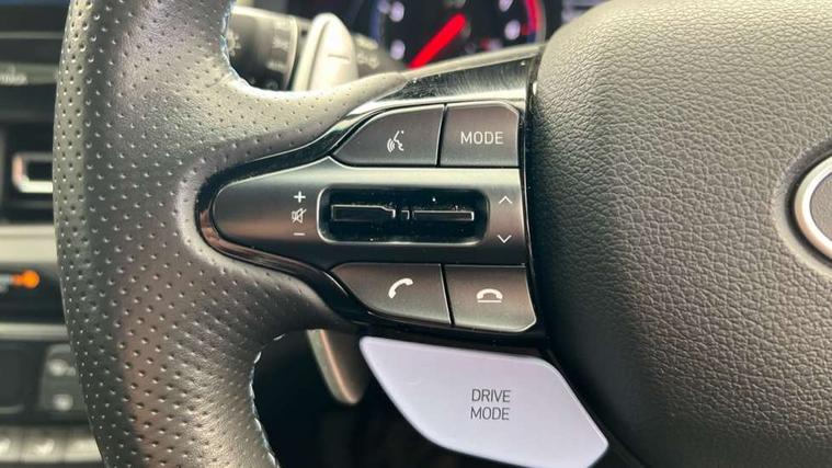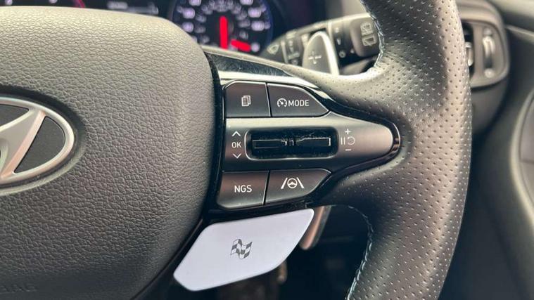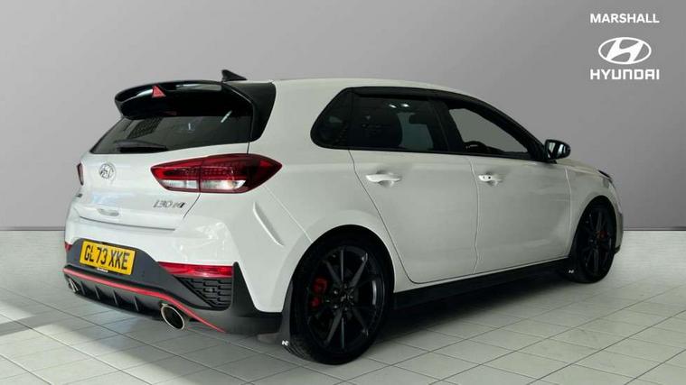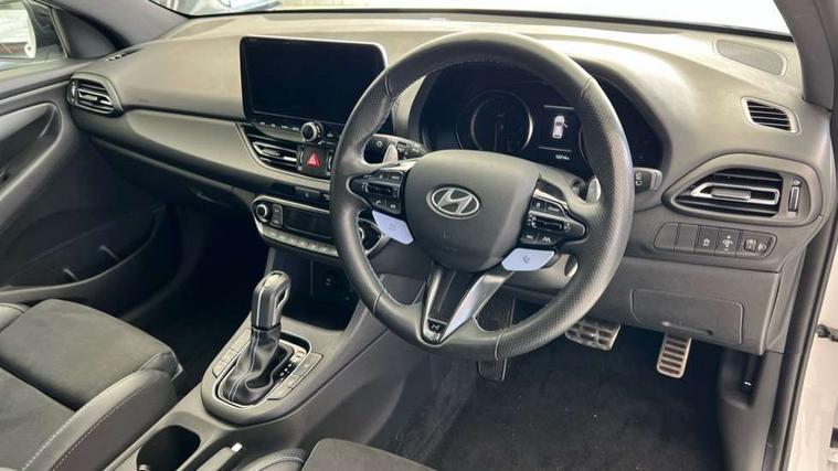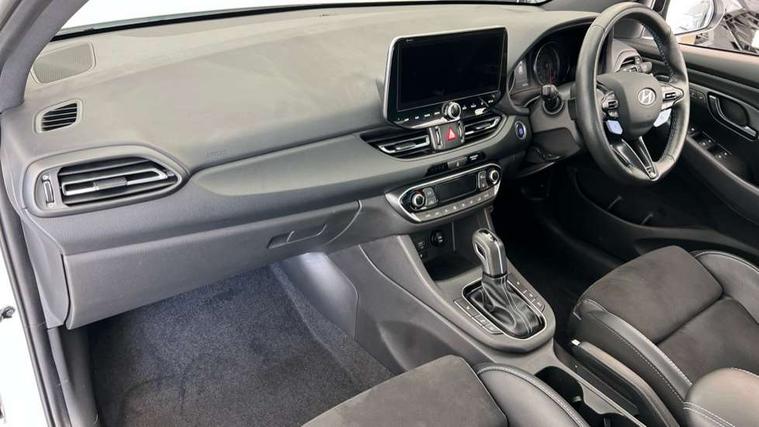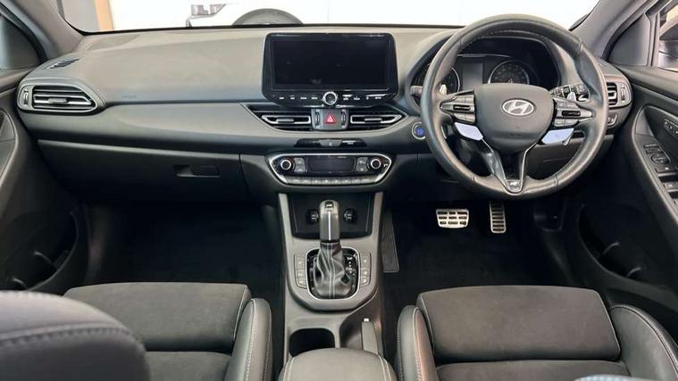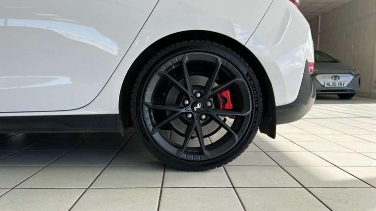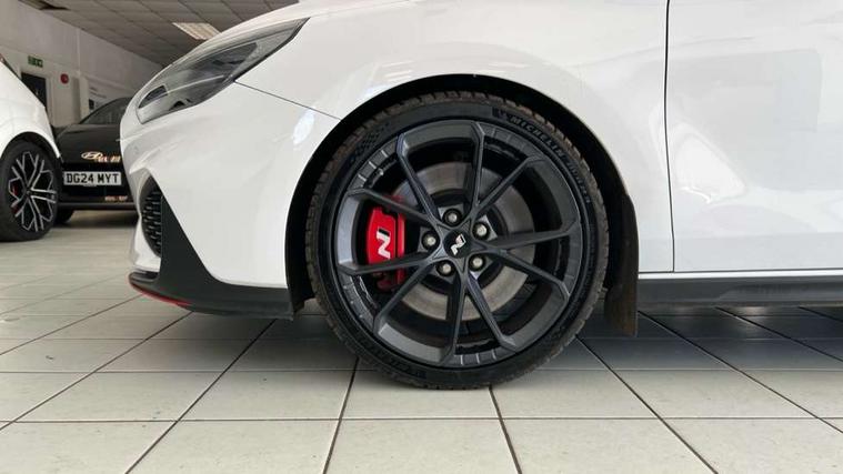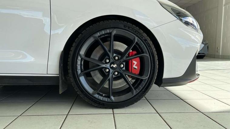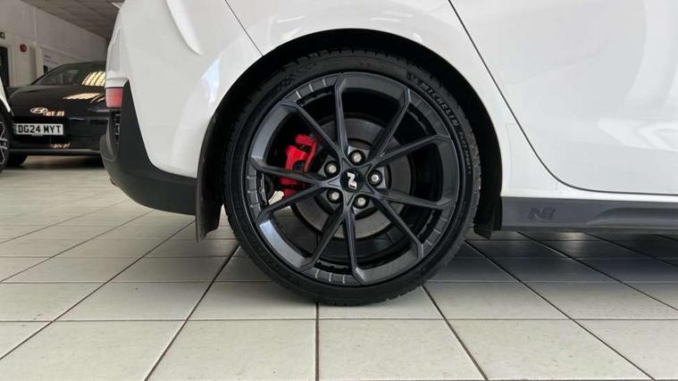 10.25" touchscreen centre console display satellite navigation including traffic messaging channel, map care and live services, Android Auto, Apple car play, Audio control with voice recognition, Blind spot Collision Warning (BCW), Bluetooth connectivity with voice recognition, Cruise control, Drive mode buttons, Driver attention alert system, Driver's supervision instrument cluster with 4.2" LCD display, e-Call (Emergency button system), Emergency stop signalling system, Forward collision avoidance assist, Front and rear parking sensors, Intelligent speed limit warning, Lane follow assist, Lane keep assist, N exclusive sport cluster, N grin shift, N mode button, N track sense shift, Parking system with rear camera and guidance system, Performance information display, Rack motor driven power steering, Rear collision assist, Rev matching system, Shift timing indicator, Trip computer, Windscreen washer fluid sensor and warning indicator, Wireless phone charging pad, Electric active sound design, Electronic limited slip differential, Electronically controlled suspension, Intelligent Stop and Go, Launch control, 2 front and 2 rear speakers with 2 tweeters, DAB Digital radio, USB ports in centre console, 1 speed non intermittent rear windscreen wiper, Active variable exhaust system, Adjustable intermittent front windscreen wipers with aero wiper blade, Automatic defog system for front windscreen, Automatic dimming rear view mirror, Automatic headlight with follow me home function, Automatic windscreen wipers with rain sensor, Black finish window surrounds, Black glossy door mirrors with integrated indicators, Body coloured door handles, Door mirror puddle lights, Dual LED Headlamps with Low/High Projection & Static Cornering, Dusk sensor, Electric adjustable heated door mirrors, Electric folding door mirrors, Electric windows - front and rear with anti-trap mechanism and one touch control (driver window), LED daytime running lights, LED tail lights, N exclusive front and rear bumpers, N exclusive radiator grille, N exclusive rear diffuser, Rear brake light in signature N triangular design, Rear LED lights, Rear side wing doors, Rear spoiler with integrated LED brake light, Rear stiffness bar, Rear windows and tailgate privacy glass, Shark fin antenna, Static Cornering lights, Tinted glass with windscreen shade band, 12V power outlets in front console and luggage compartment, 3 seat bench in 2nd row, 60/40 split folding rear seat, Active head restraints, Aluminium pedals, Black roof liner, Centre console storage, Chrome effect interior door handles, Driver's seat electric height adjustment, Driver's seat manual extendable seat cushion, Driver/passenger sunvisors and illuminated vanity mirrors, Dual zone climate control air conditioning, Electric adjust driver's seat, Floor mats, Front and rear door pockets, Front armrest with storage box, Front cupholders, Front head restraints with vertical and horizontal adjustment, Front passenger's seat electric adjustments, Front passenger's seat electric height adjustment, Front passenger's seat electric lumbar support, Front passenger's seat manual extendable seat cushion, Front, rear and luggage compartment interior lights, Glove compartment, Heated front seats, Heated function steering wheel, Interior front map reading light and sunglasses holder, ISOFIX child seat anchorage points attached on outer rear seats, Leather gearstick gaiter with light blue stitching, Leather wrapped steering wheel and gear knob, Luggage board, N branded aluminium door sill trims, N drive mode steering wheel button in blue, Reach + rake adjustable steering column, Rear armrest with cupholder, Rear head restraints, Single front passenger seat, Steering wheel audio, phone and cruise control buttons, 3x3 point rear seatbelts, Airbags - front, front side and curtain airbags, Anti-lock braking system (ABS), Childproof rear door locks, Curtain airbag roll over sensor, Electronic stability control, Front passenger airbag deactivation switch, Front seatbelt reminder, Height adjustable seatbelts, Hill start assist control (HAC), Manual parking brake, N power shift, Red brake calipers with N logo, Reinforced brakes, Seatbelt reminder for rear passenger seats, Torque vectoring brake, Tyre pressure monitoring system (TPMS), Deadlocks, Immobiliser, Locking wheel nuts, Remote control central locking, Smart key with keyless entry and engine start/stop button, Speed sensitive automatic door locking, Thatcham category 1 alarm, 19" Gloss black alloy wheels, 19" Pirelli P zero performance tyres, Temporary mobility kit (TMK),