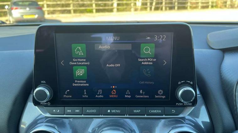 7" full colour TFT screen combimeter, Apple CarPlay and Google Android auto, Drive modes select (Eco, normal and sport), Emergency and breakdown call, Front parking sensor, Idle start/stop system, Intelligent lane intervention, Lane departure warning system, Nissan connect 8" touch screen entertainment system, Nissan connect nav with TomTom traffic, Nissan connect services and Wifi connection, Outside temperature sensor, Power Steering, Rear parking sensor, Traffic sign recognition, Trip computer, Voice recognition, Gasoline particulate filter, 6 speakers, Bluetooth system, USB, Aux-in and 12V socket, DAB Digital radio, Rear console USB port, Auto dimming interior rear view mirror, Auto headlights, Automatic hazard signal with emergency stop signal, Body colour bumpers, Body colour door handles, Electrically adjustable door mirrors with integrated indicators, Follow me home headlights, Front and rear electric window with one touch driver window, Heated and auto folding door mirrors, High beam assist, LED daytime running lights, LED headlamps, LED rear fog lamp, LED rear lamps, Rain sensor windscreen wipers, Rear privacy glass, Rear side wing doors, Rear wiper, Three blink turn signal, 3 height adjustable rear headrests, 3 seat bench in 2nd row, 60/40 split folding rear seat, Automatic climate control, Card holder on driver sunvisor, Cloth upholstery with black and metallic grey syntech leather inserts, Driver and passenger sliding and reclining seats, Driver side rear coat hanger, Driver/passenger sunvisors and vanity mirrors, Front and rear cabin lights, Front armrest, Front door pockets with bottle holders, Front head restraints, Front/rear passenger grab handles, Grey synthetic leather kneepad, Height adjustable driver's seat, Internal chrome door handles, Leather gearshift knob, Leather steering wheel, Luggage board, Luggage space lighting, Monoform sporty seats, Multifunction steering wheel, Rear door bottle holders, Single front passenger seat, Steering wheel mounted gearshift paddles, Telescopic steering wheel adjustment, Two cupholders in front centre console, Two rear isofix child seat anchorage points with top tether, Welcome light and console tray ambient lighting, ABS with EBD and brake assist, Active ride control, Active Trace Control, Driver and passenger airbags, Driver and passenger side airbags, Electric handbrake with auto hold function, Electronic Stability Programme (ESP), Front and rear curtain airbags, Height adjustable seatbelts, Hill start assist, Intelligent emergency braking with pedestrian and cyclist recognition, Rear door child safety locks, Seatbelt reminder for driver/front passenger and rear seats, Single tone horn, Three 3 point rear seatbelts, Traction control, Tyre pressure monitoring system, VDC Dynamic Vehicle Control, Ventilated rear brake discs, Alarm, Immobiliser, Intelligent key and start push button with walk away lock and approach unlock functions, Remote central locking,