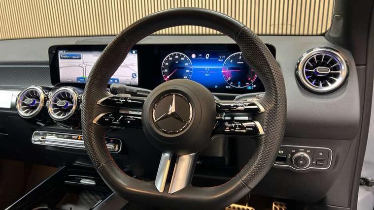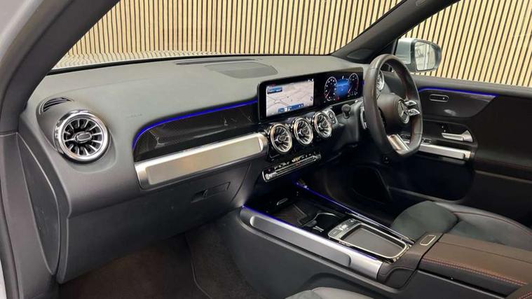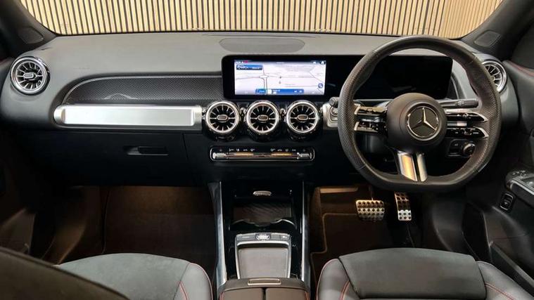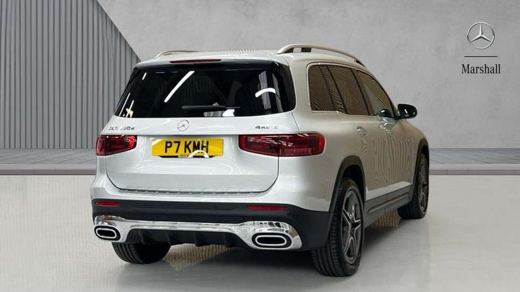 10.25 inch touchscreen central media display, 10.25" Digital instrument cluster display screen, 12 ultrasonic sensors in front and rear bumpers, 180 degree reversing camera with parking guidelines, Additional drive program "OFF-ROAD", Assisted parking: reversing backwards into perpendicular and parallel parking spaces, Attention assist - Monitors steering behaviour and long journey fatigue, Blind spot assist, Bluetooth connection, Brake pad wear indicator warning light, Car wash mode, Convenience opening and closing, Direct steering, DYNAMIC SELECT with a choice of driving modes (ECO, Comfort, Sport and Individual), ECO start/stop function, Engine start/stop button, Exit warning function, Fluid level warning indicator for fuel, oil, coolant and washer fluid, Hard disk navigation, Hey Mercedes Voice activation, Lamp failure indicator, Lane keep assist, MBUX augmented reality for navigation, MBUX navigation premium, Mercedes me connect including emergency call system, accident recovery, breakdown management and maintenance, Mercedes me remote services, Outside temperature gauge, Owners manual and service booklet in English, Pre-installation of private car share, Preinstallation for parking damage notification, Radio aerial integrated into front and rear windshields, Remote boot closing, Service indicator (ASSYST), Smartphone integration with Apple CarPlay and Android auto, Speed limit assist, Trip computer in multifunction display with current consumption indicator, Ultrasound sensors - positioned in the handle of the tailgate, Wireless charging, Comfort suspension with ride height lowering, Rear axle multi-link, 1 USB-C port in the oddments compartment (Charge + Data transfer), 2 USB-C ports for the rear on the centre armrest (Charge only), 2 USB-C ports under the front centre armrest (Charge + Data transfer), DAB digital radio tuner, MBUX multimedia system, Mercedes Benz sound system (225 W) with 10 speakers, 1 central speaker, speakers on doors, a tweeter on door, one sub woofer + boost amplifier, Pre installation for Mercedes Benz Link, Adaptive brake lights, Adaptive high beam assist, Air vents with silver chrome surrounds, AMG front apron with front splitter in the colour of the vehicle with chrome trim element, AMG rear apron with visible tailpipe trim and chrome trim element, AMG specific/dual flow exhaust pipes in chrome (non-functional), Auto dimming rear view mirror, Beltline trim and window line trim strip in high gloss aluminium, Black grained side sill trim with chrome inlay, Body coloured door handles, Electric adjustable and heated door mirrors with integrated LED side indicators, Electric folding door mirrors, Front and rear electric windows, Headlamp assist automatic headlamp activation, Heat insulating dark-tinted glass starting from B-pillar, Heated glass rear windscreen + timer control, High level LED third brake light, Illuminated door sill panels with Mercedes-Benz lettering, Interior mirror with black reading lamps and frameless, LED high performance headlamps with integrated LED daytime running lights, LED tail lamp, Polished aluminium roof rails, Radiator grille as a diamond grille with chrome pins and central Mercedes star, Rain sensor windscreen wipers, Rear fog lamp, Rear side wing doors, Rear wiper, Single louvre in matt grey with chrome inserts and black highlights, Two visible tailpipe trim elements exhaust, Ultrasonic sensors - positioned in the front and rear bumpers, Wheel arch liners in the colour of the vehicle, 12V socket in the oddments compartment, 3 seat bench in 2nd row, 3 twin spoke flattened multifunction steering wheel in nappa leather - horizontal twin spoke in high gloss black, vertical twin spoke in silver chrome, 4 way adjustable lumbar support, 40:20:40 split folding rear seats, Air conditioning - Two zone thermotronic luxury automatic climate control with display, AMG floor mats, AMG sports pedals with brushed stainless steel surfaces and black rubber studs, Automatic child seat recognition sensor, Black roof lining, Door handles with chrome inserts, Fluorescent jacket, Front and rear headrests, Front centre armrest with stowage, Galvanised steering wheel gearshift paddles in silver chrome, Handle recess lighting, Heated front seats, Height adjustable head restraints, Height/reach adjustable steering column, Interior lighting - 64 colour Ambient lighting, Luggage net on driver/front passenger seat backrest, Single front passenger seat, Sports seats, Stowage compartment with retractable cover, Sun visors with illuminated vanity mirrors, Third row of seats for two people on rear seat, Twin front cup holders, Two outer rear seat isofix and top tether child seat fixing points, Easy pack tailgate, Interior lighting with light and sight pack - GLB, Seat comfort package - GLB, 3 rear 3 point seatbelts, Active bonnet pedestrain safety measure which detects an impact and raises bonnet by 65mm, Active brake assist includes forward collision warning system with autonomous braking, Adaptive brake assist with hold function and hill start assist, Airbags - kneebag for driver, Anti-lock braking system (ABS) with brake assist, Black seatbelts, Bonnet with power domes, Childproof locks manually operated for rear doors and electrically operated for rear power windows, Crash responsive emergency lighting, Curve dynamic assist, Downhill speed regulation (DSR), Driver and front passenger head and sidebags, Driver and front passenger windowbags, Dual stage driver and front passenger airbags, Electric parking brake, Electronic stability programme with acceleration skid control, Front and rear seatbelt reminder, Front brake callipers with Mercedes Benz lettering, Front passenger seat occupancy sensor, Perforated front brake discs, Tyre pressure monitoring system, Warning triangle and first aid kit, Guard 360 degree vehicle protection - Anti theft alarm system, tow away protection with visual, acoustic warning and alarm, Interior monitoring system, KEYLESS GO acce