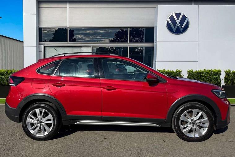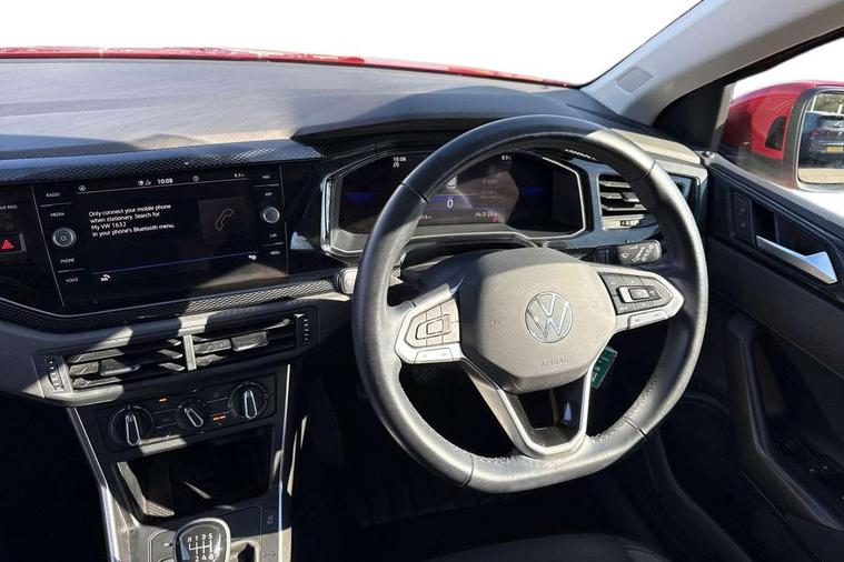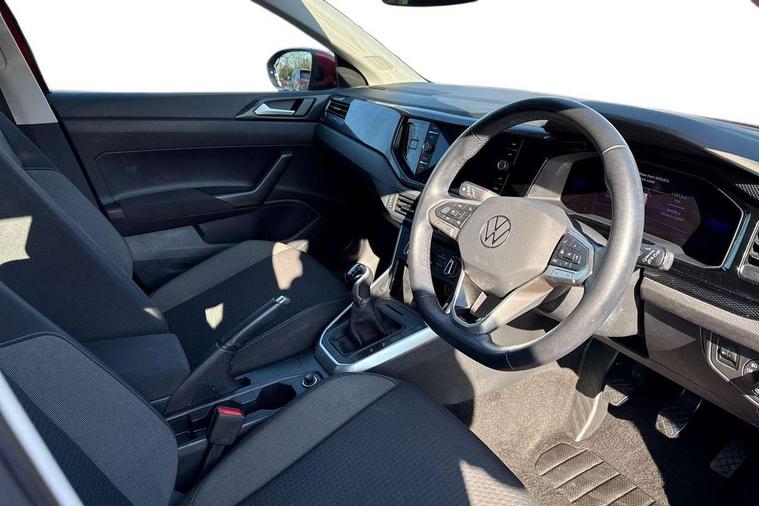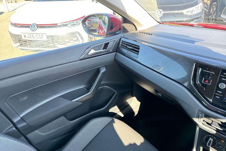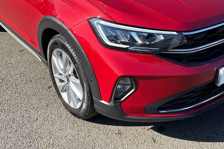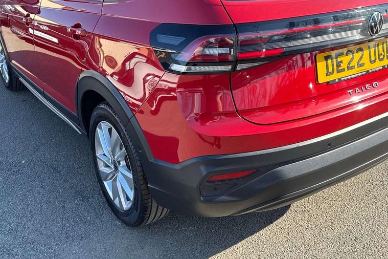 App-Connect including App-Connect Wireless, Driver alert system, e-Call (emergency call), Power Steering, Travel assist including emergency assist, Washer fluid level indicator, Wireless Charging including Bluetooth, Start-stop system with battery regeneration (recuperation - energy recovery during braking), Digital radio reception (DAB+), Diversity antenna for FM reception, WeConnect plus, Ambient lighting with logo projection, Aspherical driver's exterior mirror, Auto headlights, Body coloured bumpers, Body coloured exterior mirror housings and door handles, Electric windows, External USB type C socket and charging sockets, Front fog lamps with cornering function, Headlight range control, Heat insulating glass windscreen, LED headlamps, LED rear combination lamp, LED third brake light, Left convex exterior mirror, Power folding adjustable/heated exterior mirrors and front passenger exterior mirror lowering function, Rear fog light on one side, reversing light on both sides, Rear side wing doors, Rear wash/wipe with intermittent wipe setting, 'Slash/ Austin' Cloth upholstery, 12V socket in centre console, 2 front reading lights, 3 rear head restraints, 3 seat bench in 2nd row, Black carpets, Child seat anchor for child seat system i-Size, 2x top tether and child seat anchor in front on front passenger side, Door and side trim panels in titan black, Driver and front passenger seat height adjustment, Front centre armrest, Handbrake lever handle in leather, Height and reach adjustable steering wheel, Leather trimmed gear knob, Leather wrapped multifunction steering wheel, Luggage compartment floor, Luggage compartment light, Lumbar support for driver's and front passengers seat, Seat covers in titanium black, Single front passenger seat, Split folding backrest with centre armrest and unsplit rear seat bench, Storage compartment under front seats, Sun visors with illuminated vanity mirrors, Chrome Package - Taigo, Drivers assistance pack - Taigo, Light and Sight pack including High beam assist - Taigo, 2 x 3-point seatbelts/outer rear seats with ECE label, 3-point seat belts in front with pretensioner and height adjustment, 3-point seatbelt for centre rear seat, Driver and front passenger airbags with front passenger airbag de-activation, front side and curtain airbags, Driver and front passenger safety-optimised head restraints, Electronic stability control, Extended and predictive pedestrian/ cyclist protection, Front and rear disc brakes, Front curtain and side airbags with center airbag, Hill start assist, Manual rear child locks, Single tone horn, Tyre pressure loss indicator, Anti-theft alarm system with interior monitoring, backup horn, and towing protection, Anti-theft wheel bolts, Lava stone black gloss/matt decorative inserts in dash and front door panels, Low rolling resistance tyres,