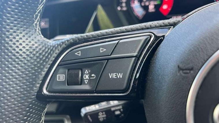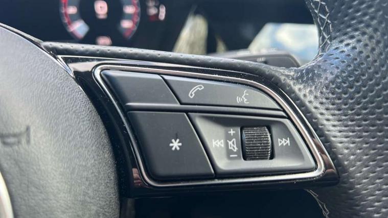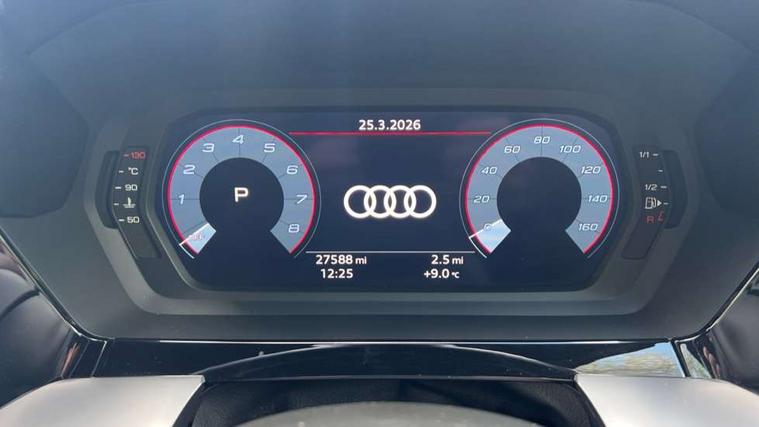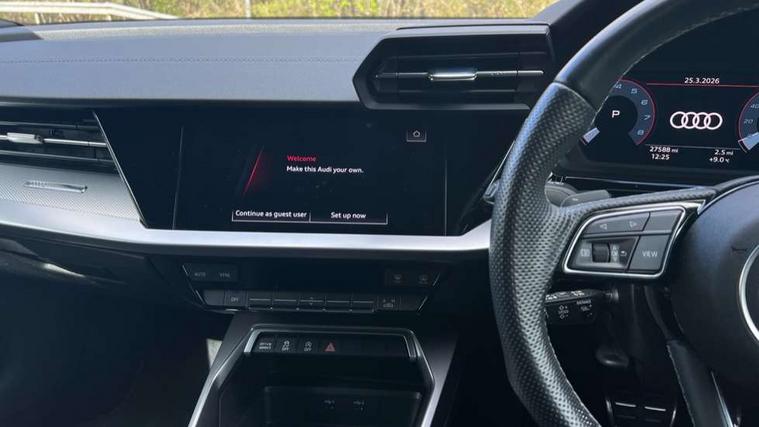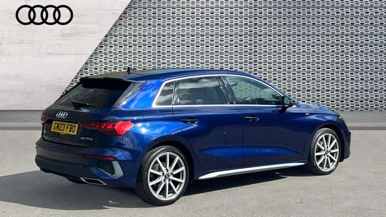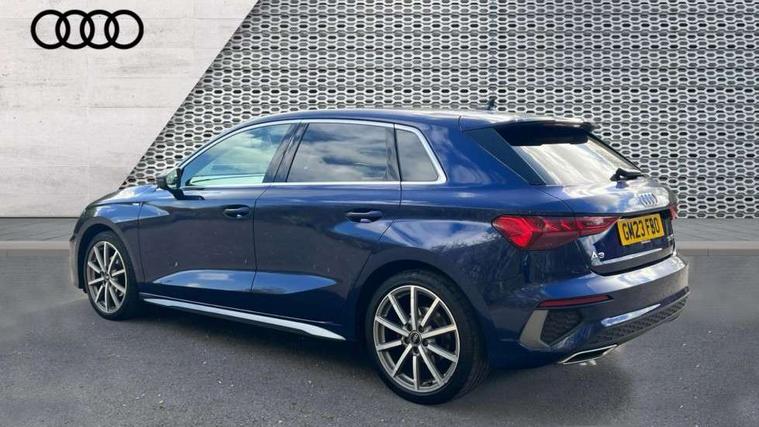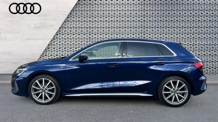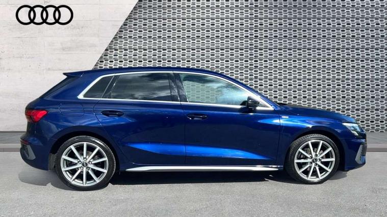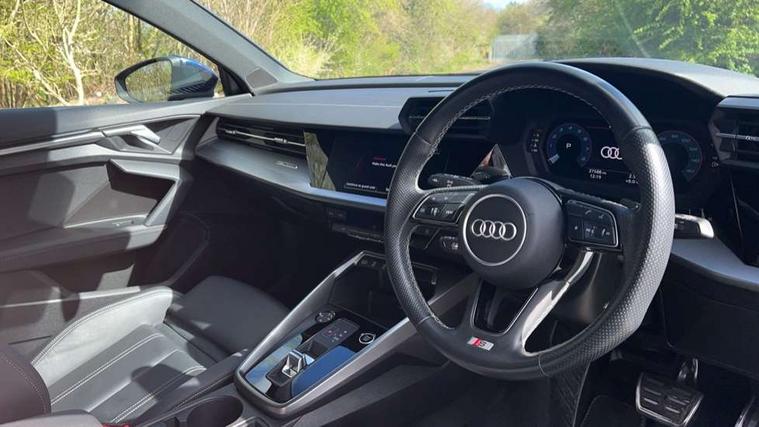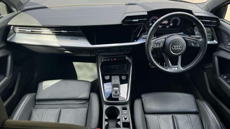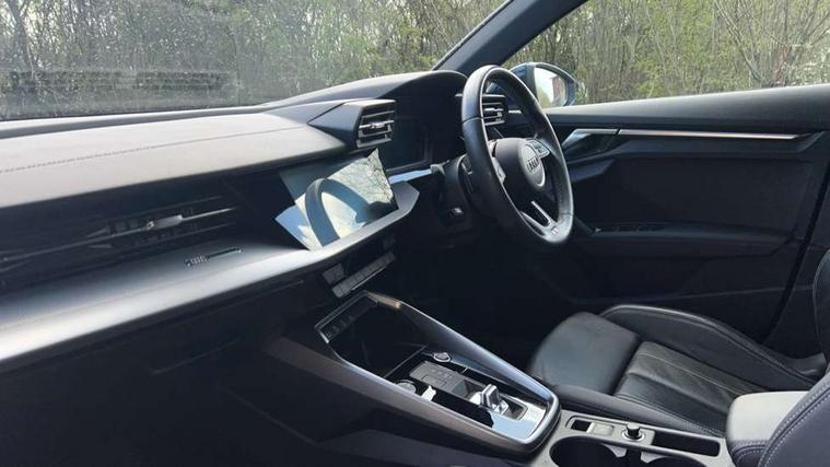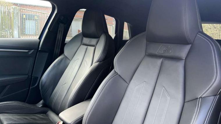 Audi drive select (Auto, Comfort, Dynamic, Efficiency and Individual), Audi smartphone interface, Audi Virtual Cockpit - 10.25" digital and colour instrument cluster, Automatic start/stop system with recuperation, Bluetooth interface, Camera based traffic sign recognition, Collision avoidance assistant, e-Call (emergency call), Electromechanical power speed sensitive steering, Lane departure warning system, MMI Navigation Plus with high resolution 10.1" colour touch screen display, Service indicator, Trip computer, Voice control system with natural language interaction, Sports suspension, 2xUSB-C connection with data and charging functions, 6 passive loudspeakers, DAB Digital radio, 3rd brake light, Acoustic glass windscreen, Aluminium window trim, Auto dimming frameless rear view mirror, Body colour exterior mirrors, Electrically adjustable/heated/folding/dimming door mirrors with kerb view includes integrated LED indications + kerb view function for passenger side, Front electric windows, Illuminated door sills with aluminium inserts at the front with S logo, LED daytime running lights, LED headlights with LED rear lights and dynamic rear indicators, Light and rain sensors, Privacy glass - dark tinted rear window, rear door and side windows, Rear electric windows, Rear side air outlets in grained matt black, Rear side wing doors, Rear wiper, S line bumpers, S roof spoiler, 12V socket and storage compartment in front centre console, 3 seat bench in 2nd row, 3 spoke leather multifunction steering wheel with paddle shift, 4 way electrically adjustable lumbar support for driver and front passenger, 60/40 split folding rear seat bench, Black cloth headlining, Dual zone electronic climate control, Front and rear centre armrest in artificial leather, Front and rear headrests, Front/rear floor mats, Height and reach adjustable steering wheel, Interior lighting - glove compartment light and right hand side, Luggage compartment floor covering, Manual boot compartment lid, Manually adjustable front seats, Seat side bolsters, Single front passenger seat, Stainless steel pedals and front footrest in black, Twin leather upholstery with front sports seats S embossed logo, Aluminium interior elements pack - A3 Sportback, LED interior lighting pack - A3 Sportback, S line styling pack - A3 Sportback, 3x3 point rear seat belts, Driver and front passenger airbag with passenger airbag deactivation, Electronic Stabilisation Control (ESC) including ABS, ASR and EDL, First aid kit with warning triangle and 2 safety vests, Front side airbags with head airbags and interaction airbag, Pre-sense front with pedestrian and cyclist detection, Seatbelt monitoring, Tyre pressure loss indicator, Anti theft alarm, Anti-theft wheel bolts, Electronically operated child locks, Immobiliser, Remote control central locking, Dark spectrum aluminium inlays, accent surfaces in the dashboard and centre console in platinum grey silk effect paint finish,