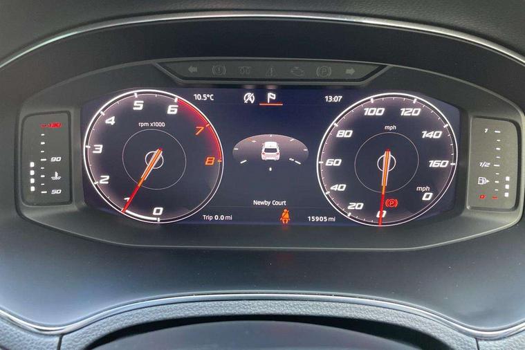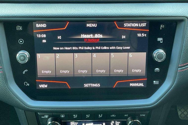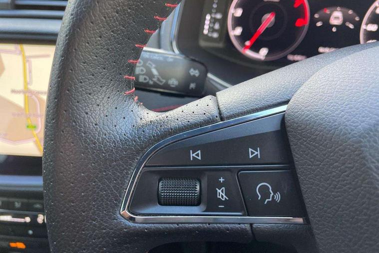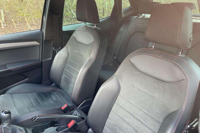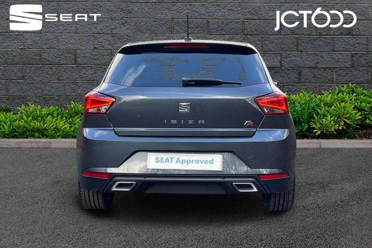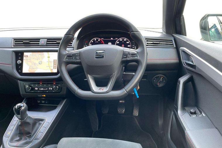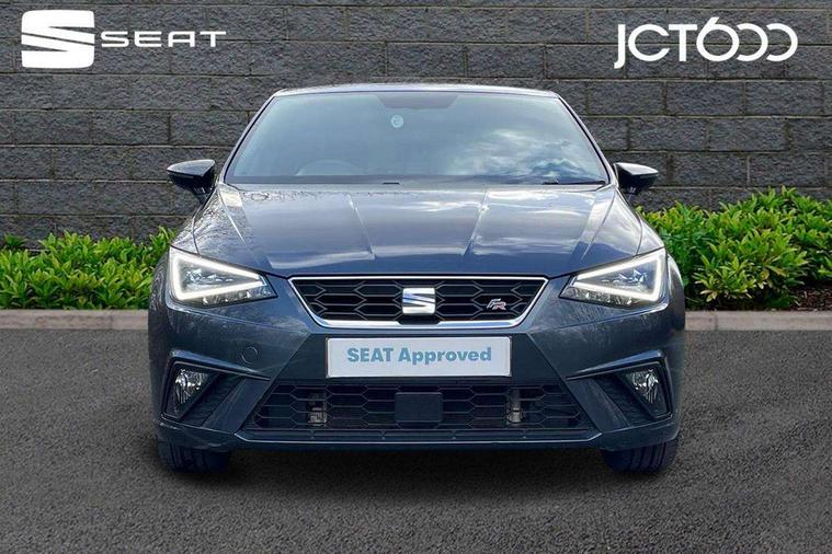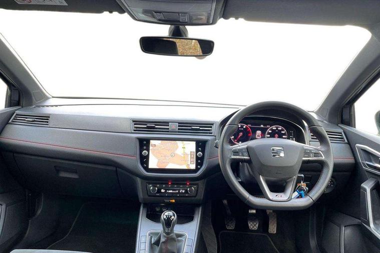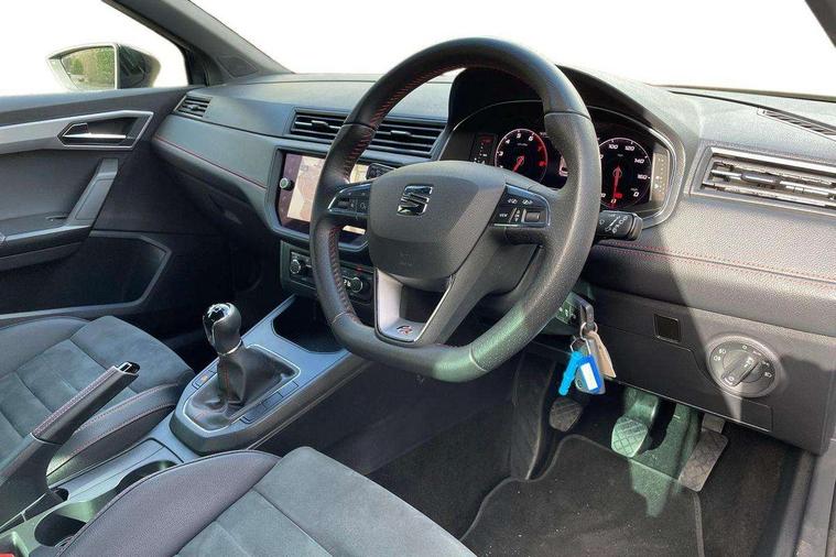 'Lights On' Reminder warning buzzer, Bluetooth Handsfree Phone Connection, Cruise control, Digital clock, Digital cockpit, Full Link Smartphone Integration with Mirror Link, Apple Car Play, Google Android Auto, Low fuel warning light, Outside temperature gauge, Power Steering, Satellite navigation system with 3D mapping, 8" touch screen, voice control and additional USB port, SEAT Drive profile, SEAT logo boot release, Trip computer, Sports suspension, 6 speakers, Auxiliary input socket, CD player, Digital Audio Broadcast (DAB) Tuner, Radio/MP3 player, SD card slot, SEAT USB media cable, Steering wheel mounted controls, USB port, Anti theft roof antenna, Auto dimming rear view mirror, Automatic headlights, Automatic rain sensing wipers, Body colour bumpers, Body colour door handles, Brilliant black door mirrors, Chrome front grille frame, Chrome grille, Coming/leaving home lighting function, Cornering front fog lights, Dark tinted rear windows, Electric folding door mirrors, Electric front windows, Electric headlight adjustment, Electrically adjustable and heated door mirrors, Exclusive FR rear bumper, Full LED headlights, LED daytime running lights, LED tail lights, Rear fog lights, Twin exhaust pipes, 3 rear headrests, 60/40 split folding rear seat, Door and steering wheel ice metal decorative inserts, Driver's sunvisor with ticket holder/vanity mirror, Dual zone climate control, Dust/pollen filter, Flat bottomed perforated leather steering wheel with red stitching and FR logo, Front courtesy lights, Front cupholders x 2, Front reading lights, Gear shift indicator, Glovebox, Height adjustable driver's seat, Height adjustable front/rear head restraints, Height adjustable passenger seat, Height/reach adjust steering wheel, Illuminated boot, Instrument lighting with brightness control, Leather dashboard, Leather handbrake, Microsuede cloth upholstery, Multi-colour ambient interior lighting, Passenger sunvisor, Rear top tether child seat ISOFIX attachment, Sports seats, Full LED headlight pack - Ibiza, 3 point seatbelts on all 3 rear seats, ABS, Active front headrests, Child locks on rear doors, Curtain airbags, Driver/Front Passenger airbags, ESP+EBA, Front assist (AEB), Front passenger airbag deactivation, Front side airbags, Hill hold control, Multi-Collision braking, Seatbelt warning, Tiredness recognition system, Tyre pressure monitoring system, Electronic engine immobiliser, Locking wheel bolts, Remote central locking + deadlocks, Volumetric alarm with back up horn, 18" Performance machined bi-colour alloy wheels,