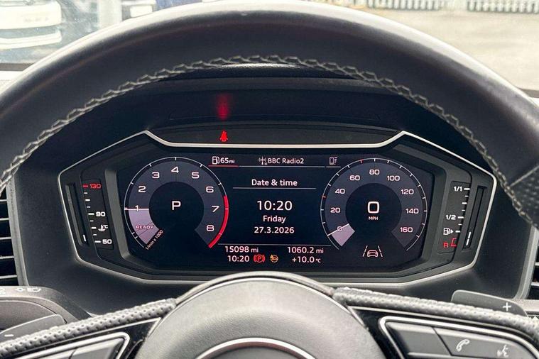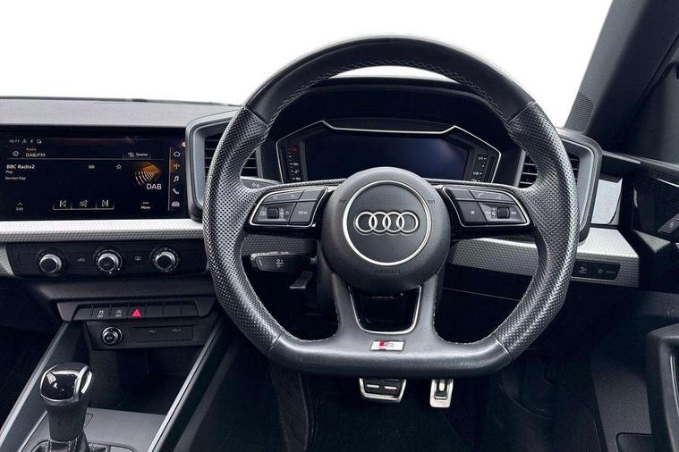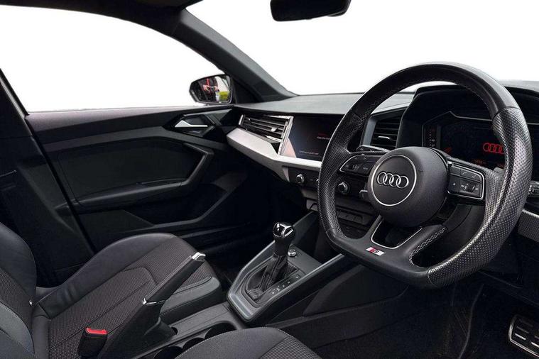 10.25" Digital instrument cluster display classis style instrument dials + speed, odometer, time, outside temperature, telephone menu + fuel level warning, Audi smartphone interface with connect compatible smartphone via USB directly MMI display + Nav, music, third party apps controlled via MMI controller, Automatic start/stop system, Bluetooth interface, Cruise control, Driver's information system, Electromechanical power steering, Emergency e-call, Lane departure warning system, Rear parking sensor, Service interval indicator, Speed limiter, Voice control system, Washer fluid level indicator, Sports suspension, 2 x USB type C connection points, 6 passive loudspeakers, DAB Digital radio, MMI radio plus with 10.1" colour MMI display screen and MMI touch, Auto dimming rear view mirror, Black side skirts, Body coloured bumpers, Door sill trims with aluminium inlays and logo, Electric front and rear windows, Electrically adjustable, heated, folding door mirrors with integrated LED side indicator, Front side air inlets in grained matt black and C frame in anthracite black, Front wing badges, Heat insulating glass windscreen and side windows, Heated rear windscreen, High level LED brake light, LED headlights with LED rear lights + dynamic rear indicators + headlight adjustment and high beam, turning light + LED daytime running lights, Privacy glass, Rain and light sensors, Rear fog lights, Rear side wing doors, Rear wiper, Side front spoiler lips in grained matt black, 12V socket in centre console with two cup holders, 3 rear seats with headrests, 3 seat bench in 2nd row, 3 spoke flat bottomed multi-function plus leather steering wheel with S badging, grips in preforated leather, contrast stitching and paddle shift, 40:60 Split folding rear seat or folded fully, Black cloth headlining, Driver and passenger seat with manual height adjust with forward and backwards adjustment, Front and rear black floor mats with contrast stitching in fine silver, Front head restraints, Front passenger seat, Height and reach adjustable steering wheel, ISOFIX child seat mounting for front passenger and outer rear seats including top tether attachment point of outer rear seats, Leather gear knob with aluminium trim, Leather handbrake grip, Luggage compartment light with front and rear reading lights, Manual air conditioning, Manually adjustable lumbar support in front seats, Stainless steel pedals, Black styling pack - A1 Sportback Black Edition, LED interior lighting pack - A1, Luggage compartment pack - A1, 3x3 point rear seatbelts, Audi pre-sense front with pedestrain and cyclist recognition, Brake assist function, Driver and front passenger airbag with front side and head airbags, Electronic Stability Control including ABS, EBD, ASR and EDL, Front passenger airbag deactivation switch, Hill hold assist, Manual rear child locks, Seatbelt height adjustment for front seats, Seatbelt monitoring, Tyre pressure warning light, Warning triangle and first aid kit, Anti theft alarm, Anti theft wheel bolts and loose wheel warning, Immobiliser, Remote central locking with 2 foldaway keys, Aluminium trim for control switches, air vents and digital instrument cluster, Black dashboard, Silver grey inlays polygon structure in diamond paint finish, Structured grey accent areas including air vents, door handle recesses and centre console in quartz paint finish,