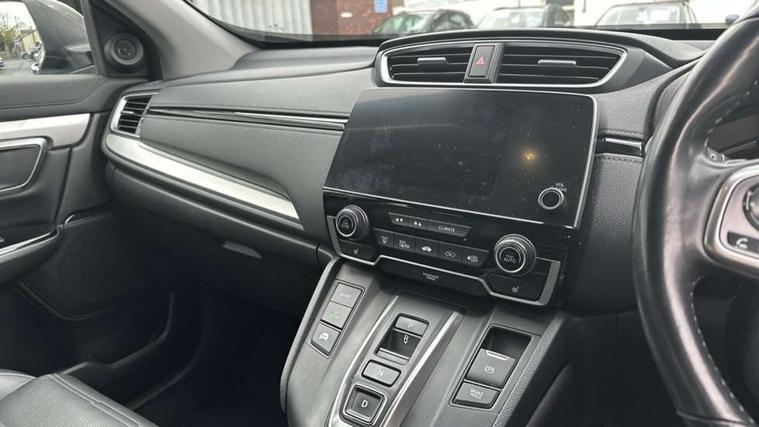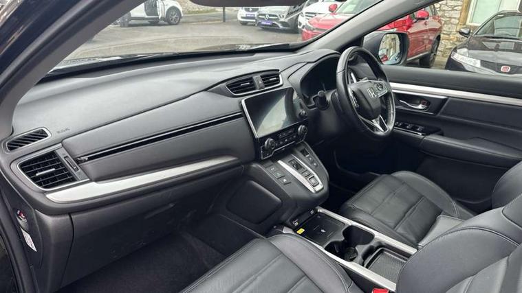 Adaptive cruise control, Agile handling assist, BLIS (Blind Spot Information System) with dual power heated blind spot mirrors, Bluetooth hands free telephone connection, E-call, Economy mode, Electric power steering, Emergency stop signalling system, Forward collision warning, Front parking sensors, Hands free tailgate, Head up Display, Honda CONNECT with GARMIN Navigation + 7" touchscreen, DAB radio, Apple CarPlay, Android Auto, Aha app integration and internet browsing, Intelligent multi info display, Lane departure warning system, Lane keep assist system, Low speed following, Rear parking sensors, Rear view camera, Road departure mitigation, Speed limiter, Traffic sign recognition, Wireless charging, Drive mode (Econ, Sport, EV), Vehicle stability assist, 2 USB sockets in rear, 2x USB sockets in front, 9 speakers, DAB Digital radio, Dashboard centre speaker, Front tweeters, Steering wheel mounted controls, Subwoofer, Aspheric door mirrors, Auto dimming rear view mirror, Auto wipers, Automatic headlights with dusk sensor, Body colour bumpers, Body colour door handles, Body colour door mirrors, Chrome grille, Cornering light, Door mirrors tilt when reversing, Electric front windows/one touch facility, Electric rear windows + one touch facility, Electrically adjustable and heated door mirrors, Electrically retractable door mirrors, Front LED Indicator lights, Front windscreen de-icer, High beam assist, LED daytime running lights, LED front fog lights, LED Headlights, LED rear lights, Panoramic opening glass sunroof, Rain sensor, Rear privacy glass, Rear side wing doors, Rear wiper, Roof rails, Shark fin roof aerial, Tailgate spoiler, Third brake light, Welcome home function, 3 seat bench in 2nd row, 60/40 split folding rear seat, 8 way electrically adjustable drivers seat + mirror memory, Accessory sockets, Ambient interior lighting, Ambient light in roof, AWD emblem rear, Cargo hooks, Courtesy lights, Driver's electric adjustable lumbar support, Driver/passenger front seatback pockets, Driver/passenger sunvisors with illuminated vanity mirrors, Dual zone automatic climate control, Electric lumbar adjustment on passenger's seat, Footwell ambient lighting, Front centre armrest, Front map lights, Front passenger seat height adjust, Heated front seats, Heated rear seats, Heated steering wheel, Hybrid emblem, Illuminated glovebox, Instrument panel with garnish wood film, Isofix child seat preparation, Leather steering wheel, Leather upholstery, Paddle shift controls, Rear air vents, Rear centre armrest, Rear headrests, Rear reading lights, Silver interior door handles, Silver interior panels, Single front passenger seat, Sunglasses holder with mirror, Tilt/telescopic adjustable steering wheel, Tonneau cover, Trunk light, 5 x 3 point seatbelts, ABS/EBD, Anti-whiplash front headrests, Brake assist function, Collision mitigation braking system, Deflation detection system, Driver airbag, Electronic parking brake with auto hold, Front and rear curtain airbags, Front and rear seat belts with emergency locking retractor (ELR), Front centre airbag, Front passenger airbag, Front side airbags, Hill start assist, Manual child lock in rear doors, Passenger airbag deactivate switch, Honda super locks, Immobiliser, Security alarm, Selectable door unlock, Smart entry + Smart start, Ultrasonic security sensor, Tyre repair kit,