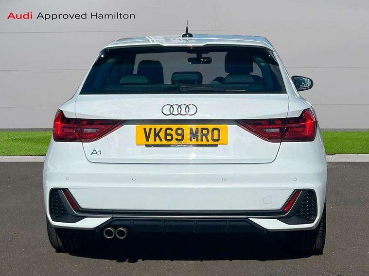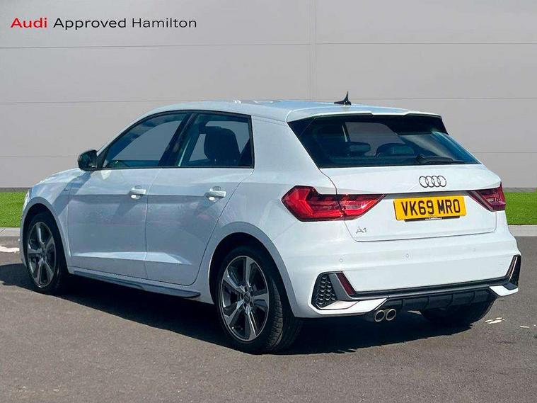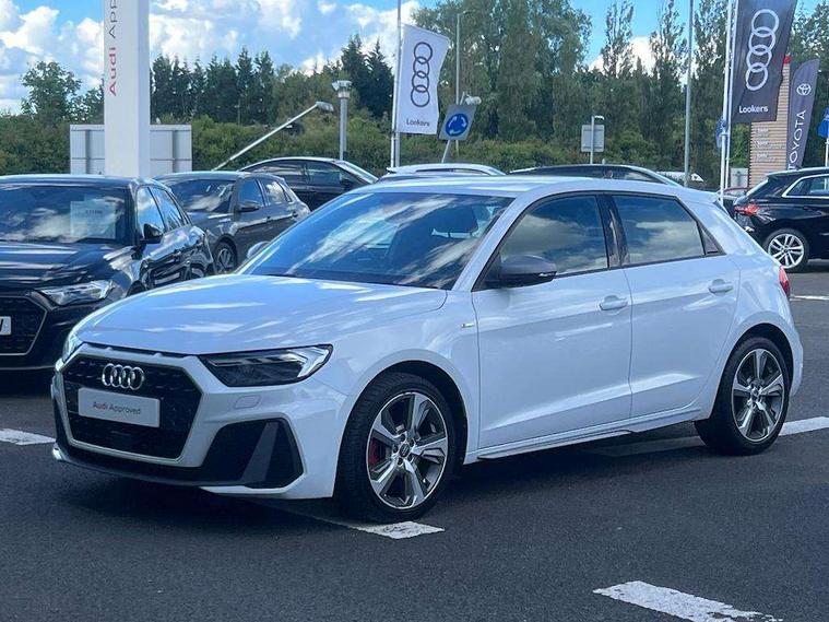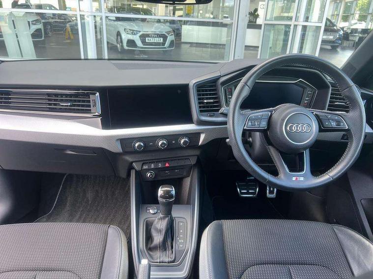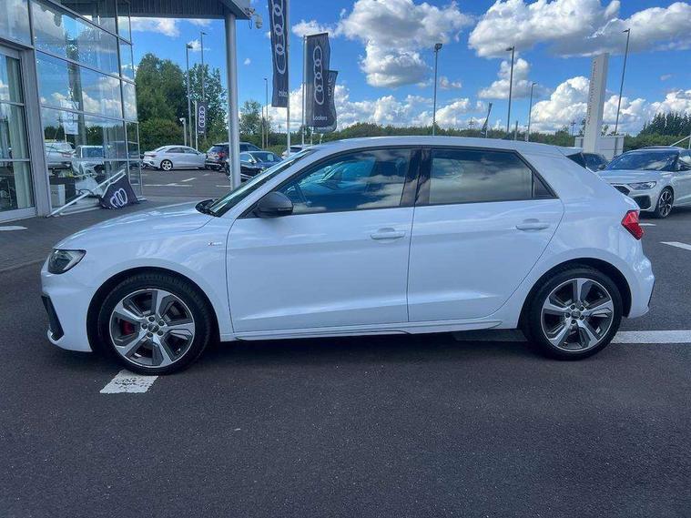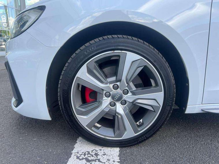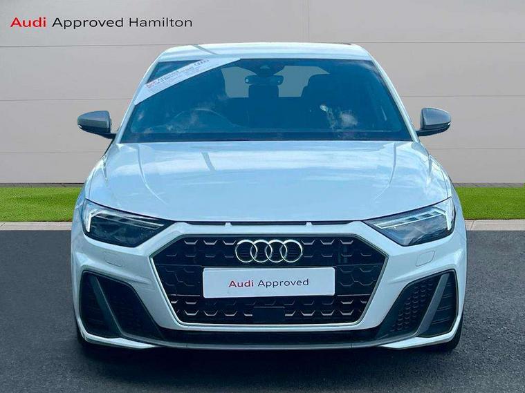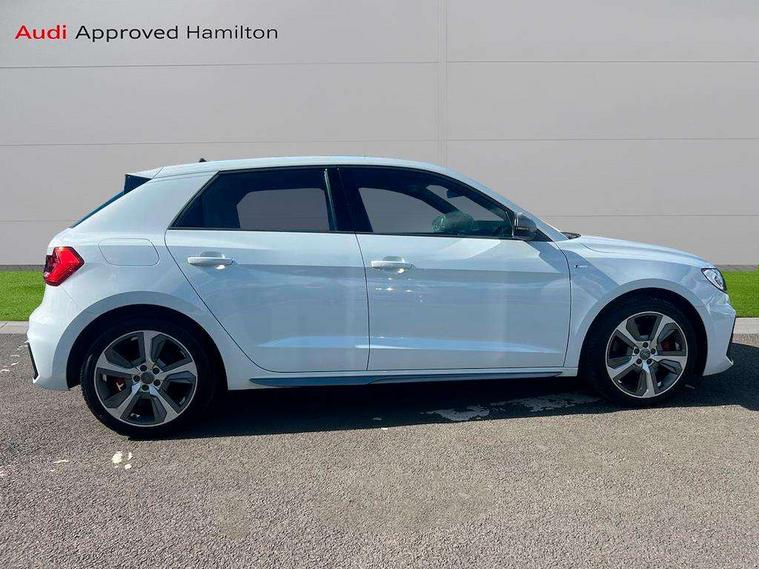 10.25" Digital instrument cluster display classis style instrument dials + speed, odometer, time, outside temperature, telephone menu + fuel level warning, Audi connect safety emergency and service including E-call, Audi drive select - power steering assistance + engine + gear shift 3 preset modes (auto, dynamic, efficiency and an Individual mode), Audi smartphone interface with connect compatible smartphone via USB directly MMI display + Nav, music, third party apps controlled via MMI controller, Automatic start/stop system, Bluetooth interface, Cruise control, Driver's information system, Electromechanical power steering, Lane departure warning system, Rear parking sensor, Service interval indicator, Speed limiter, Voice control system, Washer fluid level indicator, Sports suspension with adjustable dampers, 1 x SDXC card reader, 1 x USB type C and 1 USB type A charging points, DAB Digital radio, MMI radio plus with 8.8" colour MMI display screen and MMI touch, Audi rings logo foil in platinum grey, Auto dimming rear view mirror, Deletion of engine technology designation at rear, Door mirrors in platinum grey, Door sills with aluminium inlays and S Line logo, Electric front and rear windows, Electrically adjustable, heated, folding door mirrors with integrated LED side indicator, Front side air inlets in grained matt black and C frame in titanium black, Heat insulating glass windscreen and side windows, Heated rear windscreen, LED headlights with LED rear lights + dynamic rear indicators + headlight adjustment and high beam, turning light + LED daytime running lights, Radiator grille and rear diffuser in matt titanium black, Radiator protective grille frame in matt aluminium silver, Rain and light sensors, Rear fog lights, Rear wiper, S line badges on front wings, Side front spoiler lips in grained matt black, Visible tailpipes, 12V socket in centre console with two cup holders, 3 rear seats with headrests, 40:60 Split folding rear seat or folded fully, Black cloth headlining, Driver and passenger seat with manual height adjust with forward and backwards adjustment, Front and rear black floor mats with contrast stitching in fine silver, Front head restraints, Height and reach adjustable steering wheel, ISOFIX child seat mounting for front passenger and outer rear seats including top tether attachment point of outer rear seats, Leather gear knob with aluminium trim, Luggage compartment light with front and rear reading lights, Manually adjustable lumbar support in front seats, Stainless steel pedals, LED interior lighting pack - A1, Luggage compartment pack - A1, S line exterior styling pack - A1 Sportback, 3x3 point rear seatbelts, Audi pre-sense front with pedestrain and cyclist recognition, Brake assist function, Driver and front passenger airbag with front side and head airbags, Electronic Stability Control including ABS, EBD, ASR and EDL, Front and rear seatbelt reminder, Front passenger airbag deactivation switch, Hill hold assist, Red brake calipers, Seatbelt height adjustment for front seats, Seatbelt monitoring, Tyre pressure warning light, Warning triangle and first aid kit, Anti theft alarm, Anti theft wheel bolts and loose wheel warning, Immobiliser, Remote central locking with 2 foldaway keys, Aluminium trim for control switches, air vents and digital instrument cluster, Silver grey inlays polygon structure in diamond paint finish, Structured grey accent areas including air vents, door handle recesses and centre console in quartz paint finish,