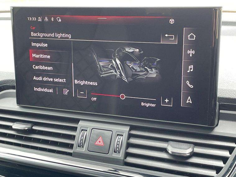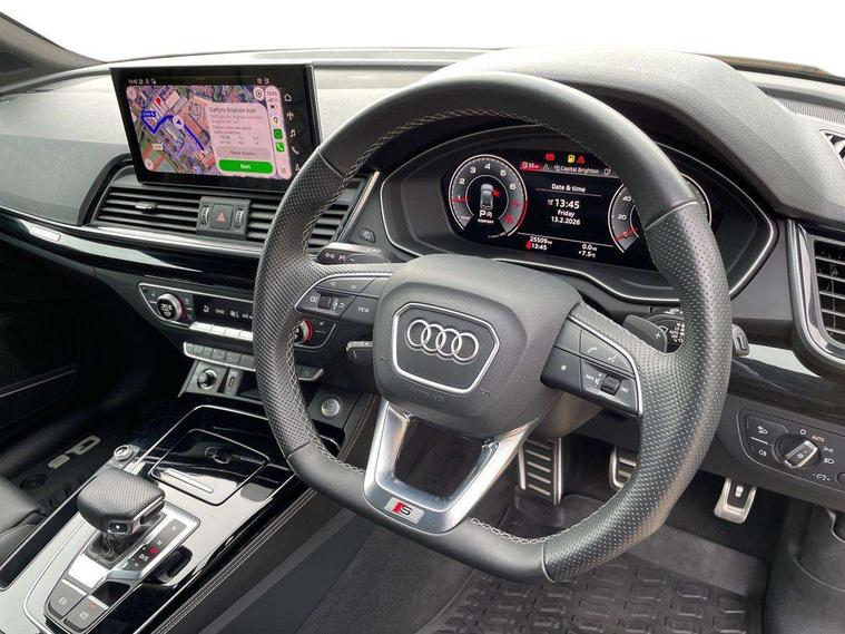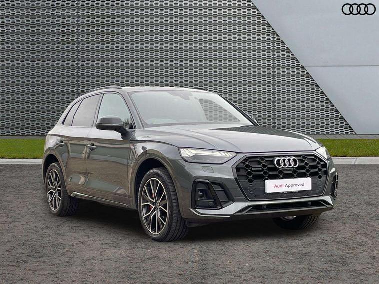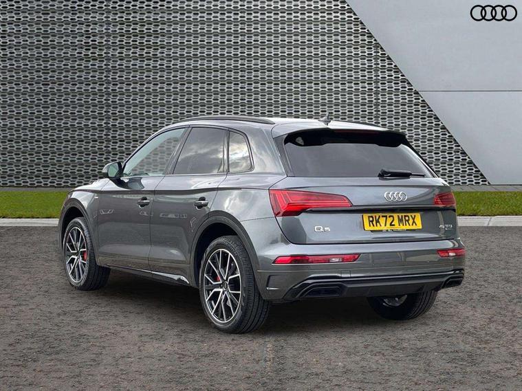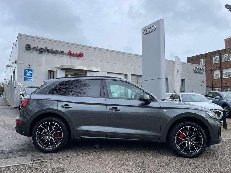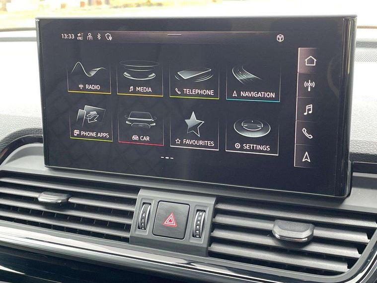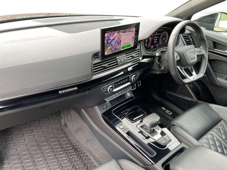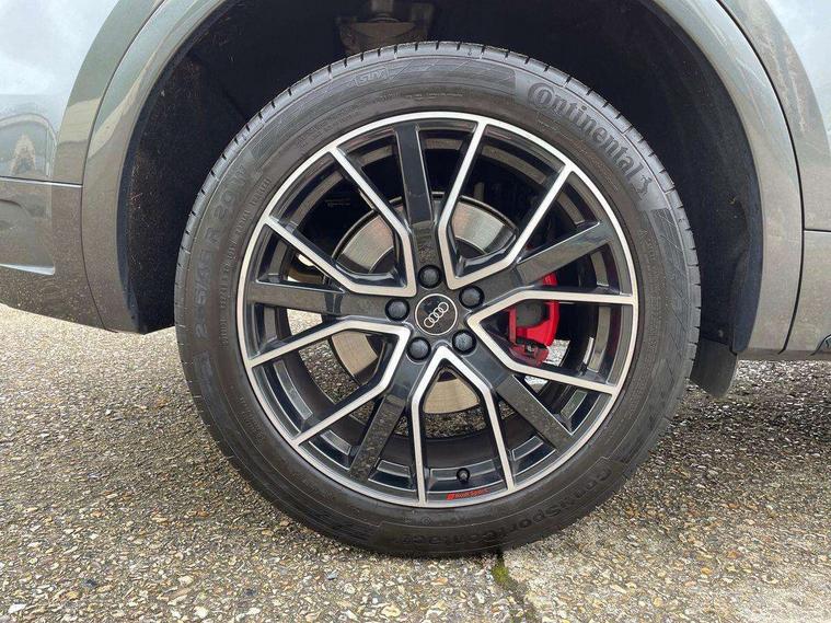 Audi connect safety and service (e-call), Audi connect with Amazon Alexa Integration, Audi drive select, Audi virtual cockpit plus with 12.3" screen and three different layout designs, Audi wireless smartphone interface, Automatic start-stop system with coasting functionality and efficiency programme, Bluetooth interface, Electro - mechanical power assisted steering, MMI navigation plus with 10.1" touch screen, Power tailgate, Reversing camera, Service interval indicator, Voice control system with Audi hotword activation "Hey Audi", Quattro on demand, S line sports suspension, DAB Digital radio, Acoustic windscreen, Audi matrix LED headlights with dynamic front and rear indicators, Audi rings at front and rear in black, Audi rings decal on rear doors, Auto dimming door mirrors, Auto dimming rear view mirror, Automatic headlights and windscreen wipers, Black door mirrors, Black roof rails, Body colour bumpers, Body colour underbody protection, Chrome plated exhaust trims, Daytime running lights, Door sills in Selenite silver, Electric adjustable/heated/folding door mirrors, Front air inlet surrounds in titanium black, Front and rear electric windows, Headlight washers, High gloss black B pillar trims and triangular rear door trim, High level LED brake light, Rear chrome trim strip below lights, Rear privacy glass and rear side windows, Rear side wing doors, Rear wiper, Roof bars, S Line rear spoiler, 2 x USB charging port with aux input socket, 3 rear headrests, 4 way electric lumbar support for driver and front passenger, 40:20:40 split folding 3 rear bench seat in 2nd row with rear centre armrest, Black cloth headlining, Comfort front centre armrest, Contrast stitching on seats, steering wheel and gear lever gaiter, Deluxe 3 zone electronic climate control, Electrically adjustable front seats, Fine Nappa leather upholstery with diamond pattern contrast stitching + front sport seats with S embossed logo, Front/rear floor mats, Gear lever in black leather, Heated front seats, Height adjustable front head restraints, Height/reach adjustable steering column, Illuminated door sill trims with S logo, ISOFIX child seat mounting and top tether, Rear seat bench plus, Removable luggage compartment floor, Single front passenger seat, Stainless steel pedals, Sunvisors with vanity mirrors, Black styling package - Q5 Edition 1, Extended interior upholstery pack - Q5, Extended LED Interior multi coloured Lighting Pack - Q5, 3 point seatbelts on all seats, 6 airbags - Driver, front passenger, curtain and side airbags, Electrically operated child locks on rear doors, Electromechanical parking brake, Electronic stabilisation control including ABS, ASR and EDL, Front and rear brake calipers painted in red, Front passenger airbag deactivation, Hill descent control, Hill hold assist, Multi collision brake assist, Pop-up bonnet for pedestrian protection, Pre sense city, Seat belt force limiter, Seatbelt monitoring, Tyre pressure warning, Warning triangle and first aid kit, Anti theft alarm, Anti-theft wheel bolts, Keyless Go access/ignition system, Remote central locking, Piano black finish inlay,