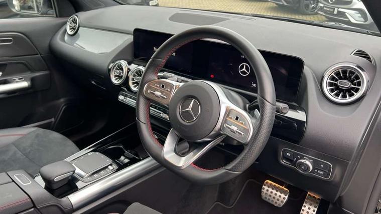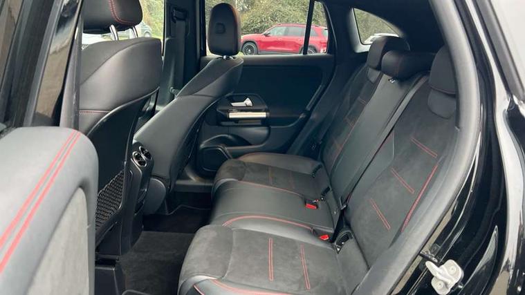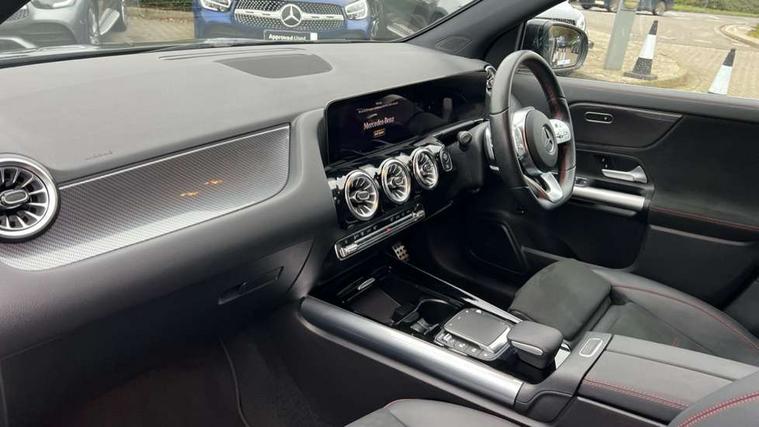 10.25 inch touchscreen central media display, 10.25" Digital instrument cluster display screen, Active lane keeping assist, Attention assist, Cruise control + speed limiter, Direct steering, DYNAMIC SELECT with a choice of driving modes (ECO, Comfort, Sport and Individual), ECO start/stop function, Fluid level warning indicator for fuel, oil, coolant and washer fluid, Hard-disk navigation, Hey Mercedes Voice activation, Lamp failure indicator, Mercedes me connect including emergency call system, accident recovery, breakdown management and maintenance, Mercedes me remote services, Multi function trip computer, Outside temperature gauge, Owners manual and service booklet in English, Pre-installation of private car share, Radio aerial integrated into front and rear windshields, Service indicator (ASSYST), Smartphone integration with Apple CarPlay and Android auto, Speed limit assist, Status display for rear seat belts in instrument cluster, Lowered comfort suspension, Rear axle multi-link, 2 USB ports (type C) in rear stowage compartment and one in front of center console, Bluetooth connectivity including audio streaming, DAB Digital radio, MBUX multimedia system, Media interface, Mercedes-Benz (225w) sound system with 10 speakers, Adaptive brake lights, Aerial for GPS, Aluminium roof rails, AMG front and rear apron, AMG specific/dual flow exhaust pipes in chrome (non-functional), Automatic headlamp activation, Beltline strips and weather strip in chrome, Black grained claddings with chrome parts, Body colour bumpers, Body colour door mirrors, Body coloured door handles with chrome insert for keyless entry, Car wash function, Dark privacy glass from B-pillar backwards, Electric front windows, Electric rear windows, Electrically adjustable and heated door mirrors with integrated LED indicators, Front bumper with underride guard in high gloss chrome, Heat insulating dark tinted glass, Heated glass rear windscreen + timer control, Heated windscreen wash system, Interior mirror with black reading lamps and frameless, LED high performance headlamps with integrated LED daytime running lights, LED tail lights in two piece design, LED third brake light, Matt titanium grey front and rear apron trim, Rain sensor windscreen wipers, Rear fog lights, Rear side wing doors, Rear wiper, Roof spoiler, Single lamella raditor grille with chrome dotted diamond grille and inlay, 12V power socket in centre console, 3 seat bench in 2nd row, 3 spoke multifunction sports steering wheel in nappa leather with flattened bottom and perforated grip area, 40:20:40 split folding rear seats with backrest, Adjustable head restraints, Air conditioning - Two zone thermotronic luxury automatic climate control with display, Ambient lighting in front headrests, AMG floor mats in black with AMG lettering in front, Artico man-made leather/Microcut microfibre upholstery with red contrast stitching, Auto Mercedes-Benz child seat recognition sensor, Black roof lining, Brushed door pulls in silver chrome, Courtesy light in boot, Floor mats in velour, Front centre armrest with stowage, Galvanished gear shift paddles on steering wheel, Heated front seats, illuminated door sills with changeable cover, Illuminated glovebox, Interior lighting - 64 colour Ambient lighting, Leather trimmed gearknob, Luggage net on driver/front passenger seat backrest, Manually height and reach adjustable steering column, Multi-gesture touchpad control on center console, Single front passenger seat, Sports pedals in brushed stainless steel with black rubber studs, Sports seats, Stowage compartment in centre console, Stowage compartment with retractable cover, Sunvisors with illuminated vanity mirrors, Twin front cup holders, Two outer rear seat isofix and top tether child seat fixing points, AMG body styling pack - GLA, Comfort seat pack - GLA Class, Interior lighting with light and sight pack - GLA, Keyless go comfort package - GLA, Load compartment pack - GLA, Mirror pack - GLA Class, Off road engineering pack - GLA, Parking pack - GLA, 3 rear 3 point seatbelts, ABS with Brake Assist, Active bonnet pedestrain safety measure which detects an impact and raises bonnet by 65mm, Active brake assist includes forward collision warning system with autonomous braking, Adaptive brake assist with hold function and hill start assist, Bonnet with power domes, Brake pad wear warning indicator, Childproof locks manually operated for rear doors and electrically operated for rear power windows, Crash responsive emergency lighting, Driver and passenger head and side airbags, Drivers knee airbag, Dual stage driver/passenger airbags, Electronic parking brake, ESP curve dynamic assist, ESP with ASR, Front and rear seatbelt reminder, Front brake callipers with Mercedes Benz logo lettering on front, Front passenger seat occupancy sensor, Internally ventilated brakes with perforated brake discs at the front, Sports braking system, Tyre pressure monitoring system, Warning triangle and first aid kit, Window airbags, Alarm system with immobiliser and interior protection -Thatcham category 1, Keyless entry lock/unlock, Keyless Go starting function, Remote central locking and crash sensor with emergency opening function, Urban guard vehicle protection, Vehicle key with decorative surround in chrome, Carbon structure trim, Chrome air vent surrounds, 19" AMG 5 twin spoke light alloy wheels painted in high gloss black with high sheen finish, Summer tyres, Tirefit tyre sealant kit,