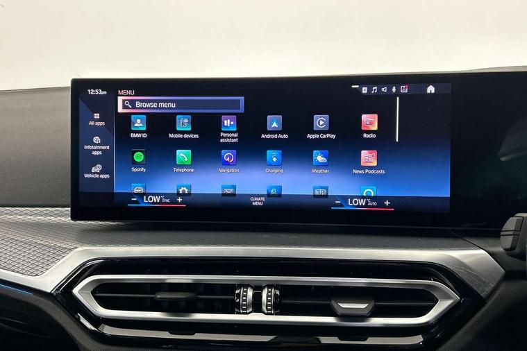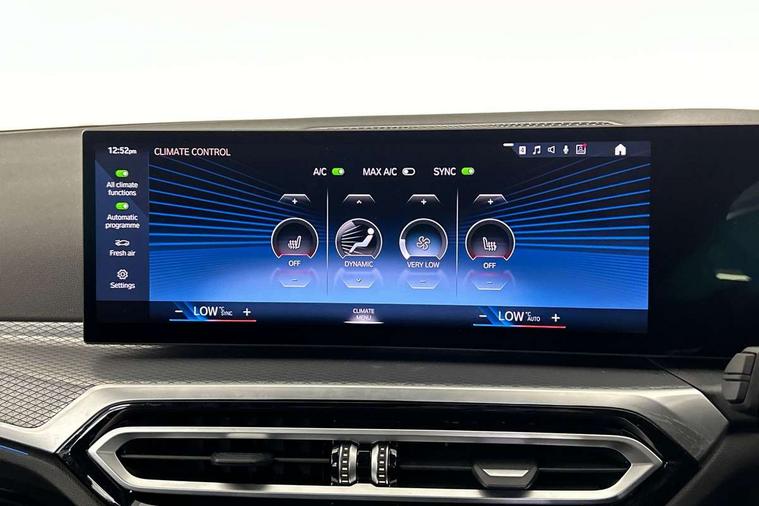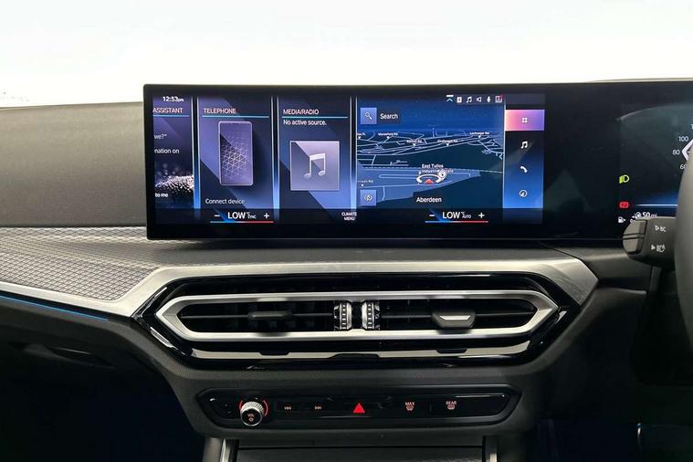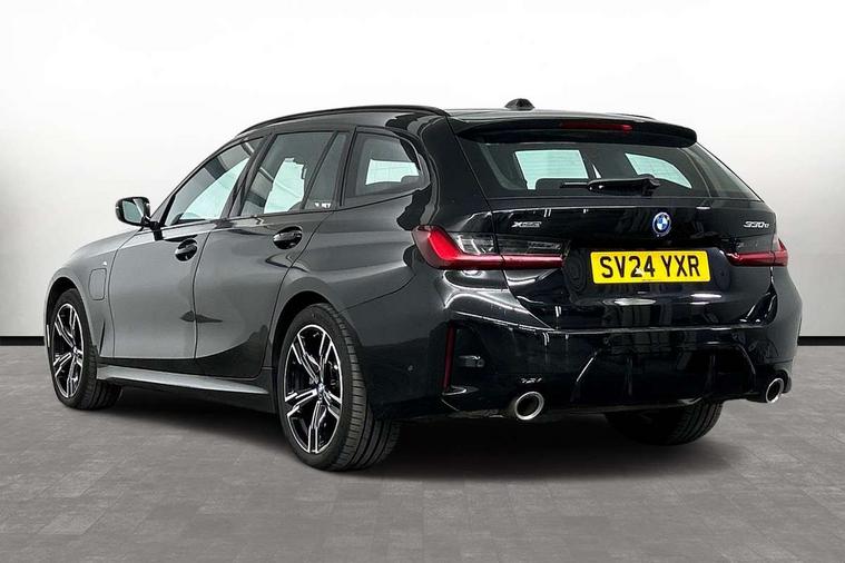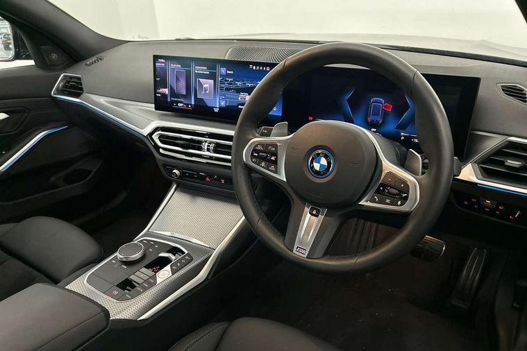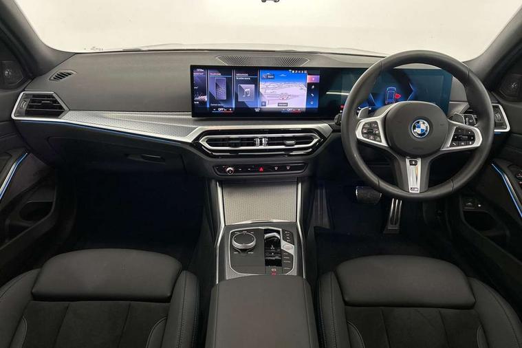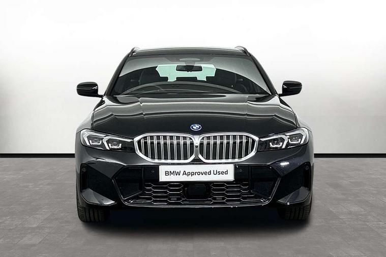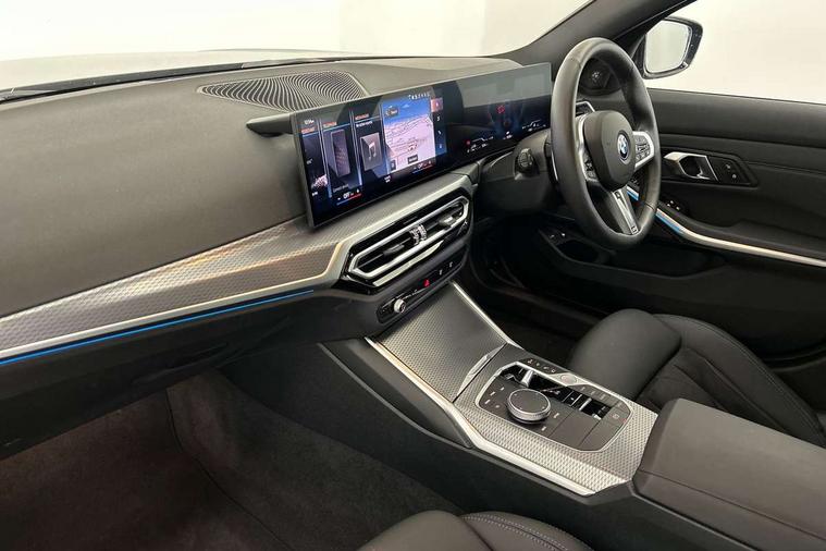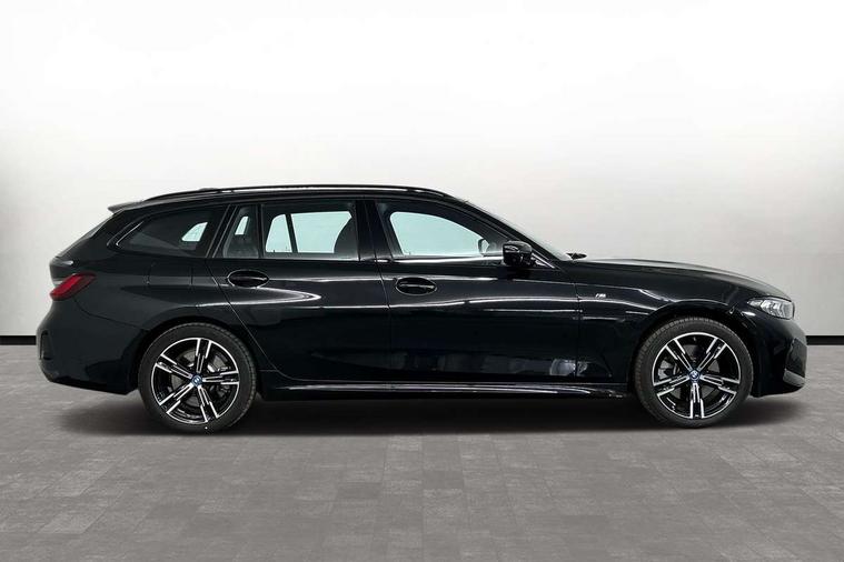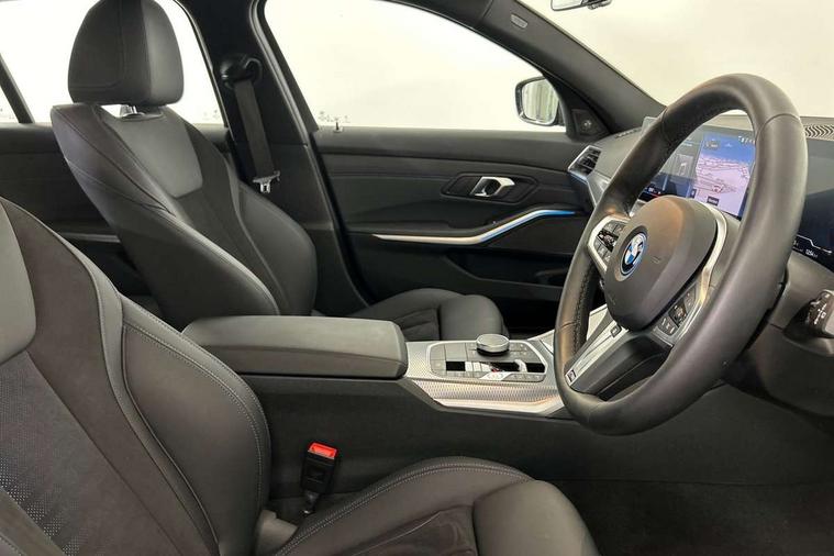 Active guard plus, Attentiveness assist, Automatic Start/stop button, BMW Iconic sounds electric, BMW iDrive, BMW Teleservices, Condition based service, ConnectedDrive Services, Driving experience switch, Live cockpit plus with Navigation + 12.3" instrument display + 14.9" display, Intelligent voice assist, 2 USB, 4G LTE connect, Oil sensor for level and grade, PAS, Preparation for driver assistance, Shifting point display, Double joint spring strut front axle, Fast charging cable - Mode 3, Fuel tank breather system, Sport automatic transmission with steering-wheel mounted gearshift paddles and launch control, Standard suspension, DAB tuner, 3rd brake light, Acoustic glazing, Automatic headlight beam throw control with load dependent regulating reaction, dynamic compensation of braking dive and acceleration squat, BMW emblem, engine compartment lid and tailgate, Body colour roof fin, Door sill strips, Electric windows - front and rear, with open/close fingertip control, anti-trap facility and comfort closing, Follow me home headlight function, Front and rear bumper system with replaceable deformation elements, Front apron plastic in body colour, Fuel filler flap - right rear in body colour, Heated washer jets, High gloss shadow line exterior trim, High gloss shadow line roof rails, Illuminated bow type door handles in body colour drivers side with door lock, Interior rear view electrochromatic mirror with automatic anti dazzle function, LED rear lights, Licence plate panel integrated into front bumper and tailgate, Matt black B-pillar finsher, Matt black window recess cover, Model designation on right side of tailgate, One piece front bumper cover including towing eye cover in body colour, Rain sensor with automatic headlight activation, Rear side wing doors, Rear wiper, Reversing lights, Side frame decorative moulding black matt, Visible exhaust tailpipe finisher, Welcome lights in interior and door handle area, 12V power socket in front storage compartment, 2 front cupholder in centre console with clamping elements and matt black inlay, 3 seat bench in 2nd row, 3 zone automatic air conditioning, 40:20:40 split folding rear seat with loading system, Additionaly light carpet projects an ambient light design onto the left and right entering and exiting area, Ambient door handle light, Ambient lighting front and rear with 9 selectable colours, Ambient storage compartment lighting in the centre console, Anthracite headlining, Armrest integrated in front and rear door trim + front centre console armrest, Battery in luggage compartment, BMW ID, Contour lighting in instrument panel and door trim panel, Cruise control operation in steering wheel, Driver backrest width adjustment, Folding rear centre armrest with 2 cupholders, Front and rear ambient footwell lighting, Front and rear door exit lighting (left / right), Front and rear headrests, Front and rear reading lights, Front and rear velour floor mats, Front sport seats, Heated front seats, Height adjustable mechanically and infinitely variable steering column, Illuminated armrest storage compartment, Illuminated glove compartment, Illuminated luggage compartment, Lashing eyelets in luggage compartment, M Sport multifunction leather steering wheel, Make-up mirror lights, Single front passenger seat, Standard seat for driver and passenger with manual adjustment, Sunvisors with vanity mirrors and ticket pocket, Toolkit located in luggage compartment, Connected pack professional - 3 Series Saloon/Touring, Interior and exterior mirror pack - 3 Series Touring/Saloon, M Aerodynamics package - 3 Series Saloon/Touring, M sport exterior styling pack - 3 Series Saloon/Touring, Storage compartment pack - 3 Series Saloon/Touring, 3x3 point rear seatbelts, BMW emergency call, Child locks on rear doors, Crash sensor activating of airbags, Unlocking doors, hazard warning lights, fuel cut off, interior lighting+activation of safety battery terminal clamp, Driver and front passenger with seat occupancy detection for driver's and passenger side, Driver and passenger side airbags, body protection at side and airbags deploy from seat backrests, Dynamic brake control, Dynamic stability control + (DSC+) - Anti-lock Braking System (ABS) with brake assist and cornering brake control + Automatic Stability Control (ASC), Dynamic Traction Control - DTC, Electromechanical parking brake including automatic hold function and automatic release of the parking brake when pulling away, Electronic differential lock control (EDLC), Head airbags in 1st and 2nd row, head protection at side, curtain airbags open from headliner above 1st and 2nd row, Plastic fuel tank, Side impact protection, Tyre pressure monitoring with three level warning strategy, Ventilated front and rear disc brakes, Warning triangle and first aid kit, Alarm system, Centre lock switch, Closing system with central locking, Electronic vehicle immobiliser,