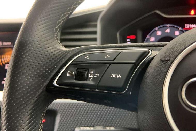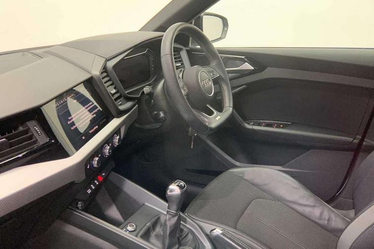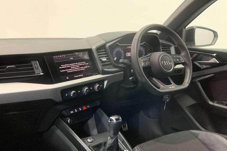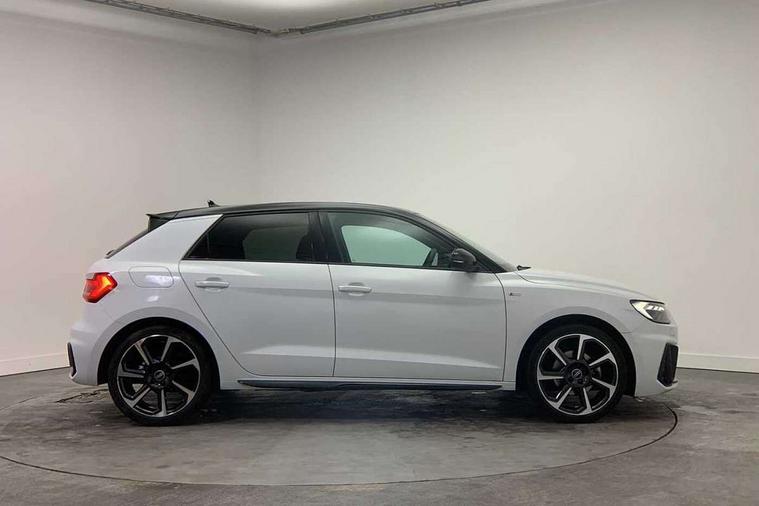 10.25" Digital instrument cluster display classis style instrument dials + speed, odometer, time, outside temperature, telephone menu + fuel level warning, Audi connect safety emergency and service including E-call, Audi drive select - power steering assistance + engine, Audi smartphone interface with connect compatible smartphone via USB directly MMI display + Nav, music, third party apps controlled via MMI controller, Automatic start/stop system, Bluetooth interface, Cruise control, Driver's information system, Electromechanical power steering, Lane departure warning system, Service interval indicator, Speed limiter, Voice control system, Washer fluid level indicator, Sports suspension, 1 x SDXC card reader, 2 x USB type C connection points, DAB Digital radio, MMI radio plus with 8.8" colour MMI display screen and MMI touch, Auto dimming rear view mirror, Black door mirrors, Black side skirts, Body coloured bumpers, Door sill trims with aluminium inlays and logo, Electric front and rear windows, Electrically adjustable, heated, folding door mirrors with integrated LED side indicator, Front side air inlets in grained matt black and C frame in titanium black, Heat insulating glass windscreen and side windows, Heated rear windscreen, LED headlights with LED rear lights + dynamic rear indicators + headlight adjustment and high beam, turning light + LED daytime running lights, Radiator protective grille frame in matt aluminium silver, Rain and light sensors, Rear diffuser strip in matt titanium black, Rear fog lights, Rear wiper, Side front spoiler lips in grained matt black, 12V socket in centre console with two cup holders, 3 rear seats with headrests, 3 spoke flat bottomed multi-function plus leather steering wheel with S badging, grips in preforated leather and contrast stitching, 40:60 Split folding rear seat or folded fully, Black cloth headlining, Driver and passenger seat with manual height adjust with forward and backwards adjustment, Front and rear black floor mats with contrast stitching in fine silver, Front head restraints, Height and reach adjustable steering wheel, ISOFIX child seat mounting for front passenger and outer rear seats including top tether attachment point of outer rear seats, Leather gear knob with aluminium trim, Luggage compartment light with front and rear reading lights, Manually adjustable lumbar support in front seats, Stainless steel pedals, Black styling pack - A1 Sportback Black Edition, LED interior lighting pack - A1, Luggage compartment pack - A1, 3x3 point rear seatbelts, Audi pre-sense front with pedestrain and cyclist recognition, Brake assist function, Driver and front passenger airbag with front side and head airbags, Electronic Stability Control including ABS, EBD, ASR and EDL, Front passenger airbag deactivation switch, Hill hold assist, Seatbelt height adjustment for front seats, Seatbelt monitoring, Tyre pressure warning light, Warning triangle and first aid kit, Anti theft alarm, Anti theft wheel bolts and loose wheel warning, Immobiliser, Remote central locking with 2 foldaway keys, Aluminium trim for control switches, air vents and digital instrument cluster, Silver grey inlays polygon structure in diamond paint finish, Structured grey accent areas including air vents, door handle recesses and centre console in quartz paint finish, 18" 7 spoke rotor design alloy wheels in gloss anthracite black, diamond cut finish,