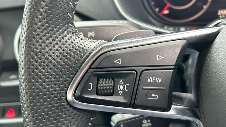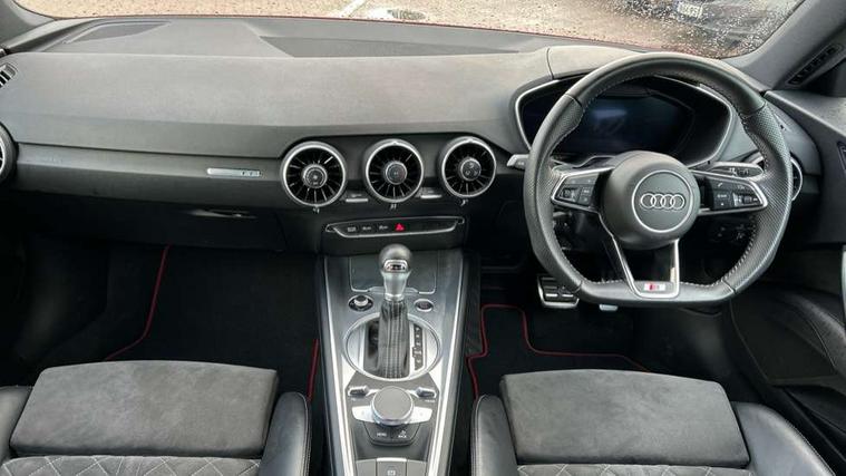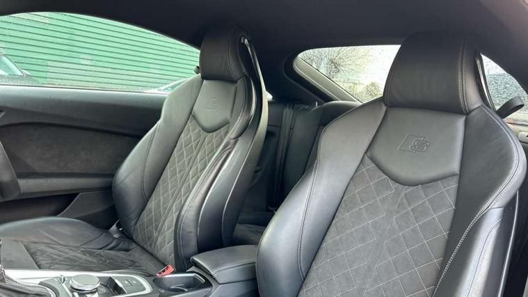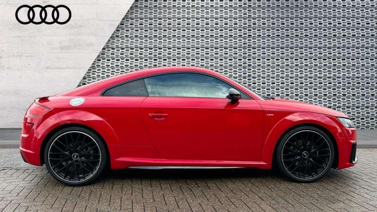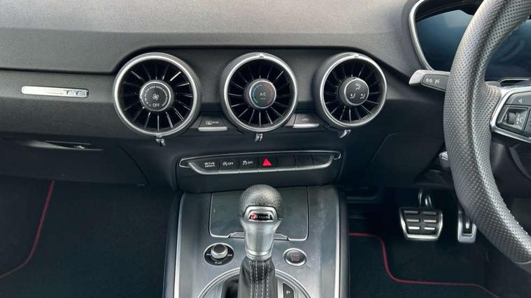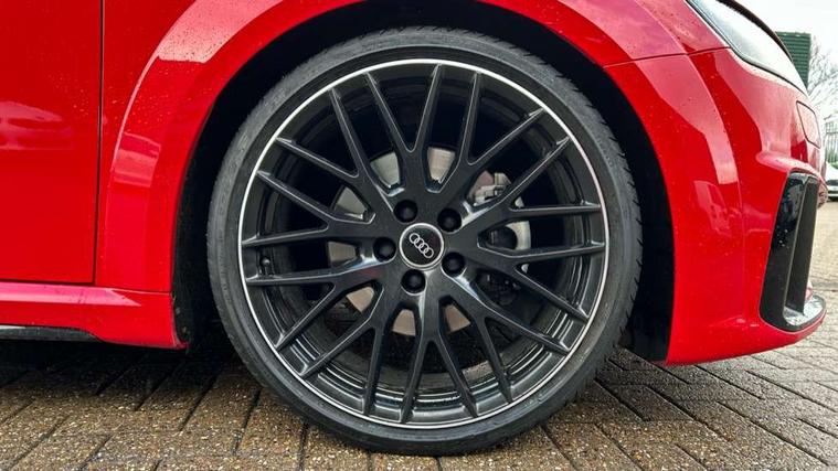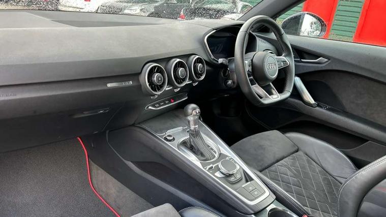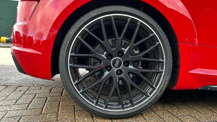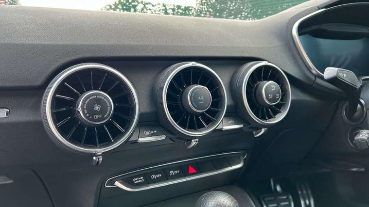 Audi drive select with 4 Pre configured modes, Audi smartphone interface, Audi virtual cockpit - 12.3" high-resolution LCD display with fully customisable instrument cluster, Cruise control + speed limiter, Emergency call service, MMI touch panel, Mobile phone preparation with bluetooth interface, Progressive power assisted steering, Service interval indicator, Start/Stop system with energy recuperation, TP memo, Sports suspension, AM/FM radio, Bluetooth audio streaming, DAB Digital radio, MMI Radio with CD player and SD/XC card slot, Auto dimming rear view mirror, Auto headlight range control, Black chrome tailpipe, Dark privacy glass from B-pillar backwards, Electric folding door mirrors, Electric front windows, Electrically adjustable and heated door mirrors with integrated LED side indicators, Front fog lights, Green tinted heat insulating glass, LED 3rd brake light, LED daytime running lights, LED headlights with LED rear lights + dynamic rear indicators, Light and rain sensors, Rear boot, Sunband for windscreen, 12V socket, 2 rear seats, 3 spoke flat bottomed high multi-function leather sport steering wheel with gearshift paddles, 4 way electric lumbar support for driver and front passenger, Black headlining, Contrasting silver stitching in steering wheel, Door sill trims, Extended aluminium look with stainless steel pedals, Front centre armrest, Front passenger seat, Front super sports seats, Heated front seats, Height adjustable driver's seat, Height adjustable front head restraints, Height/reach adjust steering wheel, ISOFIX child seat mounting for front passenger seat with airbag deactivation, Manual adjustment of seat height, fore/aft position, seat angle, seat depth and backrest angle, Perforated leather gearknob in black, Rear head restraints, Rear top tether child seat ISOFIX attachment, Split folding rear seat, Tool kit, Black styling pack - TT, Non smoking pack - TT/TT RS, 3 point front seat belts, ABS, ASR traction control, Curtain airbags, Driver and front passenger airbag with front passenger airbag deactivation, EDL traction control, Electromechanical parking brake, ESP, First aid kit, Front side airbags, Head airbags, Hill hold assist, Seatbelt warning, Tyre pressure loss indicator, Warning triangle, Anti theft alarm, Anti theft wheel bolts, Immobiliser, Keyless Go, Remote central locking, Matt brushed aluminium inlays, Tyre repair kit,